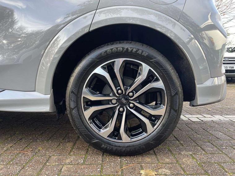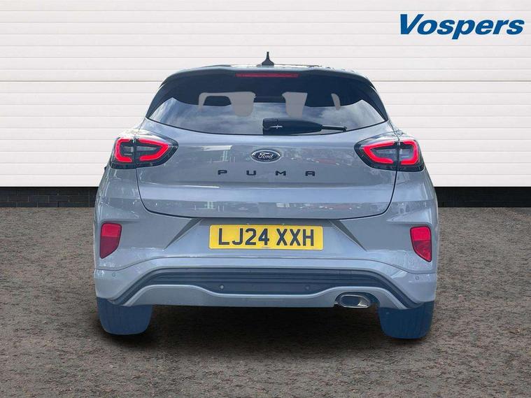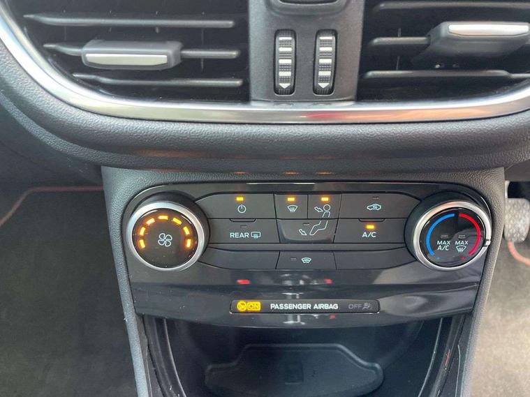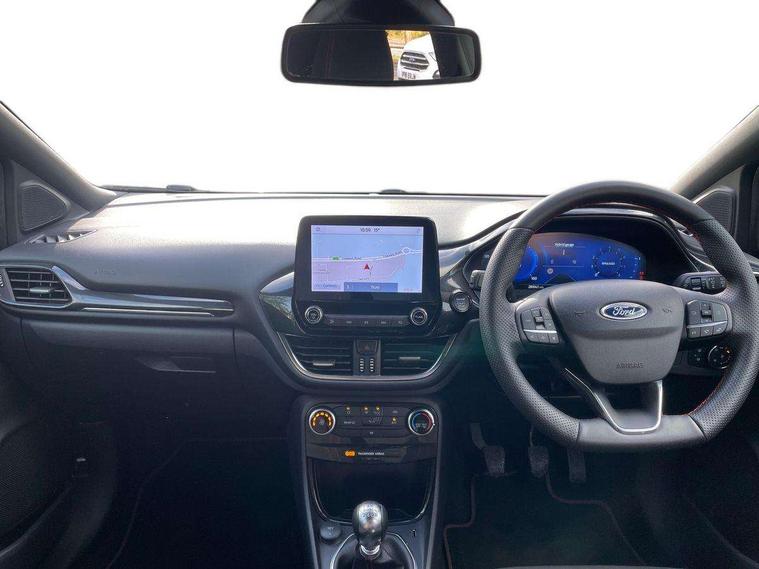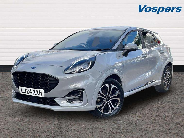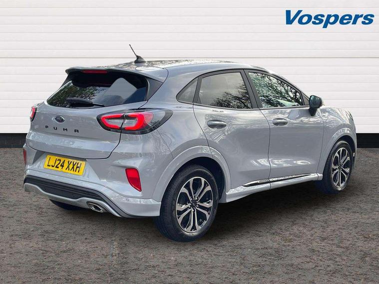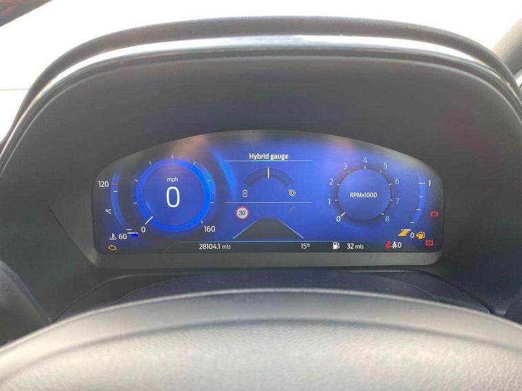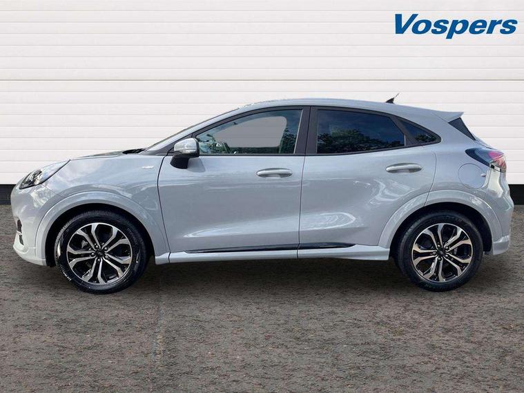 Driver impairment monitor, Emergency call service, Ford easy fuel, Full digital 12.3" instrument cluster, Lane keeping aid with lane departure warning, Power assist steering, Power start button, Rear parking sensor, Selectable drive modes(Normal, sport, Eco, trail, slippery), Speed sign recognition, Sport suspension, Automatic headlights with auto high beam, Automatic rain sensing wipers, LED rear lamps, Power foldable heated door mirrors with puddle lamps, Projector headlamps with LED day time running lights and front fog lamps, Quickclear heated windscreen, Rear side wing doors, Rear wiper, ST-Line body styling kit with unique grille, Third brake light, 3 seat bench in 2nd row, Centre console with armrest and stowage, Ford megabox extended bootspace, Front and rear head restraints, Front floor mats, Manual 2 way passenger seat adjustment, Manual 4 way driver seat adjust with lumbar adjustment, Single front passenger seat, ST- Line cloth trim with red stitching, ST-Line flat bottomed sensico leather steering wheel with leather handbrake and aluminium gear knob, Ford SYNC 3 navigation pack - Puma, 3 rear seatbelts, Child safety lock, Electronic stability control (ESC) and hill start assist, Pedestrian/cyclist detection & post-collision braking, Pre collision assist system, Tyre pressure monitoring system (TPMS), Thatcham alarm,