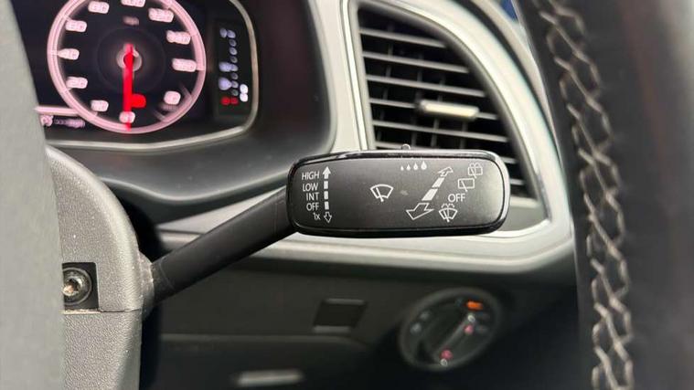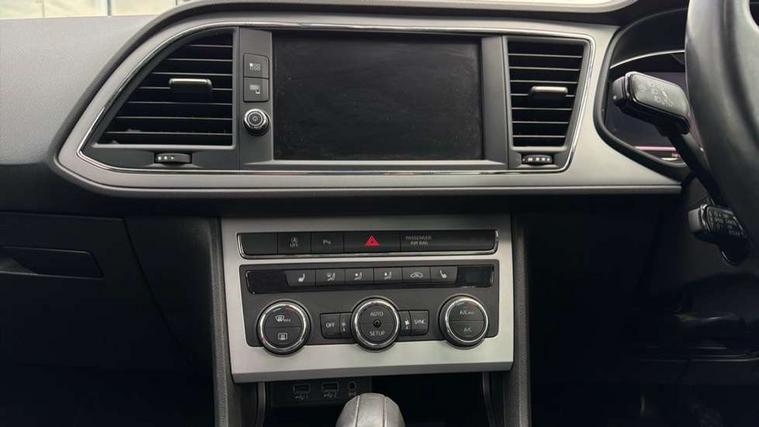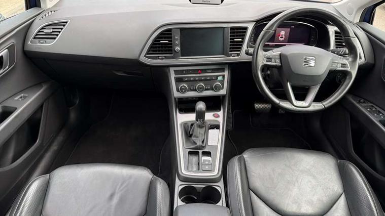 'Lights On' Reminder warning buzzer, 3D map display, 8" touch screen, Bluetooth Handsfree Phone Connection, Digital cockpit, Electro-mechanical power steering, Front and rear parking sensors, Front assist with pedestrian protection, Full Link Smartphone Integration with Mirror Link, Apple Car Play, Google Android Auto, Low fuel warning light, Navigation system (incl. media system plus), Outside temperature gauge, Rear view camera, RPM counter, SEAT logo boot release, Service interval indicator, Trip computer, Voice recognition, Wireless Smartphone charger, Comfort suspension, XDS electronic differential lock, 2x SD card slot, 4 USB, 8 Speakers, Auxiliary input socket, Bluetooth audio streaming, CD player, DAB Digital radio, High resolution colour driver display, Media system plus (incl. media system colour), SEAT USB media cable, Steering wheel mounted audio/phone controls, Body colour door handles, Body coloured bumpers, Body coloured exterior mirrors with integrated LED indicators, Chrome roof rails, Chrome window surround, Chromed centre radiator grille, Dark tinted rear windows, Electric front/rear windows, Electrically adjustable door mirrors, Electrically foldable exterior mirrors with parking position and passenger-side mirror with lowering function, Heated door mirrors, High gloss black finish B and C pillars, Illuminated aluminium front door sill with XCELLENCE logo, LED front fog lights, LED headlights with LED day time running lights + LED rear lights + LED number plate lights, Rear wash/wipe, Visible twin exhaust tailpipes, 12v power point in centre console, 60/40 split folding rear seat with armrest, Active front headrests and 3 rear headrests, Additional heating and ventilation outlet in rear of centre console, Boot storage net, Cargo rings in boot, Double boot floor, Driver and passenger seat height adjust, Driver seat lumbar adjustment, Dual zone climate control, Dust/pollen filter, Front adjustable head restraints, Front armrest with storage box, Front cupholders x 2, Front seatback storage pockets, Front sport seats in leather, Front/rear floor mats, Gear shift indicator, Height/reach adjust steering wheel, High centre console with integrated box & cup holder, rear air outlet, with armrest in front seats, Illuminated door sills, Instrument lighting with brightness control, Leather steering wheel with XCELLENCE logo, Luggage compartment cover, Luggage tie-down hooks, Multi-colour ambient interior lighting, Passenger seat lumbar adjust, Rear top tether child seat ISOFIX attachment, Storage box under drivers and passenger seat, Driving assistance and safety pack - Leon, Winter pack - Leon, 3 point seatbelts on all rear seats, 7 airbags - 2 front, 2 front side, 2 curtain, 1 knee, ABS + TCS, Child proof door locks, Electric handbrake, Electronic parking brake with auto hold, ESC with tyre pressure warning indicator, ESP+EBA, Front seatbelt pretensioners, Front seatbelt reminder, Hill hold control, Multi-Collision braking, Passenger airbag deactivation system, 2 folding remote keys with window open/close function and boot opening/door mirror folding function, Central locking fuel filler cap, Engine immobiliser, Keyless entry and go, Locking wheel bolts, Remote central locking + deadlocks, Volumetric alarm with back up horn, Chrome interior detailing, 17" Dynamic machined atom grey alloy wheels 30/4,
