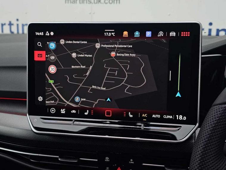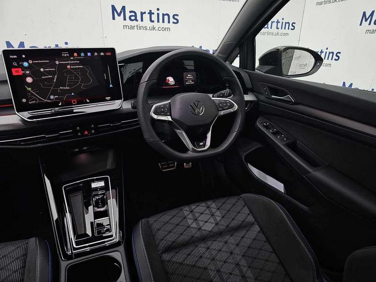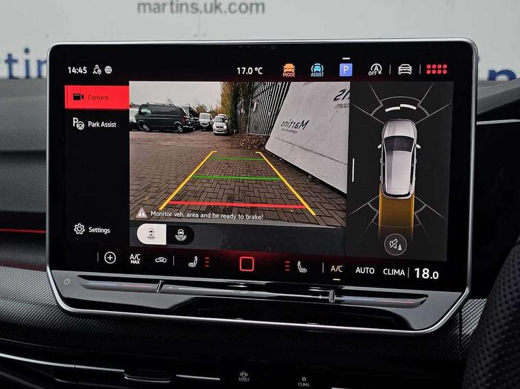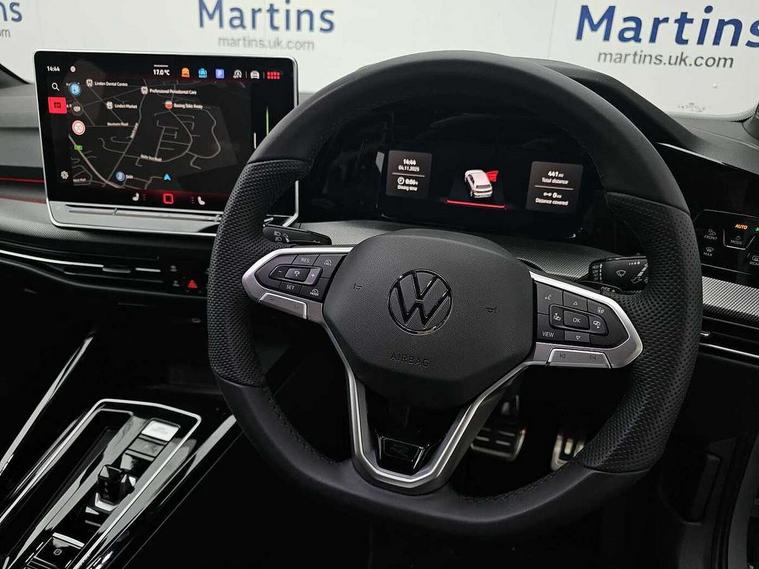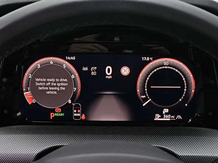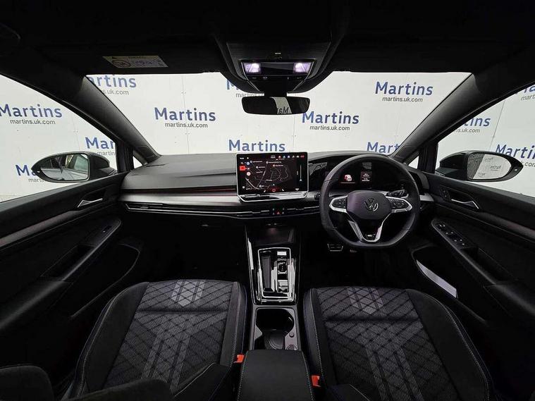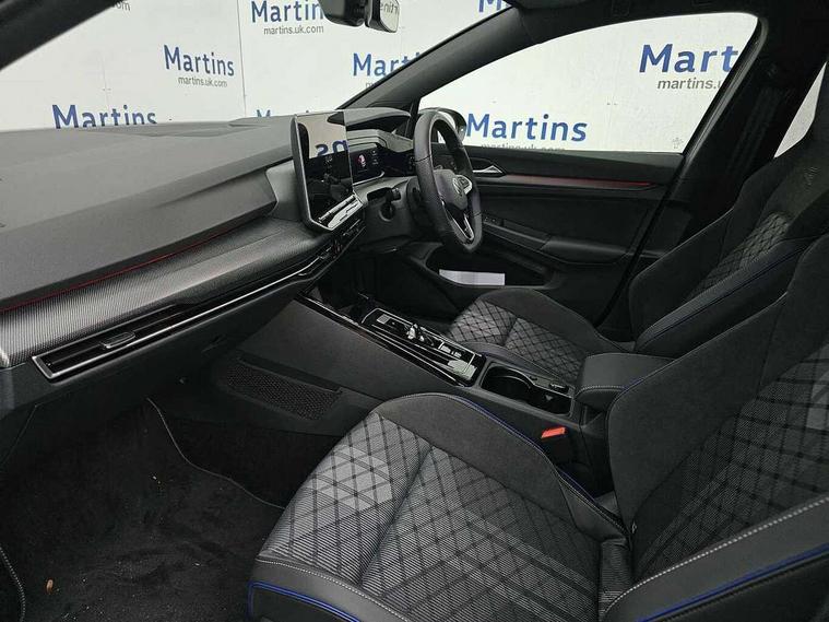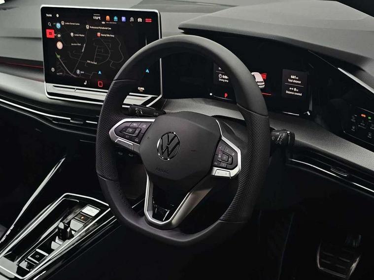 Activated carbon canister, Adaptive cruise control (ACC), Advanced driver attention and drowsiness monitor, Dynamic road sign display, Dynamic steering, E-Sim card for online connectivity, eCall emergency call system, Multi-color Digital cockpit pro, selection of different info profile possible, Multifunction front facing camera for distance control, Navigation system, Oncoming vehicle braking when turning including swerve support, Speed limiter, Speedo, rev counter, electronic odometer, trip, service interval display, exterior temperature and fuel gauge, Traffic jam assist, Voice enhancer and voice control, Warning signal and warning light for front and rear seatbelts not fastened, We connect plus preparation, We connect preparation, Wireless app connect, Hybrid propulsion system, Petrol Particulate Filter, Start-stop system with battery regeneration (recuperation - energy recovery during braking), XDS electronic differential lock for improved traction and handling, 2 USB C ports in front, 2 USB charging sockets on the centre console in the rear charging capacity upto 45W, Digital radio reception (DAB), Diversity antenna for FM reception, Gaming platform via car app, Infotainment system with 12.9" display, Mobile phone interface with inductive charging feature, 3rd brake light, Auto dimming rear view mirror, Automatic headlamp activation with Coming home and Leaving home feature, Body colored bumpers in R-Line style, Body colour door handles, Exterior ambient lighting, Exterior mirrors convex on the left and aspherical on the right, Front and rear electric windows, Heat insulating windshield made of laminated glass, LED separate daytime running light, Rain sensor, Rear exhaust tailpipe, Rear fog light on one side and reversing lights on both sides, Rear side wing doors, Rear windscreen washer and wiper with interval delay, Remote electrically foldable door mirrors, puddle lights and reverse activated passenger's door mirror, Volkswagen logo in front, illuminated lighting animation with wake up/goodbye scenario and illuminated door handles, Welcome light with surround lighting, 12V socket in front centre console, 12V socket in luggage compartment, 3 rear head restraints, 3 seat bench in 2nd row, Ambient lighting with 30 colour including LED light unit in front footwell with selectable light colour, Black roof lining, Brushed stainless steel pedals, Chrome plated radiator grille inserts, air vent surrounds and light switch surrounds, Door insert, side trim panel and arm support in leatherette, Front + rear black carpet mats, Front centre armrest, Front seat lumbar support adjuster, Integrated front head restraints, ISOFIX anchors for child seats on outer rear bench seats and on front passanger seat compatible for i-Size, Luggage compartment lighting, Manual height adjustable front passenger seat, Manually height adjustable driver seat, Plastic gear knob, Premium sports seats in front, Rear cupholder and loadthough, Sardegna cloth upholstery with front and outer rear seats Art Velour inner sides of bolsters, Single front passenger seat, Split folding backrest with centre armrest and unsplit rear seat bench, Sun visors with illuminated vanity mirrors, Titanium black instrument panel, Black exterior Styling package with Matrix LED headlights - Golf, Winter package - Golf DSG Estate/Hatchback, 3 point height adj front seatbelts + pretensioners, 3 rear three point seatbelts, ABS, Autonomous emergency braking front assist with pedestrian and cyclist monitoring, Child locks on rear doors, Driver and front passenger airbag with front passenger airbag deactivation, Electronic parking brake with auto hold, ESC (Electronic Stability Control), Extended pedestrian protection measures, Hill start assist, Rear disc brakes, Two tone horn, Tyre pressure loss indicator, Volkswagen roadside assistance, Anti theft wheel bolts, Preparation for alcohol interlock, Decorative inserts carbon grey for dashboard and front door trim panels, 18" Leeds alloy wheels, Tool kit for tyre mobility set, Tyre mobility kit Includes 12V compressor and tyre sealant,