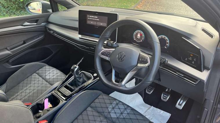 Activated carbon canister, Adaptive cruise control (ACC), Advanced driver attention and drowsiness monitor, Dynamic road sign display, Dynamic steering, E-Sim card for online connectivity, eCall emergency call system, Multi-color Digital cockpit pro, selection of different info profile possible, Multifunction front facing camera for distance control, Navigation system, Oncoming vehicle braking when turning including swerve support, Preparation for light assist system, Speed limiter, Speedo, rev counter, electronic odometer, trip, service interval display, exterior temperature and fuel gauge, Traffic jam assist, Voice enhancer and voice control, Warning signal and warning light for front and rear seatbelts not fastened, We connect plus preparation, We connect preparation, Wireless app connect, Petrol Particulate Filter, Start-stop system with battery regeneration (recuperation - energy recovery during braking), XDS electronic differential lock for improved traction and handling, 2 USB C ports in front, 2 USB charging sockets on the centre console in the rear charging capacity upto 45W, Comfort telephony + wireless charging, without wireless aerial connection, Digital radio reception (DAB), Diversity antenna for FM reception, Gaming platform via car app, Infotainment system with 12.9" display, Mobile phone interface with inductive charging feature, 3rd brake light, Auto headlights, Automatic headlamp activation with Coming home and Leaving home feature, Body colored bumpers in R-Line style, Body colour door handles, Exterior ambient lighting with illuminated door handles, Exterior mirrors convex on the left and aspherical on the right, Front and rear electric windows, Heat insulating windshield made of laminated glass, LED daytime running lights, Rear exhaust tailpipe, Rear fog light on one side and reversing lights on both sides, Rear side wing doors, Rear windscreen washer and wiper with interval delay, Remote electrically foldable door mirrors, puddle lights and reverse activated passenger's door mirror, Welcome light with surround lighting, 12V socket in front centre console, 12V socket in luggage compartment, 3 rear head restraints, 3 seat bench in 2nd row, Ambient lighting with 30 colour including LED light unit in front footwell with selectable light colour, Brushed stainless steel pedals, Carpet mats, front and rear, Chrome plated radiator grille inserts, air vent surrounds and light switch surrounds, Front centre armrest, Integrated front head restraints, ISOFIX anchors for child seats on outer rear bench seats and on front passanger seat compatible for i-Size, Leather gearshift handle, Luggage compartment lighting, Premium sports seats in front, Rear cupholder and loadthough, Single front passenger seat, Soul black instrument panel, Split folding backrest with centre armrest and unsplit rear seat bench, Storm grey roof lining, Sun visors with illuminated vanity mirrors, 3 point height adj front seatbelts + pretensioners, 3 rear three point seatbelts, ABS, Autonomous emergency braking front assist with pedestrian and cyclist monitoring, Child locks on rear doors, Driver and front passenger airbag with front passenger airbag deactivation, Electronic parking brake with auto hold, ESC (Electronic Stability Control), Extended pedestrian protection measures, Rear disc brakes, Two tone horn, Tyre pressure loss indicator, Volkswagen roadside assistance, Anti theft wheel bolts, Preparation for alcohol interlock, Decorative inserts carbon grey for dashboard and front door trim panels,
