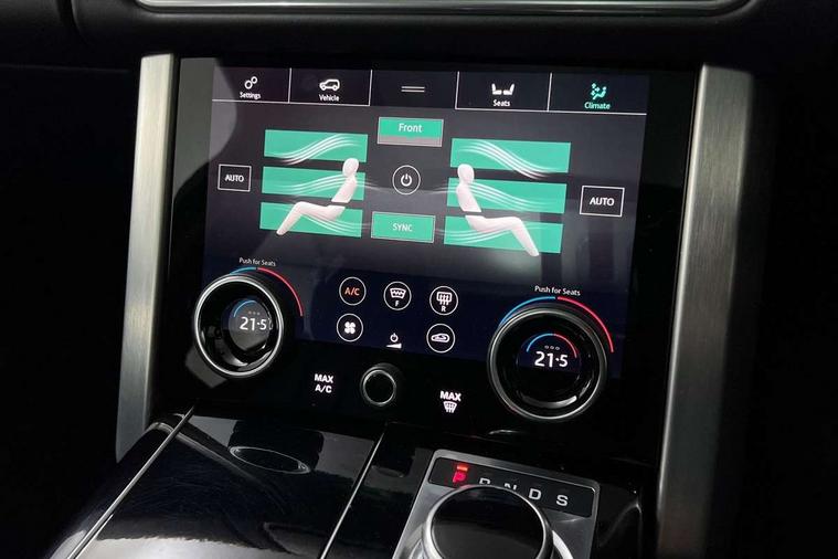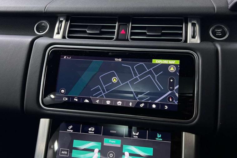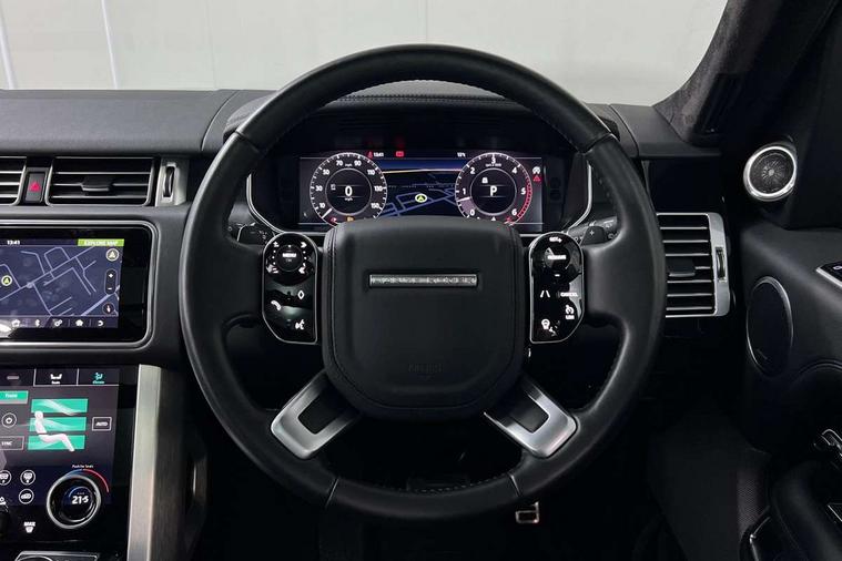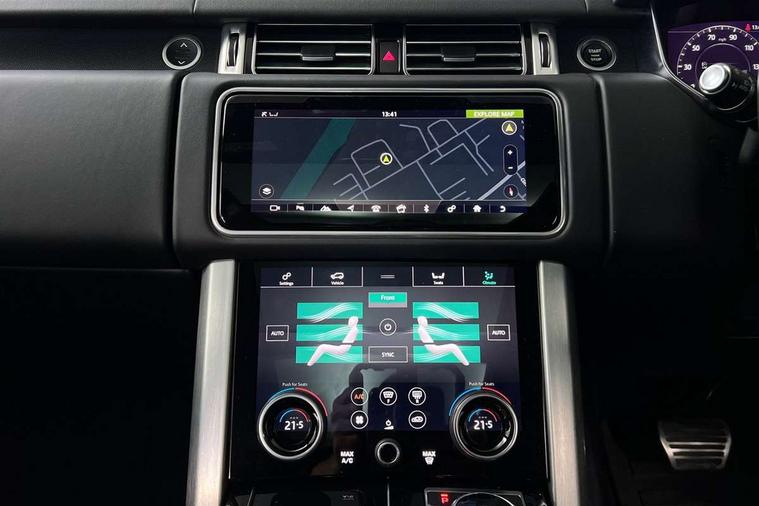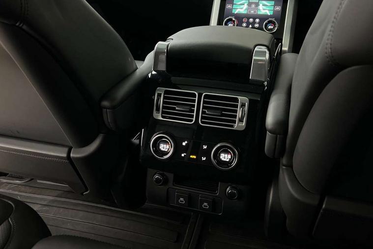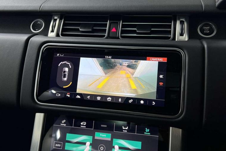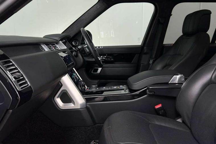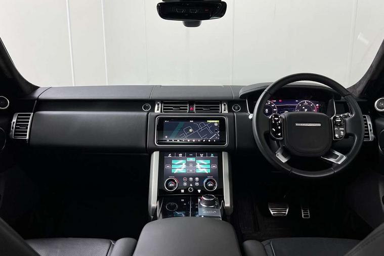 Android Auto, Apple car play, Bluetooth mobile phone connection, Dynamic route guidance, Electric power assisted steering (EPAS), Interactive Driver display instrument cluster, Lane departure warning system, Navigation pro system with 10" touch screen, app interface and media storage, Powered gesture tailgate/boot lid, Push button starter, Rear camera wash, Rotary shifter, Service interval indicator, Touch pro duo system, Trip computer, Voice control system, 8 speed automatic transmission, Adaptive dynamics, All Wheel Drive (AWD), Automatic access height, Diesel particulate filter, Electronic air suspension, Twin speed transfer box, Digital Audio Broadcast radio-DAB, Digital TV, InControl app, USB socket, Acoustic windscreen, Auto dimming interior rear view mirror, Auto self levelling headlights, Automatic headlights, Body coloured bumpers, Centre high mounted stop light, Door/quarter lights in toughened plate glass, Electric windows with one touch open/close and anti trap, Electrical towing preparation, Follow me home headlights, Front and rear recovery eyes, Front fog lights, Headlamp power wash, Heated rear window, Heated windscreen includes heated washer jets, Illuminated metal treadplates with brand name script, Integrated twin tailpipes, LED rear lamps, LED tail lights, No badges, Power fold, auto-dimming, heated door mirrors with memory and approach lights, Power front/rear windows with global close, Privacy glass, Rain sensing windscreen wipers, Rear fog lights, Rear wash/wipe, Side repeater indicators in mirror, Sliding Panoramic roof includes gesture sunblind and auto sunblind, Trailer stability assist, 12V power point in luggage area, 12V power sockets, 3 rear headrests, Black gearshift paddles, Bright metal pedals, Carpet mats, Centre console with storage and armrest, Configurable Ambient interior lighting, Customer configurable single point entry, Driver and passenger front seat armrests, Easy boot loading, Electrically adjustable steering column, Folding rear seats, Front and rear cupholders, Front and rear grab handles, Front headrests, Front seat back map pockets, Heated steering wheel, Loadspace cover, Loadspace light, Lockable glovebox, Luggage compartment lighting, Luggage tie down in loadspace, Perforated Windsor leather upholstery, Rear centre armrest, Rear ISOFIX, Soft close doors, Suede cloth headlining, Through load facility, Twin blade sunvisors with Illuminated vanity mirrors, Black exterior pack - Range Rover, Smartphone pack - Range Rover, 3 rear 3 point seatbelts, Anti-lock braking system (ABS), Auto lock system when vehicle in motion, Cornering brake control (CBC), Curtain airbags, Customer configurable autolock, Driver/front passenger head+thorax airbag, Drivers knee airbag, DSC - Dynamic Stability Control, Electronic brake force distribution, Electronic parking brake, Electronic traction control, Emergency braking, ESP, Front airbags with passenger seat occupant detector, Front seatbelt pretensioners with force limiters, Front side airbags, Grey anodised brake calipers, Height adjustable front seatbelts, Hill descent control, Hill launch assist, Low traction launch, Power operated child locks, Roll stability control, Tyre pressure monitoring system (TPMS), Immobiliser, Intrusion sensor and alarm, Keyless entry, Locking wheel nuts, Remote central locking,