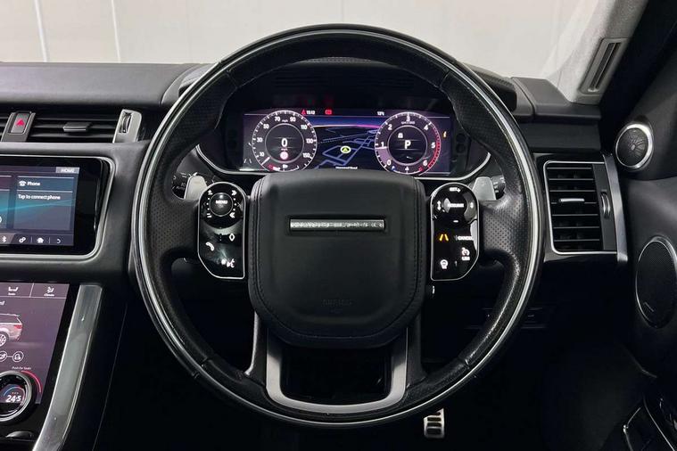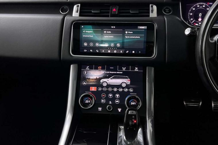 360 Parking aid, All Terrain Info Centre, Android Auto, Apple car play, Bluetooth connectivity, Clear exit monitor, Driver condition monitor, Electric power assisted steering (EPAS), Incontrol apps in vehicle touchscreen, Interactive Driver display instrument cluster, Mist sensor, Navigation pro system with 10" touch screen, app interface and media storage, Powered gesture tailgate/boot lid, Pro services and wifi hotspot, Push button start, Rear traffic monitor, Remote premium - Upgraded Incontrol remote app including remote climate control (engine dependent), remote lock + Unlock and remote beep + flash, TFT Virtual Instrument Panel, Touch pro duo system, Traffic sign recognition with adaptive speed limiter, Trip computer, Adaptive dynamics, All terrain progress control, Electronic active differential with brake torque vectoring, Electronic air suspension with dynamic response (active roll control), Engine cover, Gradient release control (GRC), Terrain Response 2 with dynamic program, Twin speed transfer box, Bluetooth audio streaming, DAB Radio (Digital Audio Broadcasting), Incontrol protect - SOS emergency call with automatic collision detection, optimised assistance call and Incontrol remote app essential, USB/aux input socket, Acoustic front and toughened rear side glass, Acoustic laminated front windows, Adaptive brake lights, Auto dimming interior rear view mirror, Automatic headlights, Body coloured side sills and bumpers corners, Electric windows with one touch open/close and anti trap, Electrical towing preparation, Follow me home lighting, Front and rear recovery eyes, Front fog lights, Headlight power wash, Heated rear window, Heated windscreen includes heated washer jets, Illuminated metal tread plates with brand name script, LED rear lamps, Power fold, auto-dimming, heated door mirrors with memory and approach lights, Rain sensing windscreen wipers, Rear fog lights, Rear wash/wipe, Remote window closing, Side repeater indicators in mirror, Standard bonnet, Trailer stability assist, Twin bright tailpipes, 2 way active front head restraints, 2 way rear head restraints, 60/40 load through rear seats, Assist grips, Auto air recirculation, Bright metal foot pedals, Centre console with armrest, Climate control memory, Configurable Ambient interior lighting, Customer configurable single point entry, Driver's footrest, Extended leather upgrade includes door top rolls and leather instrument panel mid section, Front and rear cupholders, Front and rear premium carpet mats, Front door storage space, Front map lights, Front seat back map pockets, Front stowage pocket, Front/rear passenger grab handles, Heated steering wheel, Isofix child seat preparation, Leather steering wheel with Atlas inserts, Loadspace light, Loadspace mounting provisions, Lockable glovebox, Multifunction steering wheel, Pollen filter, Power socket, Reach/rake electric adjustable steering column + entry/exit tilt away, Rear centre armrest, Rear ISOFIX, Roller blind loadspace cover, Satin chrome gearshift paddles, Sports pedals, Three 12V accessory power outlets, Smartphone pack - Range Rover Sport, 3 point seatbelts on all seats, Anti-lock braking system (ABS), Brake pre-fill technology, CBC - (Cornering brake control), Curtain airbags, Customer configurable autolock, DSC - Dynamic Stability Control, Dual stage driver/passenger airbags, EBD - Electronic brakeforce distribution, Electric parking brake, Electronic traction control, Emergency braking includes city, urban AEB and pedestrian, Front seatbelt pretensioners, Gradient acceleration control, Grey anodised brake calipers, Height adjustable front seatbelts, High speed emergency braking, Hill descent control, Hill launch assist, Low traction launch, Power operated child locks, Roll stability control, Seatbelt warning, TPMS (Tyre pressure monitoring system), Immobiliser, Intrusion sensor, Keyless entry, Locking wheel nuts, Passenger seat occupant detector with front airbags, Perimetric and volumetric anti theft alarm, Remote locking,