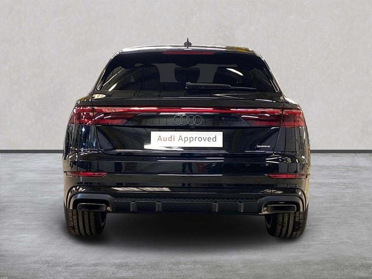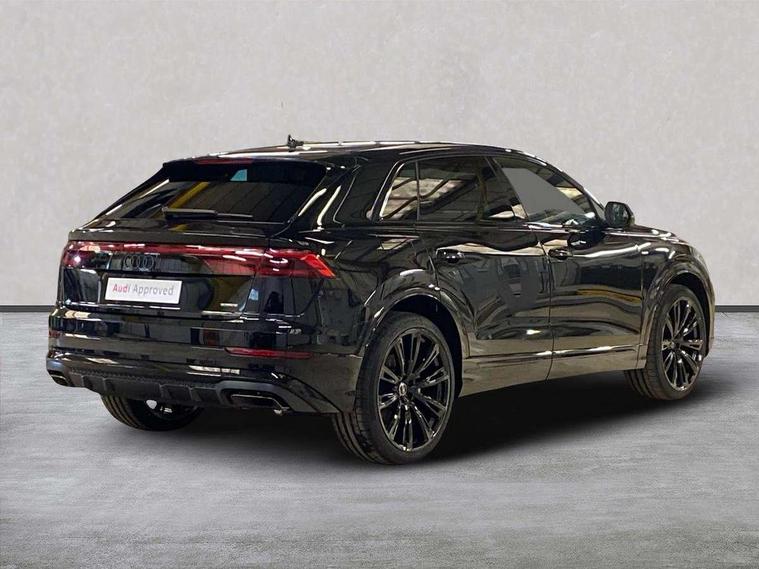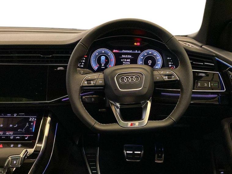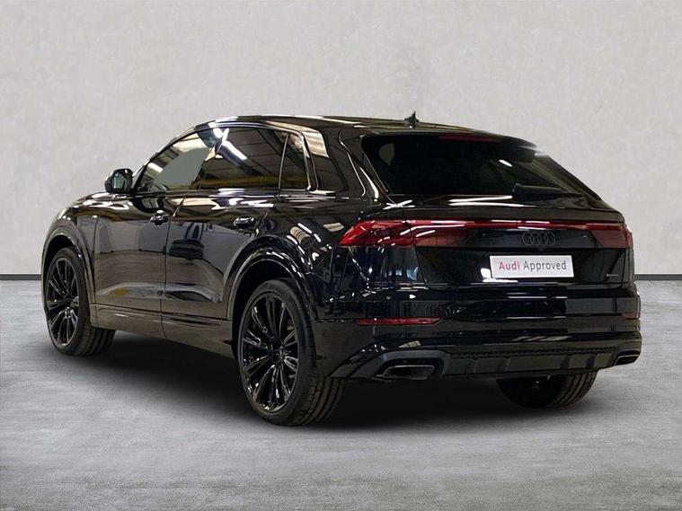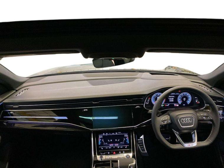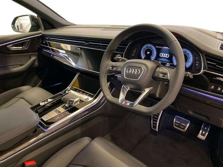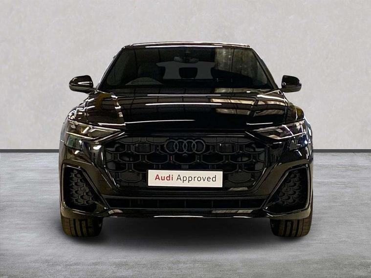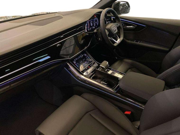 10.1" and 8.6" Dual colour touchscreens, Audi application store, Audi connect safety and service (e-call), Audi connect with Amazon Alexa Integration, Audi drive select, Audi parking system plus includes 360 degree display with front and rear sensors, Audi phone box light with wireless charging, Audi virtual cockpit - 12.3" high resolution LCD display with fully customisable instrument cluster, Automatic start/stop system, Bluetooth, Electro-mechanical PAS, Low washer fluid indicator, MMI navigation plus with MMI touch, Natural voice recognition, On board computer, Operating buttons in black, glass look with haptic feedback, Power operated tailgate, Rear view camera, Service interval indicator, Smartphone interface includes wireless Apple carplay/Android Auto, 48V Mild hybrid technology, Adaptive sport air suspension, Diesel particulate filter, Quattro all wheel drive with self locking centre differential, Audi music interface with 2 USB ports with charge and data functions, Audi sound system with 6 channel amplifier, 180 watt amplifying capacity and 10 loudspeakers including subwoofer, Aux-in socket, DAB Digital radio, 3rd brake light, Audi beam, Auto dimming frameless rear view mirror, Black exhaust tailpipes, Black single frame mask, Coming/leaving home lighting function, Electric front+rear windows, Electrically folding auto dimming/adjustable/heated door mirrors with memory function, LED side indicators and kerb view function for passenger side, Headlight washers, Heat insulating glass in windshield, LED rear light plus, LED signature daytime running lights, Loading edge protection in stainless steel, Matrix LED headlights with dynamic front and rear indicators, Platinum grey front spoiler lip and diffuser insert with honeycomb grille in black, Privacy glass - dark tinted rear and rear side windows from B-pillar backwards, Rain and light sensors, Rear side wing doors, Rear wiper, Singleframe grille surround in matte platinum grey, 2 zone automatic climate control, 3 bench rear seats in 2nd row, 4-way lumbar support for front seats, 40:20:40 split folding rear bench seat, Black cloth headlining, Comfort front centre armrest, Driver seat memory function, Electrically adjustable front seats, Front head restraints, Front/rear floor mats, Heated front seats, ISOFIX child seat mounting for front passenger seat and 2 outer rear seats with top tether child seat mounting for all 3 rear seats, LED interior ambient lighting, Luggage compartment sill protection in stainless steel, Rear centre armrest with 2 cupholders, Rear headrests, Seat cushion displaceable by 100mm in the ratio 60:40, Single front passenger seat, Stainless steel pedals, Sunvisors with illuminated vanity mirrors, Black styling pack plus - Q8, 3 point seatbelts on all seats, Audi pre sense front, Convenience key with safelock, Driver and front passenger, front side and curtain airbags, Electromechanical parking brake, Electronic Stability Control (ESC) including ABS, ASR and EDL, Front passenger airbag deactivation, Hill descent control, Hill hold assist, Predictive pedestrian protection, Seatbelt monitoring, Traction control, Tyre pressure loss indicator, Warning triangle and first aid kit, Anti theft alarm with tow away protection, Anti-theft wheel bolts and wheel loosening detection, Electronically operated child lock, Immobiliser, Keyless go with remote central locking, Polished oak trim with grey finish inlay, Tool kit, Tyre repair kit,