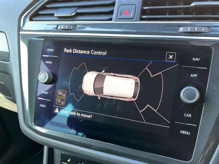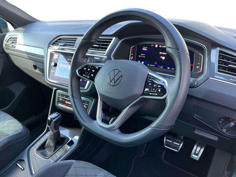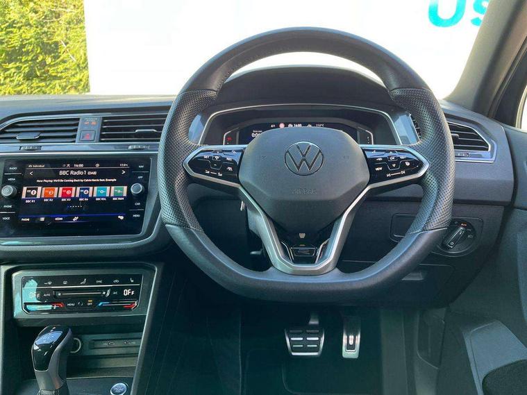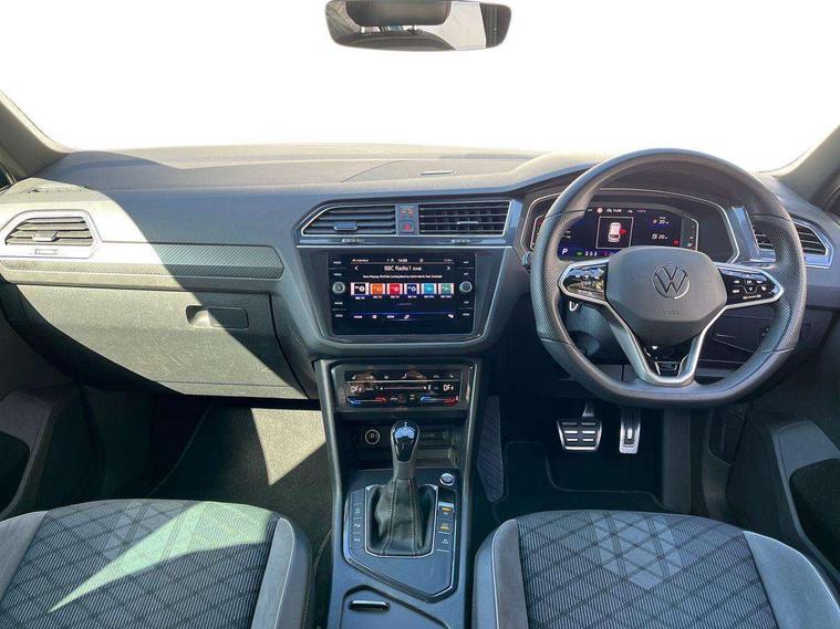 Adaptive cruise control ACC stop and go including speed limiter, App-Connect incl. App-Connect Wireless for Apple CarPlay and Android Auto, Bluetooth phone integration system, Digital Cockpit Pro - Active info display, Distance control assist, Driver alert system, Driver profile selection, Dynamic road sign display, eCall emergency call system, Electromechanical speed sensitive power steering, Engine start/stop button, Lane keeping system Lane Assist, Lights on warning, Multifunction front facing camera, Outside temperature display, Premium multifunction display with multi colour display, Remote control boot opening, Rev counter, Revision / skills operating concept travel assistant, Service interval indicator, Speed limit display, Start/stop system with regenerative braking, Trip computer, Warning sound and light for doors and tailgate open, Battery regeneration during braking, Diesel particulate filter, Misfuel prevention device for diesel engine, Selective Catalytic Reduction, XDS electronic differential lock for improved traction and handling, 2 USB-C ports in the front, 1 USB-C charging socket on the center console in the rear, 4 X 20 watt output, 8 Speakers, Diversity antenna for FM reception, Radio, SD card slot, Simultaneous pairing of 2 compatible mobile devices, SMS functionality - read, compose and send SMS messages using touch-screen display, Title and cover art display, Auto dimming interior rear view mirror, Automatic headlight control system, Black roof rails, Body colour door handles, Body coloured bumpers in R Line style, Body coloured door mirrors with integrated indicators, Chrome moldings on the side windows, Coming/leaving home lighting function, Dynamic headlight range control, Front and rear electric windows, Heated rear window, High level 3rd brake light, Laminated safety glass windshield, heat and sound insulating, LED headlamps with LED separate daytime running light and dynamic cornering light, LED rear combination lamps, LED rear number plate lights, License plate carrier in front and rear, Poor weather light and cornering light, Privacy glass for rear side windows and rear window, R Line body kit, R Line side sills, Rain sensor windscreen wipers, Rear exhaust tailpipe, Rear fog lamp, Rear side wing doors, Rear spoiler in R style, Rear windscreen washer and wiper with interval delay, Side and rear windows in heat insulating glass, Trailer Stability Programme, Unique R Line badging, Windscreen wipers/ intermittent wipe + 4 position delay, 12V outlet in center console rear and in luggage compartment, 12V outlet in front and tray, 2 cup holders in front, 2 LED front reading lights, 2 LED rear reading lights, 3 bench rear seats in 2nd row, 3 rear headrests, 4 load lashing points, 40:20:40 split folding rear seats, Air Care Climatronic 3 zone automatic climate control with enhanced air filter and controls in the rear, Backrest release for left front seat, Black headlining, Brushed stainless steel pedals and footrest, Carpet mats in front and rear with decorative stitching in Gray, Climate control unit rear with touch function, Door and side trim panel in foam film, insert in leatherette, Front centre armrest, Front footwell illumination, Front seats head restraints (x-adjustment), Height adjustable front seats, Height/reach adjust steering wheel, Instrument lighting white adjustable panel illumination, Interior light with delay, Isofix Preparation 2 Rear child seats, Leather gear knob, Lockable cooled glovebox, Luggage compartment lighting, Luggage net, Rear bench seat asymetrically split folding, longitudinally movable and folding with load-through hatch and center armrest, Remote unlocking for rear seat backrest, Removable luggage cover, Removable rear headrests, Safety optimised front head restraints, Single front passenger seat, Sliding/reclining rear seats, Standard rear seat release, Storage compartment in driver's door, Storage compartment in passenger's door, Storage compartment in rear doors, Storage compartments in luggage area left and right, Storage tray on dashboard, Sun visors with illuminated vanity mirrors, Top front comfort seats, Variable boot floor, height adjustable and removable, Ambience pack - Tiguan R Line, Driver assistance pack plus - Tiguan DSG, Park assist pack - Tiguan, 3 point seat belt for centre rear seats, 3 point seat belts with seat belt pretensioners for the outer rear seats, Active bonnet, Curtain airbags for front and rear passengers, Driver/Front Passenger airbags, Drivers knee airbag, Electronic parking brake with auto hold, Electronic Stability Control with driver steering recommendation, ABS, ASR, EDL, EDTC and trailer stabilization, Front assist with autonomous emergency braking (for Adaptive Cruise Control ACC up to 130 mph), Front disc brakes, Front passenger airbag deactivation, Front side airbags, Height adjustable front 3 point seatbelts + pretensioners, Hill hold control, Manual child proof rear door locks, Pedestrian monitoring system, Power assisted brakes, Proactive passenger protection system in combination with front assist, Rear disc brakes, Rigid safety cell with front and rear crumple zones, Two tone horn, Warning sound and light for front seat belts if unfastened, Anti theft alarm system with interior monitoring, backup horn and towing protection, Anti theft wheel bolts, Electronic engine immobiliser, 20" Misano black with diamond turned surface alloy wheels with Airstop tyres, Tool kit,