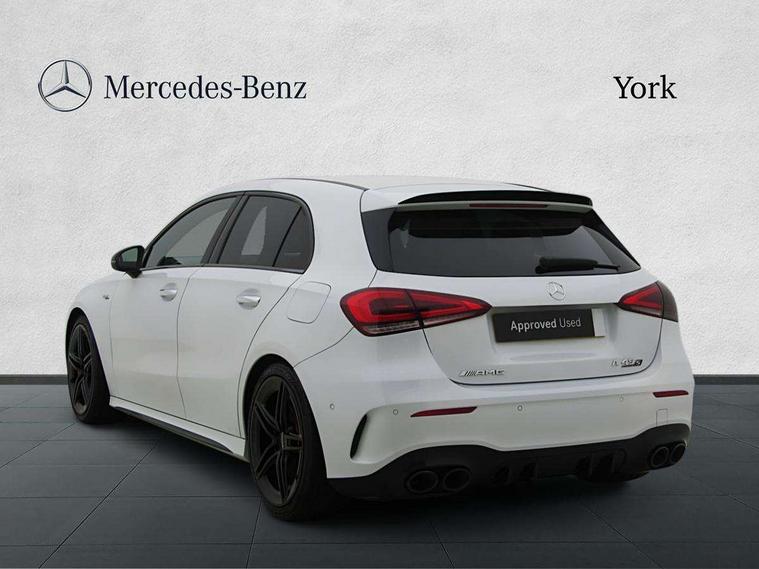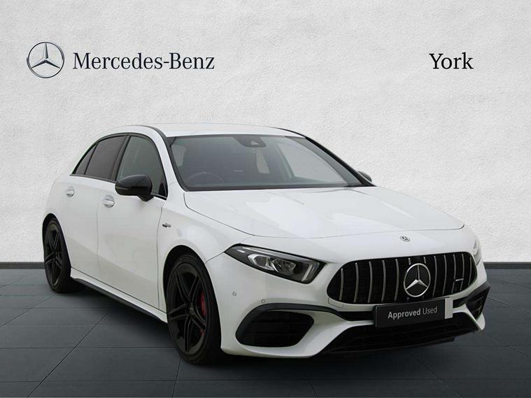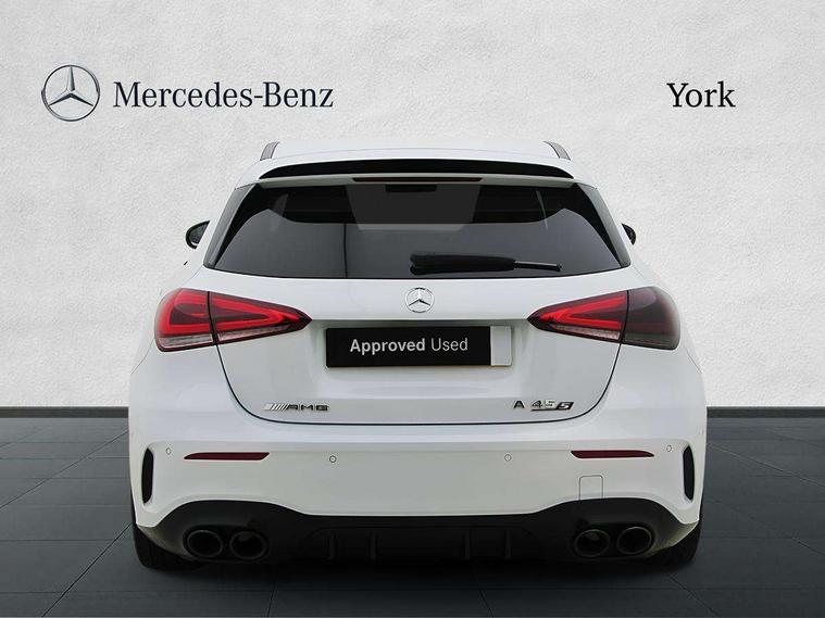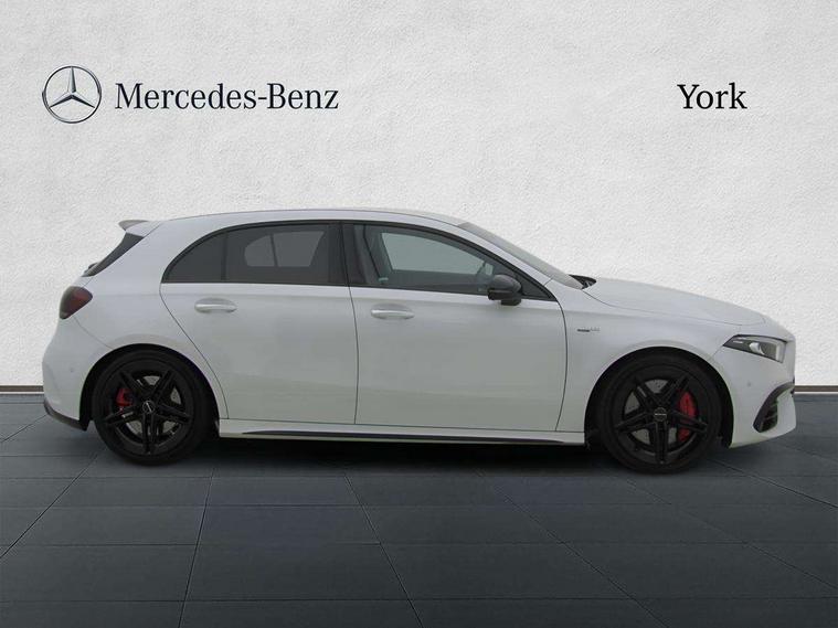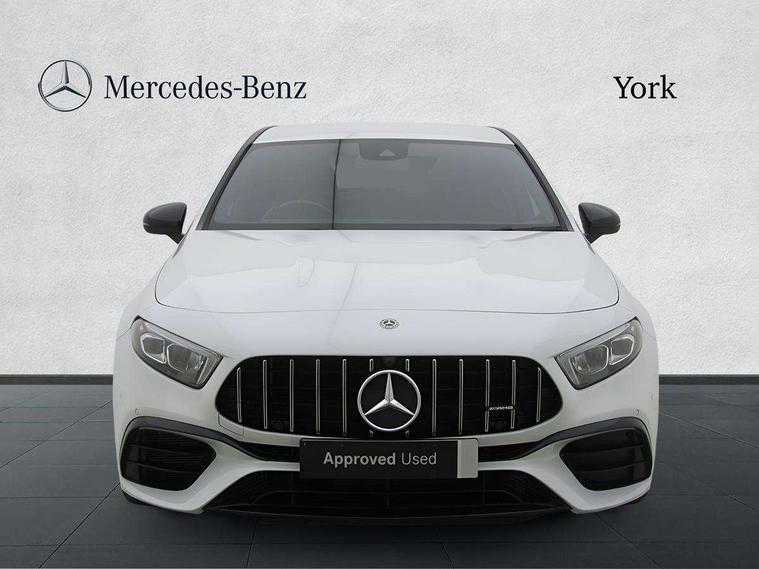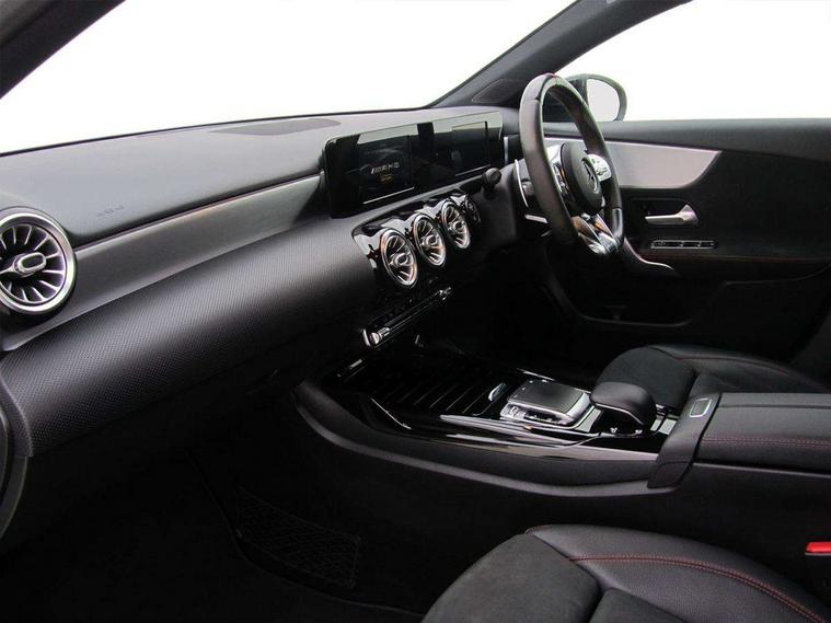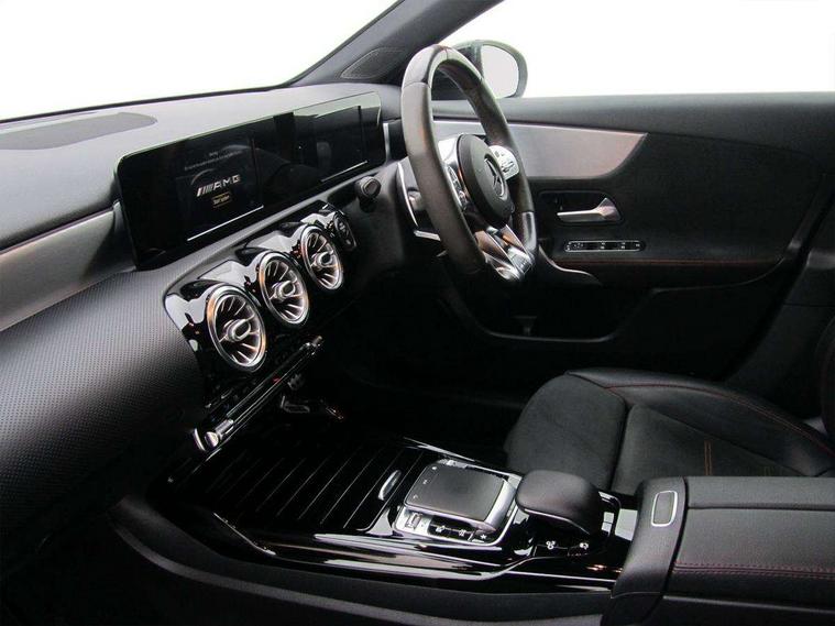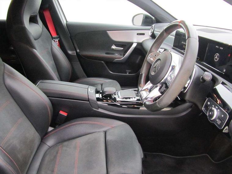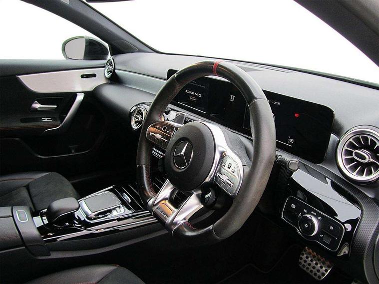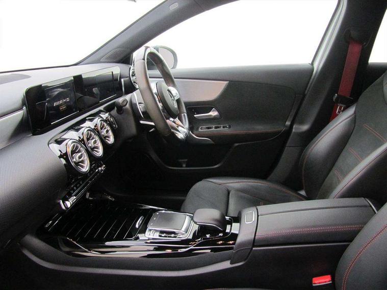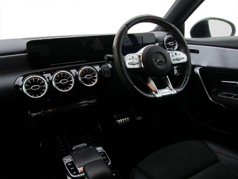 10.25 inch touchscreen central media display with AMG specific, AMG start up logo, visualisation of the AMG drive programs, vehicle and engine data, 10.25" Digital instrument cluster display screen, 180 degree rear view camera with parking guidelines, Active lane keep assist, Active park assist with parktronic system including front and rear parking sensors, AMG DYNAMIC SELECT with driving programs (Slippery, Comfort, Sport, Sport+, Individual and Race) including drift mode via steering wheel shift paddles, AMG speed sensitive steering with two sets of steering characteristics, AMG track pace, Attention assist, Brake pad wear indicator warning light, Car wash mode, Cruise control + speed limiter, Direct steering, Dual bluetooth interfaces, ECO start/stop function, Fluid level warning indicator for fuel, oil, coolant and washer fluid, Hard-disk navigation, Hey Mercedes Voice activation, Lamp failure indicator, MBUX augmented reality for navigation, Mercedes me connect including emergency call system, accident recovery, breakdown and maintenance management, Outside temperature gauge, Owners manual in English, Pre-installation for private car sharing, Pre-installation for Vehicle Monitoring, Pre-installation for Vehicle Setup, Preinstallation for Mercedes Benz link, Service indicator (ASSYST), Smartphone integration with Apple CarPlay and Android auto, Trip computer, Wireless charging, AMG performance 4MATIC+ with torque control, AMG suspension including AMG specific axles and sporty spring/damper setup, Rear axle multi-link, 10 speakers, 2 USB ports (type C) in rear stowage compartment and one in front of center console, DAB Digital radio, MBUX multimedia system with DAB digital radio and touchpad including satellite navigation, Mercedes-Benz advanced sound system - 225W, 4 Electric Front and Rear windows, Adaptive brake lights, AMG A45 S bodystyling -rear apron, four vertical fins, side sill panels, roof spoiler lip, specific front apron, diffuser look and S label on boot lid, AMG bodystyling - Front apron with splitter in chrome, rear apron with chrome trim and chrome visible trim elements in tailpipe, AMG real performance exhaust sound system, AMG specific radiator grille in high gloss chrome with AMG lettering, Black weather strip, Body colour bumpers, Body colour door handles, Body colour side skirt, Electric adjustable and heated door mirrors with integrated LED side indicators, Headlamp assist automatic headlamp activation, Heated glass rear windscreen + timer control, High gloss black beltline, Illuminated front door sill panels with Mercedes-Benz lettering, LED high performance headlamps with integrated LED daytime running lights, LED tail lamp, LED third brake light, Privacy glass, Radio aerial, Rain sensing windscreen wipers with two sensitivity settings, Rear fog lights, Rear wiper, Two round twin tailpipe trim elements each measuring 90 mm in diameter and AMG lettering plus ribbing on the inside of the pipe, Valve control dependent on drive program, Wider wheel arches for AMG wheels, Window line trim strip in high gloss black, 3 Spoke flattened lower section sporty design AMG Performance steering wheel in nappa leather/Dinamic microfibre, 40:20:40 split folding rear seats, AMG brushed stainless steel sports pedals with rubber studs, AMG floor mats, AMG performance seats, AMG sporty centre console with raised front section and integral control switched for manual transmission mode, AMG Steering wheel touch control buttons, Auto Mercedes-Benz child seat recognition sensor, Black air vents with surround in silver chrome, Black roof lining, Front centre armrest with storage compartment, Front head restraints, Front seat cushion length adjustment, Heated front seats, Height/reach adjustable steering column, Interior lighting - 64 colour Ambient lighting, Interior mirror with reading lamps in black and frameless, Rear armrest with 2 cupholders, Rear head restraints, Seat occupancy sensor for front passenger seat, Silver coloured aluminium gear shift paddles on steering wheel, Stowage compartment in centre console with retractable cover, Sunvisors with illuminated vanity mirrors, Touchpad on center console, Twin front cupholders, Two zone thermotronic luxury automatic climate control, AMG Driver's pack - A Class, AMG night pack - A Class, AMG performance seat pack - A Class, Light and sight pack - A Class, Mirror package - A Class, Seat comfort pack - A Class, 3 rear 3 point seatbelts, 3 stage electronic stability programme, ABS with Brake Assist, Active bonnet, Active brake assist includes forward collision warning system with autonomous braking, Adaptive brake assist with hold function and hill start assist, AMG high performance brake system with red painted brake callipers and black AMG lettering at the front, ventilated and perforated brake discs, Black seatbelts, Bonnet with power domes, Childproof locks manually operated for rear doors and electrically operated for rear power windows, Crash responsive emergency lighting, Driver and passenger head and side airbags, Drivers knee airbag, Dual stage driver/passenger airbags, Electronic parking brake, ESP curve dynamic assist, ESP with ASR, Front and rear seatbelt reminder, ISOFIX and top tether child seat fixing points in two outer rear seats, Tyre pressure monitoring system, Warning triangle and first aid kit, Window airbags, Alarm system/interior protection/immobiliser, Keyless entry lock/unlock, Keyless Go, Remote central locking and crash sensor with emergency opening function, Urban guard vehicle protection system with immobiliser and interior protection, Light aluminium with longitudinal grain interior trim, 19" AMG 5 twin spoke light alloy wheels, Summer tyres, Tirefit sealant kit, Wheel arches with flared AMG wings with TURBO 4MATIC+ lettering,