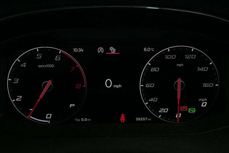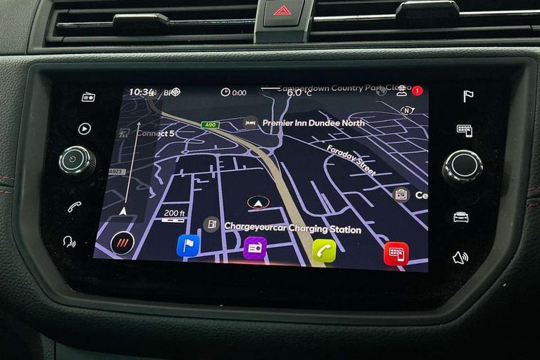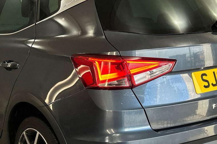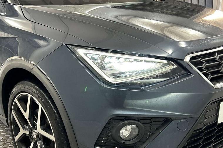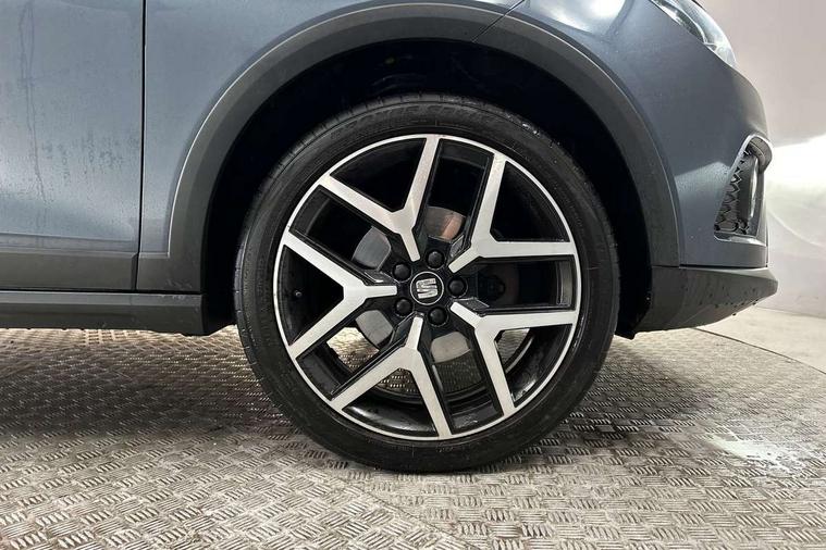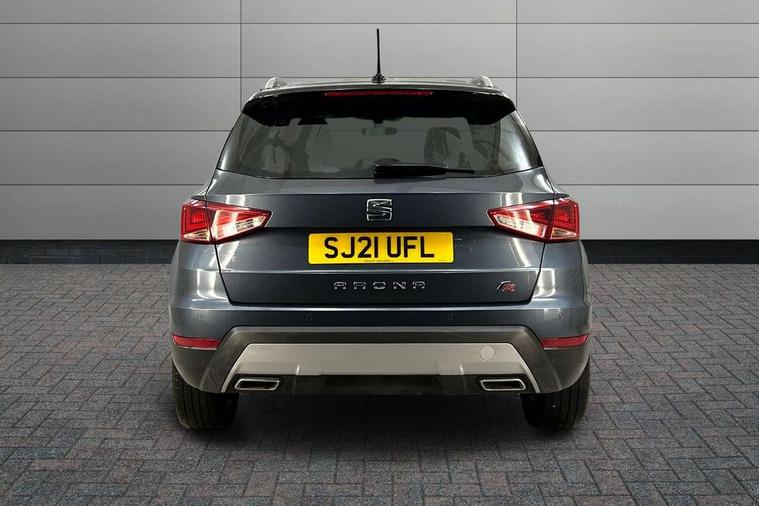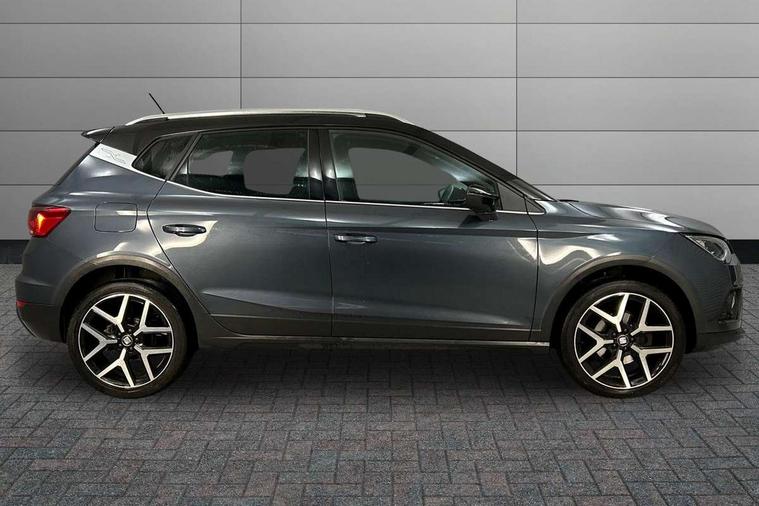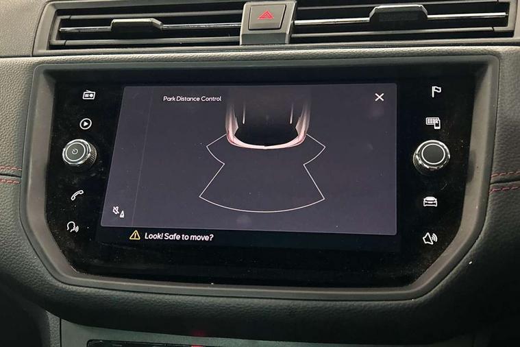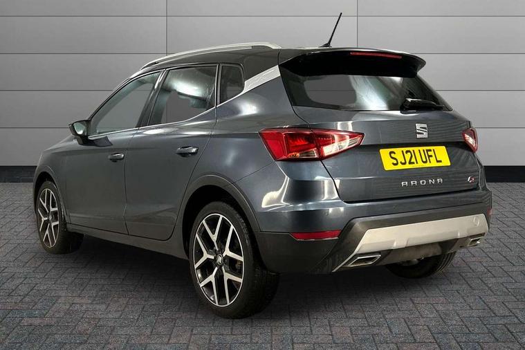 Interior chrome line trim, Leatherette dashboard, Connectivity pack plus - Arona, Interior chrome pack - Arona, 18" Performance alloy wheels, 2 folding remote keys with window open/close function, Alarm with back-up horn, Electronic engine immobiliser, Locking wheel bolts, Remote central locking + deadlocks, Tow away protection, 6 speakers, Bluetooth interface for hands free and audio streaming, DAB digital radio and AM/FM radio, Steering wheel mounted audio controls, 3 point seatbelts on all rear seats, ABS, Active front headrests, Child locks on rear doors, Driver and front passenger airbags with front passenger airbag de activation, front side and curtain airbags, Electronic stability control, Emergency Brake Assist (EBA) and front assist, Front and rear seatbelt reminder, Hill hold control, Multi-Collision braking, Tiredness recognition system, Traction control, Tyre pressure monitoring system, Anti theft roof antenna, Auto dimming interior rear view mirror, Automatic activation of hazard warning lights, Automatic headlights, Body coloured bumpers, Body coloured door handle inserts, Chrome front grille frame, Chrome roof rails, Chrome window trim, Coming/leaving home lighting function, Dark tinted rear windows, Electric front/rear windows with one touch/auto up/down, Electrically adjustable, heated and folding door mirrors, Full LED headlights dipped and mainbeam + front and rear fog lights, Ice metal door side panels, LED daytime running lights, LED rear tail lights and licence plate lights, Protective side mouldings, Rain sensing wipers, Rear window wash/wipe, Roof colour door mirrors, Twin exhaust pipe styling hidden exhaust pipe, Visible VIN plate, Windshield wiper with intermittent control and potentiometer, 2 cupholders, 60/40 split folding rear seat, Aircare filter, Black interior roof, Double boot floor, Driver sunvisor with covered mirror + card holder, Dual zone climate control, Front courtesy light with front reading lights, Front sport seats, Gear shift indicator, Heated front seats, Height adjustable front seats, Height/reach adjustable steering column, Illuminated boot, Instrument lighting with brightness control, Interior light in footwell, central console and door panel, ISOFIX points in outer rear seats with top tether anchorage points, Microsuede cloth upholstery, Multi-colour ambient interior lighting, Passenger sunvisor with vanity mirror, Perforated flat bottomed leather steering wheel/gear knob/handbrake with red stitching and FR logo, Steering wheel mounted gearshift paddles, Two front and three rear height adjustable headrests, 'Lights On' Reminder warning buzzer, Cruise control and speed limiter, Digital clock, Digital cockpit, Electric speed sensitive power steering, Full Link Smartphone Integration with Mirror Link, Apple Car Play, Google Android Auto with USB cable for Apple and Android compatibility, Low fuel warning light, Outside temperature display, Rear parking sensor, RPM counter, Seat connect with safety, serivice, remote and online, SEAT Drive profile - Four different models normal-sport-eco-individual, steering response, throttle response and gear shifts mode, Trip computer, Sports suspension,