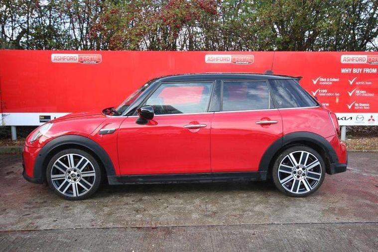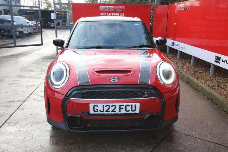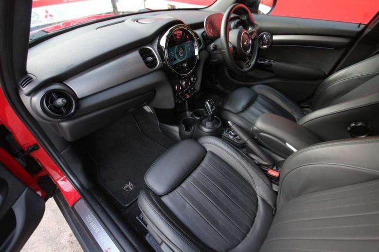 Apple CarPlay, Automatic start/stop function with brake energy recuperation, Compatible mobile phone bluetooth with audio streaming, Cruise control with brake assist, Electro-mechanical speed dependant steering assistance, Flexible car sharing preparation, Instrument cluster, MINI Driving Modes - centre toggle switch to control driving setting (sport, mid and green), Mini E-call, MINI TeleServices, On board computer, Rear park distance control, Service interval indicator, Double Vanos system, Fully variable valve control, Gear change indicator display, High precision injection, Performance Control, Steptronic sport transmission with double clutch and steering wheel paddles, 8.8" touchscreen with LED ring, FM tuner and DAB digital radio, 3rd brake light, Automatic headlight activation switch, Bonnet scoop, Chrome line exterior - radiator grille bars, tailgate handle, lower front grille grating and rear central fog-light, Dynamic brake lights, Electric front+rear windows, Heated rear window, Heated windscreen washer jets, LED headlight with closed ring and daytime driving lights, Metal door sill strips with Cooper S imprint, Model logo Cooper S on right of tailgate, Radiator grille chrome border with honeycomb structure including S Badge, Rain sensor window wipers, Rear fog lights, Rear LED lights with union jack design, Rear side wing doors, Rear window wiper, Side scuttle panel with integrated indicator, Sun/heat protection glass, White indicator lenses, 12V Accessory socket in centre console, 3 seat bench in 2nd row, 4 lashing eyes in luggage compartment, 60/40 split folding rear seat, Anthracite headliner including grab handles and clothes hooks, Carbon black colour line - Knee roll and door armrest, Chrome interior highlights, Chrome line interior - air vents, gear lever base, door handles and speakers in doors, Cupholders, Front and rear head restraints, Front and rear isofix with front passenger airbag deactivation, Front and rear velour floor mats, Glove compartment, Height and length steering column adjustment, Interior lighting with 12 different colours across the dashboard, underneath door bezel with illuminated laser-engraved design on central display, Leatherette gearshift lever and handbrake gaiters, LED reading lights, vanity mirror lights, front foot well light and spotlight on front seats, Manual air conditioning, Mechanical seat adjustment - forward/back & backrest for front seats and driver seat height adjust, MINI yours badge on exterior pillar, Multifunction steering wheel, Single front passenger seat, Sport leather steering wheel with speed limiter and audio/communication controls, Storage compartments in doors, Storage pocket on back of front seats, Sunvisors with vanity mirrors, Tool kit, Walknappa leather steering wheel with grey seam and MINI Yours badge on Piano Black lower steering wheel spoke, 3 point seatbelts on all five seats, 6 Airbags - front, side, head and seat belt tensioners, Anti-lock braking system (ABS), Child locks on rear doors, DSC - Dynamic Stability Control, Front and rear disc brakes, Hill start assist, Two tone horn, Tyre pressure monitoring system, Alarm system with tilt sensor, monitoring doors, bonnet interior and tailgate, Electronic vehicle immobiliser, Start/stop toggle with keyless go,