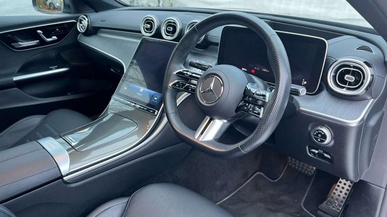 11.9" high resolution multimedia colour display, 12.3" digital instrument cluster display, Active blind spot assist, Active brake assist plus, Active lane keeping assist, AMG DYNAMIC SELECT with a choice of driving modes (Slippery, Comfort, Sport, Sport+, Individual), Attention assist, Cruise control with speedtronic variable speed limiter, E-call, Extended MBUX functions, Finger print sensor, Fluorescent jacket for driver, Head up Display, MBUX augmented reality for navigation, MBUX navigation premium, MBUX voice control activated by keywords "Hey Mercedes", Mercedes connect me, Mercedes me remote services, Outside temperature gauge, Pre-installation for digital key transfer, Remote boot release, Service indicator (ASSYST), Smartphone integration, Sports direct steer speed sensitive steering, Status display for rear seat belts in instrument cluster, Traffic sign assist, Wireless charging system for mobile devices, 66l fuel tank with increased capacity, 9G TRONIC 9 speed automatic transmission, Agility control sports suspension and lowered by 15 mm, Petrol Particulate Filter, Sporty engine sound system, Burmester 3D surround sound system, DAB Digital radio, MBUX multimedia system, Adaptive brake lights, Adaptive high beam assist plus, AMG body styling front apron, rear apron and side skirts, AMG front bumper with sporty air intakes and chrome elements, AMG rear bumper with high gloss chrome elements, AMG side skirts in vehicle colour, B-pillar trim in glossy black, Body coloured bumpers, Body coloured door mirrors, Chrome beltline trim, Daytime running lights, Digital light LED headlights with projection function, Electric panoramic sliding sunroof, Electric windows with one touch opening/closing and obstruction sensors, Electrically adjustable and heated door mirrors, Green tinted glass, Heat insulating dark tinted glass, Illuminated front door sill panels, LED Indicators, LED tail lights, LED third brake light, Noise acoustic glass, Powerdomes on bonnet, Privacy glass, Radiator diamond grille with integrated Mercedes Benz star and louvre silver with chrome pins, Radio aerial integrated into rear window, Rain sensor with automatic windscreen wiper activation, Rear boot, Rear side wing doors, Two visible exhaust pipes integrated into rear bumper, 3 seat bench in 2nd row, 3 spoke flattened bottom AMG multifunction steering wheel in black nappa leather with chrome inserts and perforated leather in grip area, 40:20:40 split folding rear bench seat, AMG sports seats, Artico man-made leather upholstery, Audio and onboard settings control on multifunction steering wheel, Auto Mercedes-Benz child seat recognition sensor, Black air vents with silver chrome elements, Black floor mats with AMG lettering, Black roof liner, Door trim elements high gloss black with silver chrome surroundings and switches, Double cupholder in centre console, Electrically height/reach adjustable steering column, Folding rear seat backrest, Front and rear head restraints, Front centre armrest with storage compartment, Gearshift paddles on steering wheel, Heated front seats, Illuminated door sills with Mercedes Benz lettering, Illuminated glove compartment stowage, Interior lighting - 64 colour Ambient lighting, Overhead control unit in high gloss black, Rear top tether child seat ISOFIX attachment, Single front passenger seat, Sports pedals with stainless steel surfaces and rubber studs, Sunvisors with illuminated vanity mirrors, Thermotronic automatic 4 zone climate control, Interior lighting package - C Class, Memory package - C Class, Mirror pack - C Class, Parking package with 360 degree camera - C Class, Seat comfort pack - C Class, Stowage space pack - C Class, USB package - C Class, USB package plus - C Class, 3 rear 3 point seatbelts, Active bonnet pedestrian safety measure which detects an impact and raises bonnet, Adaptive brake system with HOLD function and brake drying in the wet, Anti-lock braking system (ABS), Black seat belts, Brake calipers with Mercedes-Benz lettering + perforated front brake discs, Child proof door locks, Drivers knee airbag, Drivers pelvis airbag, Dual stage driver/passenger airbags, Electric parking brake, Electronic Stability Programme (ESP), Front centre airbag between driver and front passenger seats, Front side airbags, Larger brake discs on front axle, Rear seatbelt warning indicator, Sports braking system, Tyre pressure monitoring system, Warning triangle and first aid kit, Window airbags for driver, front passenger and rear passenger, Central locking with interior switch, automatic locking and crash sensor with emergency opening function, Chrome surround in electric key, Dashcam, Keyless Go, URBAN GUARD vehicle protection (Thatcham Category 1) consisting of break-in, anti-theft alarm system (ATA), interior monitoring and tow-away protection, Artico man-made leather dashboard with contrast stitching, Centre console trim in anthracite line structure lime wood, 19" AMG 5 twin spoke light alloy wheels aerodynamically optimised painted in black with high sheen finish, Noise reduced tyre with foam absorber, Summer tyres, TIREFIT with tyre inflation compressor,