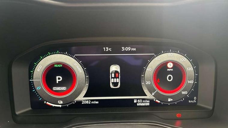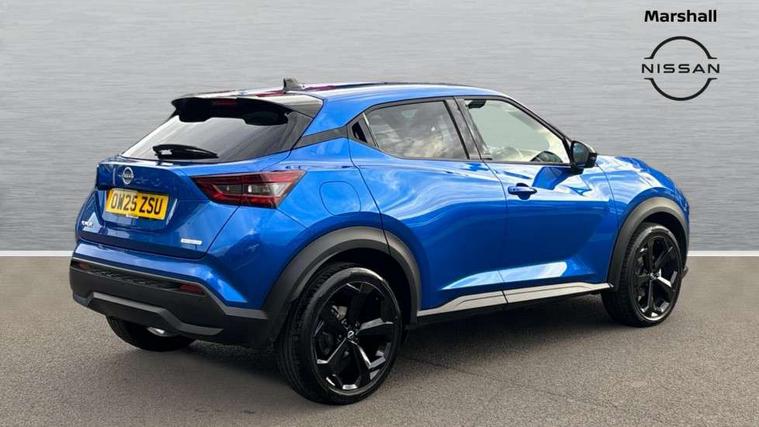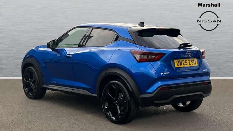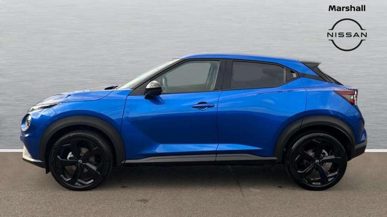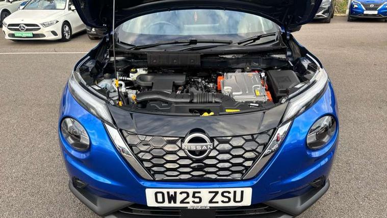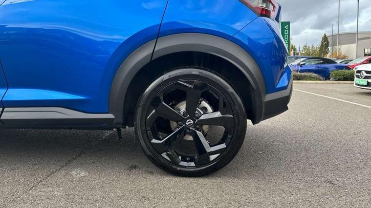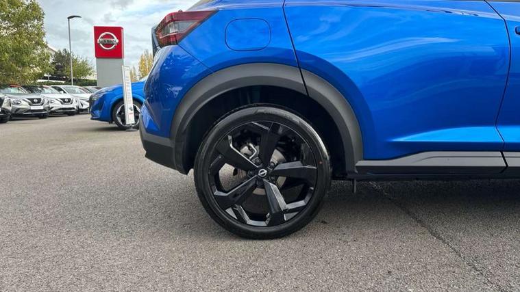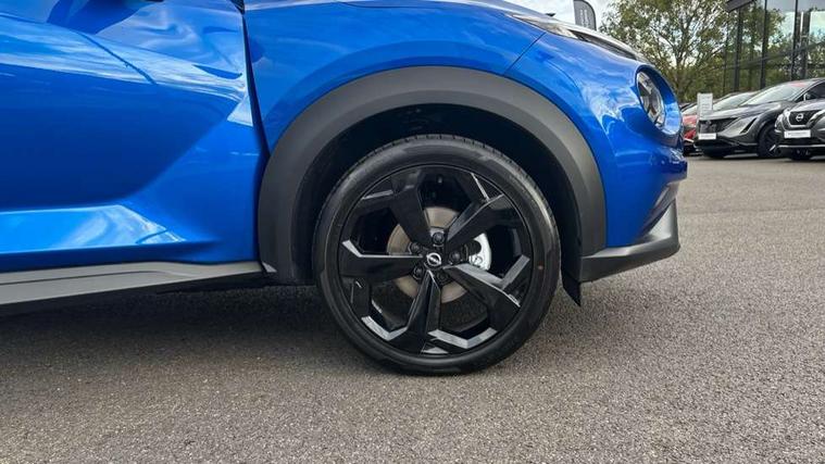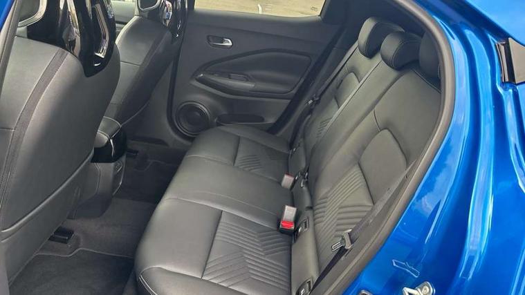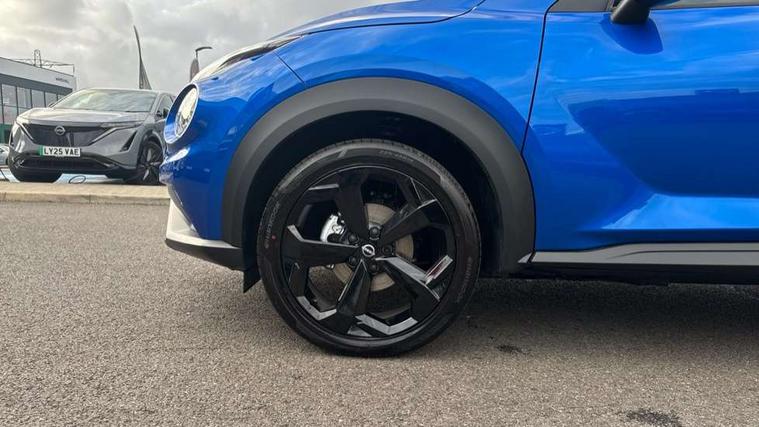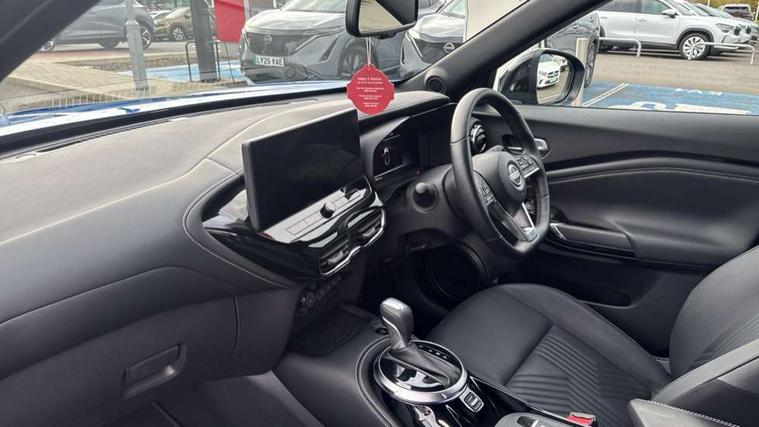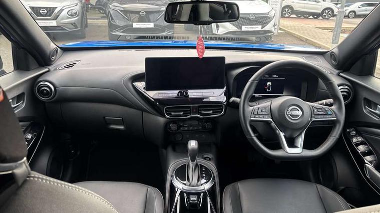 12.3" full colour TFT screen combimeter, Drive modes select (Eco, normal and sport), e-Pedal step, Emergency and breakdown call, EV mode switch, Front parking sensor, Intelligent driver alert system, Intelligent lane intervention, Lane departure warning system, Nissan connect 12.3" touch screen entertainment system, Nissan connect nav with TomTom traffic, Nissan connect services, Outside temperature sensor, Power Steering, Rear parking sensor, Stop/start button, Traffic sign recognition, Trip computer, Voice recognition, WiFi connectivity, Wireless Apple CarPlay and Google Android auto, Wireless Smartphone charger, 10 Bose speakers 8 speakers and 2 headrest speakers for driver/passenger seats, 2 X Rear console USB port, Bluetooth system, USB, Aux-in and 12V socket, Bose personal plus audio system, DAB Digital radio, Auto dimming frameless rear view mirror, Automatic hazard signal with emergency stop signal, Body colour door handles, Electrically adjustable door mirrors with integrated indicators, Follow me home headlights, Front and rear electric window with one touch driver window, High beam assist, LED 3rd brake light, LED daytime running lights, LED front fog lights, LED headlamps, LED rear fog lamp, LED rear lamps, One touch passenger window, Rear privacy glass, Rear side wing doors, Rear wiper, Roof spoiler, Shark fin roof antenna in solid Black, Solid black door mirrors, Three blink turn signal, 3 height adjustable rear headrests, 3 seat bench in 2nd row, 60/40 split folding rear seat, Card holder on driver sunvisor, Door ambient lighting, Driver seat back pocket, Driver side rear coat hanger, Driver/passenger sunvisors and vanity mirrors, Front and rear cabin lights, Front armrest, Front door pockets with bottle holders, Front head restraints, Front/rear passenger grab handles, Gear console ambient circle lighting, Height adjustable driver's seat, Internal chrome door handles, Luggage board, Luggage space lighting, Monoform sporty seats, Multifunction steering wheel, Passenger seat back pocket, Rear door bottle holders, Single front passenger seat, Smooth synthetic leather steering wheel, Synthetic leather kneepad, Synthetic leather shift knob, Synthetic leather upholstery, Telescopic steering wheel adjustment, Two cupholders in front centre console, Two rear isofix child seat anchorage points with top tether, Welcome light and console tray ambient lighting, Comfort pack - Juke, Heat pack with height adjustable passenger seats - Juke, ProPilot pack - Juke Auto, ABS with EBD and brake assist, Active ride control, Active Trace Control, Driver and passenger airbags, Driver and passenger side airbags, Electric handbrake with auto hold function, Electronic Stability Programme (ESP), Front and rear curtain airbags, Height adjustable seatbelts, Hill start assist, Intelligent emergency braking with pedestrian and cyclist recognition, Rear door child safety locks, Seatbelt reminder for driver/front passenger and rear seats, Three 3 point rear seatbelts, Traction control, Tyre pressure monitoring system, VDC Dynamic Vehicle Control, Alarm, Immobiliser, Intelligent key and start push button with walk away lock and approach unlock functions, Remote central locking, 19" Alloy wheels, Tyre puncture repair kit,