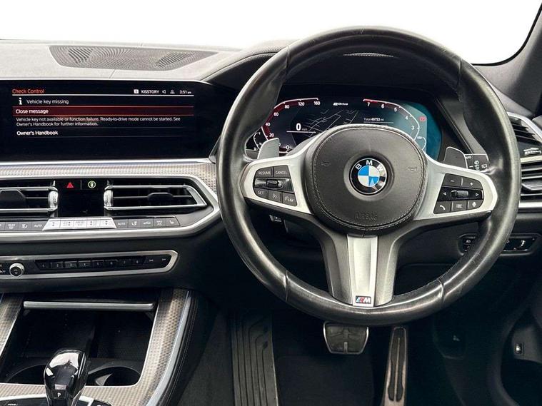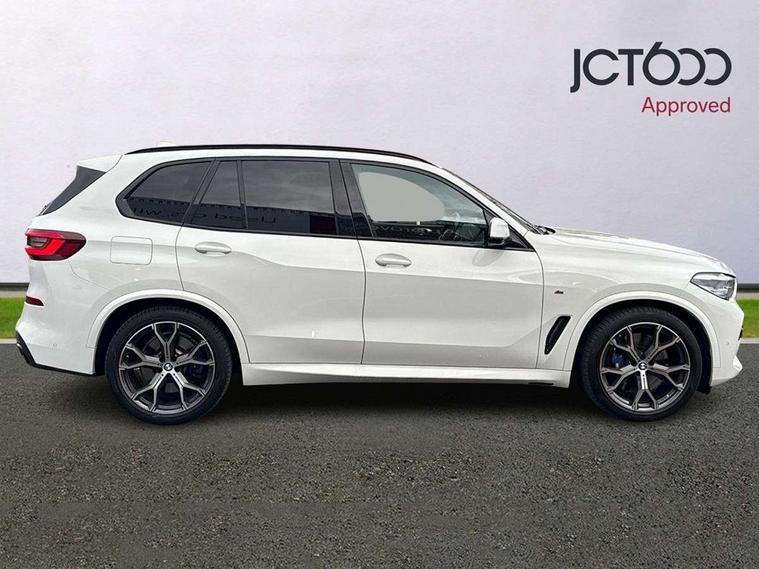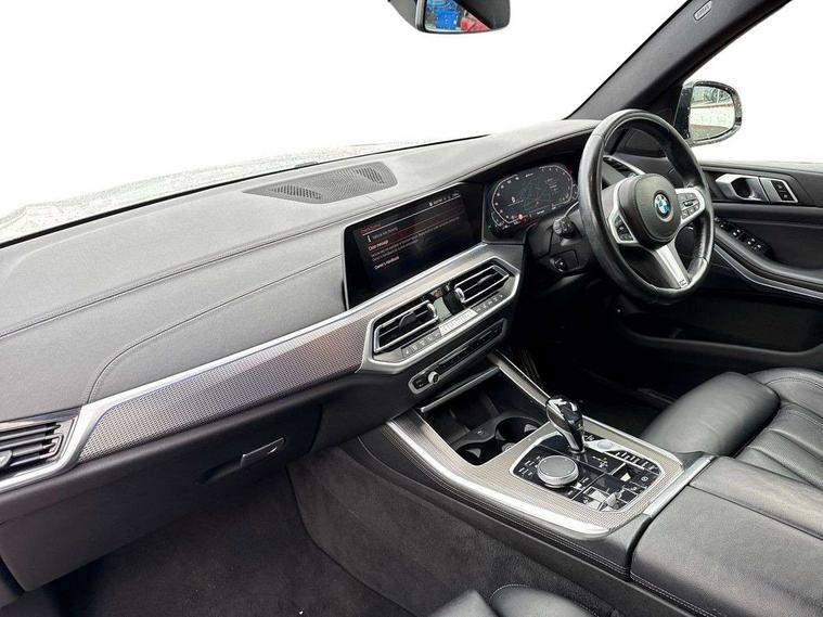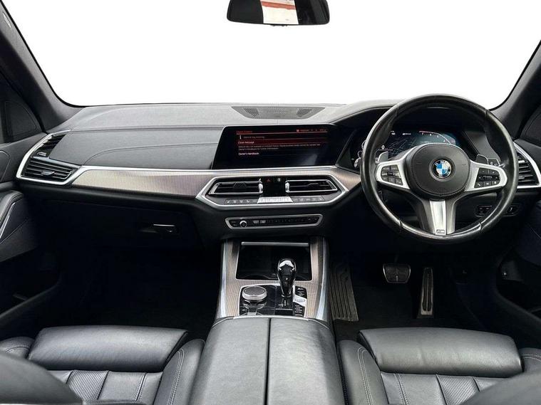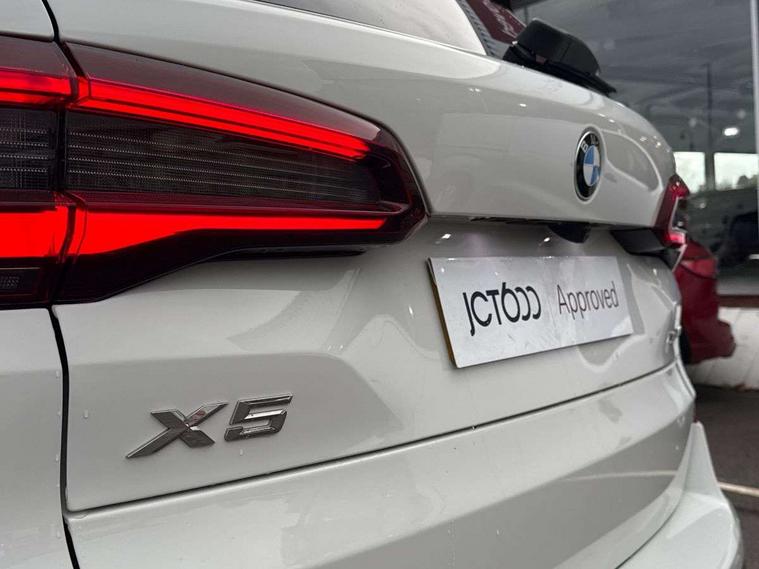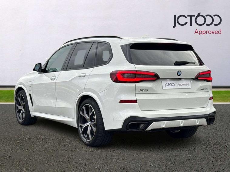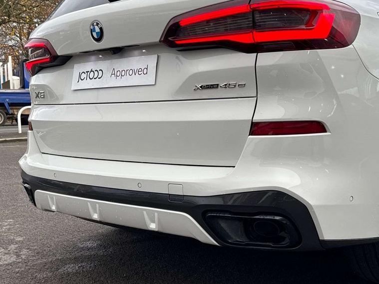 20GB hard disc drive (HDD) memory, Active guard plus, Attentiveness assist, Automatic tailgate with top hinged section open and manual bottom hinged section, BMW ConnectedDrive online services, BMW digital live cockpit professional - 12.3" digital instrument panel and 12.3" CID, with touch/voice command, BMW legal emergency call, BMW Teleservices, Brake force display, Brake pad wear indicator warning light, Cruise control with brake assist, eDrive button to select between AUTO eDrive, MAX eDrive and SAVE Battery settings, Front/rear park distance control, Galvanised plastic keyfob, Infinity symbol with line graphic on reset of average consumption, Lights on warning, Oil sensor for level and grade, On board computer inc. average speed, fuel consumption, liquid crystal Info display, journey computer, outside temperature display, personal profile, Service interval indicator, Speed limit info display, Speed limiting function, 5 metre AC Fast charge cable, Adaptive 2-axle air suspension, Double VANOS, Double wishbone front axle, Drive performance control with ECO PRO comfort + sport mode, eDrive exterior sound, Eight speed steptronic sport automatic transmission and gearshift paddles on the steering wheel, High precision injection, Petrol Particulate Filter, Safety battery terminal clamp, Standard Charging cable (Mode 2) for home socket, Twin scroll turbocharger with Valvetronic, DAB Tuner enables digital radio reception, Favourite buttons, USB connection, USB type A 1.5A in cupholder, USB Type C 3A in centre armrest, Active Air Stream kidney grille with high-gloss chrome, Adaptive air flap control bar in high-gloss black, Automatically dimming rear view mirror, BMW Individual high gloss black shadow line roof rails, Body colour bumpers, Body colour door handles, Dynamic brake lights with LED technology, Exhaust tailpipes - single, left and right with Chrome finisher, Follow me home headlight function, Front and rear electric windows with open and close fingertip control, anti trap facility and comfort closing, Heated windscreen washer jets, High beam assistant, High gloss black outer and central air intakes on front bumper with pearlescent chrome finish, High gloss black Side elements, LED daytime running lights, LED rear lights, Left charging flap on the front side, M aerodynamic body styling, M designation on left and right front side panels, Pearlescent chrome front grille bars, Rain sensor with automatic headlight activation and windscreen wiper control, Satin aluminium side window graphic, Third brake light in rear spoiler, Variable intermittent rear wash/wipe, Welcome light carpet, X5 on left tailgate, xDrive designation on right tailgate, 12V - Power sockets with 2x centre console and 1x luggage compartment, 40:20:40 split folding rear seats, Ambient interior lighting with 6 pre-designed selectable lights including dynamic function, Centre and rear interior light, Child seat ISOFIX attachment with rear outer seats includes top tether, Compartment in front of cupholder, Electric front seat adjustment with driver and front passenger memory function, Electrical steering column with adjustable height and length with activation and control on the steering column, Foldable rear centre armrest with 2 cupholders and storage compartment, Front and rear cupholders x 2, Front and rear door pockets, Front and rear door sill inlays with illuminated BMW M designation, Front and rear side armrest integrated into door trim, Front footwell lights, Front reading lights, Light inside glove compartment, Lockable glove compartment, Luggage compartment floor panel with integral storage tray, Luggage compartment lighting, M leather steering wheel, M specific key, M specific pedals, M specific steering wheel, M specific velour floor mats, Make-up mirror lights, Multifunction controls for leather steering wheel, Multifunctional hooks, Rear head restraints, Seat back with flap pocket, Securing rings in luggage compartment, Storage bins on all doors, Storage tray and compartment with cover in centre console, Sunvisors with illuminated vanity mirrors, Toolkit located in luggage compartment, Connected Package Professional - X5 xDrive45e, Expanded exterior mirror pack - X5/X5 M, Non-smokers pack - X5, Acoustic protection for pedestrians, Airbags - driver/front passenger, rear and side, first and second row seats head airbags, front passenger seat airbag deactivation + knee airbag, Anti-lock braking system (ABS), Automatic Stability Control (ASC), Brake drying, Brake energy regeneration, Brake fade compensation, Braking pre-tensioning, Cornering brake control (CBC), Crash sensor activating central locking release, hazard warning lights, fuel cut off, interior lighting + activation of safety battery terminal clamp, Deformation zones - front and rear with door reinforcements and bumpers up to 2.5 mph, DSC - Dynamic Stability Control, Dynamic brake control, Dynamic Traction Control - DTC, Electromechanical parking brake with automatic drive away release and auto hold function, Electronic brake force distribution, Front and rear seatbelts with seatbelt stopper, seatbelt tensioner for front and outer rear seats and belt force limiter, Front head restraints with anti-whiplash, Height adjustable front seatbelts, Hill start assistant, Integrated brake system, M Sport braking system in blue high gloss + blue painted brake calipers with M designation, Mechanical child proof lock on rear doors, Passive protection for pedestrians, Seat occupancy detection for driver and passenger side, Side impact protection, Three 3 point inertia reel seatbelts, Two tone horn, Tyre pressure monitoring system, Ventilated front and rear disc brakes, Warning triangle and first aid kit, Closing system with central locking, Driver and front passenger door centre lock switch, Locking wheel bolts, Thatcham 1 alarm system with remote control and engine immobiliser, Start/stop toggle diamond shaped trim finisher in pearl chrome,