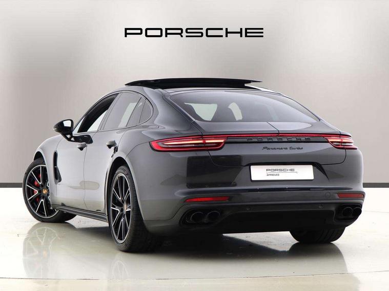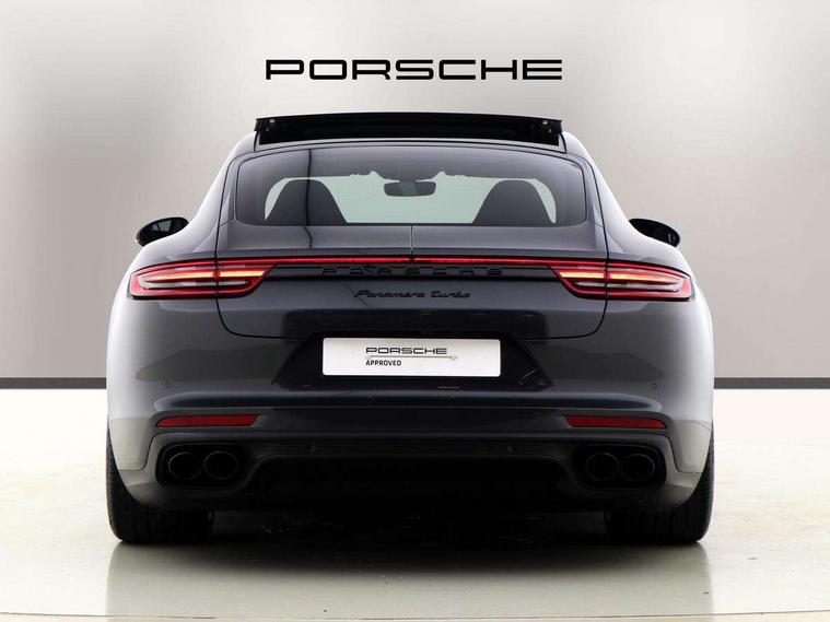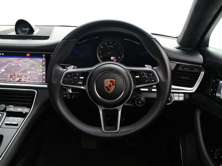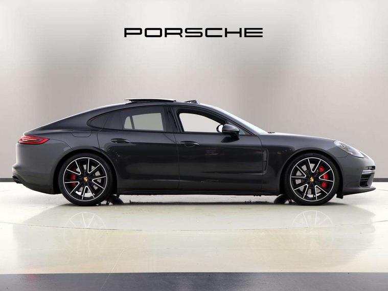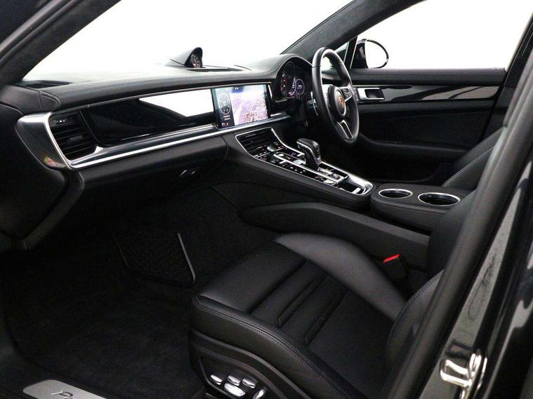 Ambient temperature display, Automatic start/stop system, Brake pad wear sensors front and rear, Instrument cluster with high-resolution 4.8-inch TFT colour display, Mobile telephone preparation, Porsche communication management including navigation, Service interval indicator, Sports button in centre console, Tailgate power closing, Trip computer, Voice control system, 90 litre fuel tank, Adaptive air suspension including Porsche Active Suspension Management (PASM), Double wishbone suspension, Porsche dynamic chassis control, Connect Plus with Apple CarPlay, wireless internet access, Carfinder, Remote Vehicle Status and Remote Services, DAB Digital radio, 2 speed front wipers + intermittent wipe, Aluminium bonnet with tailgate, door and front wings, Aluminium roof rails, Auto dimming interior and driver's door mirror, Automatic headlamp activation, Body colour air outlet, Dual tube twin turbo tailpipes in brushed stainless steel, Electric folding door mirrors, Electric front and rear windows + anti trap + one touch, Electrically adjustable and heated door mirrors, Four way adaptive rear spoiler in exterior colour, Grey tinted heat insulating glass, Headlight wash system, Heated rear window with auto timer, Integral side impact protection, LED daytime running lights, Rain sensitive windscreen wipers, Rear diffuser, Remote window closing, Water repellent glass in front side windows, Welcome home function, 12v power point in centre console, 12V socket in glovebox, 12V socket in luggage compartment, 14 way electric adjustable front seats, 4 way adjustable lumbar support, 60/40 asymmetric split folding rear seats, Air quality sensor, Alcantara roof lining, Electric height/reach adjustable steering wheel, Front armrest + cupholder, Front centre armrest with storage compartment, Gearshift paddles, Glove compartment, Heated front seats, Heated rear seats, Integrated front head restraints, Integrated rear head restraints, Isofix rear child seat preparation, Pollen filter, Rear armrest with 2 cupholders, Rear centre console, Retractable luggage cover, Storage compartment in centre console, Storage compartment in front doors, Storage compartment in rear doors, Storage net in luggage compartment, Driver memory pack - Panamera, Interior lighting pack - Panamera, Matt aluminium exterior pack - Panamera, 3 point front/outer rear seatbelts + pre-tensioners + force limiters on front seats, ABD, Active bonnet, ASR, Driver/Front Passenger airbags, Driver/front passenger side airbags, Drivers knee airbag, Electronic parking brake, Front and rear curtain airbags, Height adjustable front seatbelts, Passenger airbag deactivation warning, Passenger knee airbag, PTM (Porsche Traction Management), Rear side airbags, Red brake calipers, Tyre pressure monitoring system, Alarm system with interior radar surveillance, Comfort access system, Remote control central locking, Remote keyless entry, Transponder engine immobiliser, Sealing compound and compressor kit,