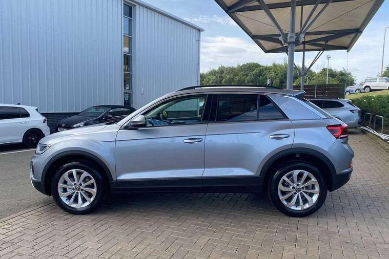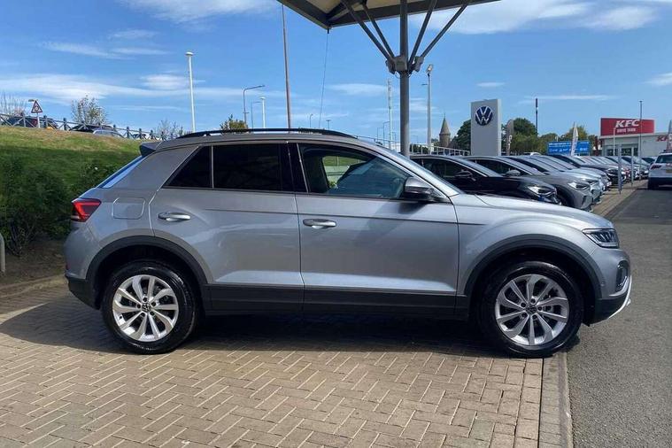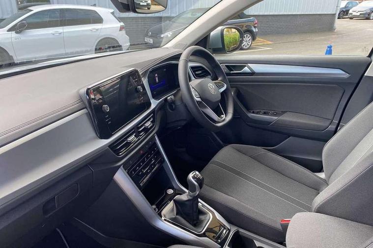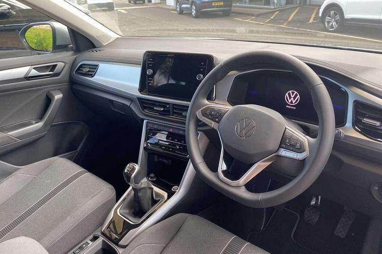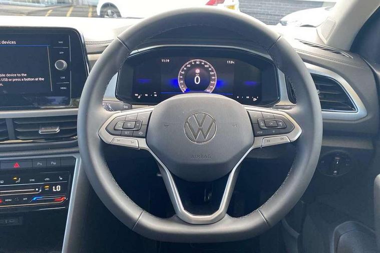 Advanced driver attention and drowsiness monitor, Dynamic road sign display, Emergency call service, Lane keeping system Lane Assist, Mobile phone interface, Modified key software - reduce switch off time for key status change to Long no motion, Online services, Park assist including front and rear parking sensors, Power assisted speed sensitive steering, Rear view camera, Service interval indicator, Tailgate/trunk lid release from outside, Think blue trainer driver tips and journey analysis, Warning sound and light for front seatbelts unfastened, Wireless app connect, Battery regeneration during braking, Front shock absorption, Rear shock absorption chassis with increased ride height, Start/stop function with battery regeneration, DAB Digital radio, Diversity antenna for FM reception, Music playback - MP3, WMA and AAC files, Premium USB cable in choice of either Apple or Android smartphone compatibility, SD card slot, Simultaneous pairing of 2 compatible mobile devices, Title and cover art display, We Connect and We Connect Plus functionality, Auto dimming interior rear view mirror, Automatic hazard lights activation under emergency braking, Automatic headlight control with LED separate daytime running lights with coming/leaving home function, Black roof rails, Body coloured bumpers and radiator grille with chrome trim and front fog lamps with chrome bezel, Body coloured exterior mirror housings and door handles, Electrically adjustable and heated door mirrors, Extended roof spoiler, Exterior mirrors aspherical on driver side, convex on front passenger side, External USB type C socket and charging sockets, Front windscreen wiper with intermittent wipe and 4 position delay, Heated rear window, LED 3rd brake light, LED rear combination lamps, LED rear number plate lights, Power windows with comfort operation and circuit breaker, Privacy glass for rear side windows and rear window, Rain sensor, Rear exhaust tailpipe, Rear fog light on one side and reversing lights on both sides, Rear side wing doors, Rear wash/wipe with intermittent wipe setting, Remote electrically foldable door mirrors, puddle lights and reverse activated passenger's door mirror, 12V power socket in centre console, 3 rear head restraints, 3 seat bench in 2nd row, 4 load lashing points in luggage compartment, Air care climatronic air conditoning system with active combination filter and 2-zone temperature control, Black stitching for floor mats, Ceramique roof liner, Cloth upholstery, Door and side trim panel in cloth, Drawer under drivers seat, Driver/front passenger seat height adjustment, Front centre armrest, Front comfort sports seats, Front cupholders x 2, Front reading light, Front seat back storage pockets, Glove compartment door with light, Instrument lighting, white adjustable panel illumination, Interior ambient lighting and surround lighting, Interior light delay, Isofix child seat preparation, Leather gearshift handle, Load-through provision with cup holder when folded down ('Unsplit rear seat bench, split folding backrest, with centre armrest), Luggage compartment lighting, Lumbar support for driver's and front passengers seat, Non-folding front passenger seat backrest, Single front passenger seat, Storage compartment in left and right luggage area, Storage compartment in rear doors, Storage compartments in driver and front passenger doors, Sunvisors with illuminated vanity mirrors, Variable boot floor, height adjustable and removable, Driver assistance pack without proactive passenger protection - T-Roc Life/Match, 3 point height adj front seatbelts + pretensioners, 3 point seatbelts in outer rear with ECE label, ABS, Child locks on rear doors, City emergency braking and pedestrian monitoring, Driver and front passenger airbag with front passenger airbag deactivation, Driver and front passenger safety-optimised head restraints, Drivers seatbelt reminder, Electronic parking brake, Electronic Stability Control (ESC) inc EDL (Electronic Differential Lock) and ASR (Traction Control), Front and rear passengers curtain airbag system including front side airbags, Front disc brakes, Hill start assist, Predictive pedestrian protection, Rear disc brakes, Two tone horn, Tyre pressure loss indicator, Volkswagen roadside assistance, Alarm with interior protection, Keyless locking and starting system keyless access with safelock, Pewter matt decorative inserts for intrument panel, centre console and door panels at the front, Trims for alloy wheels,
