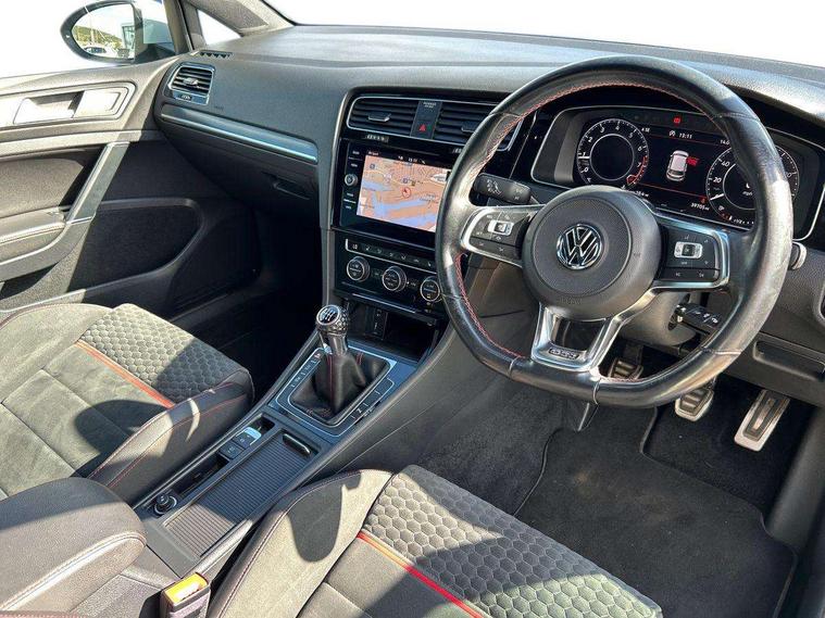 'Lights On' Reminder warning buzzer, ACC - Adaptive cruise control with front assist, forward collision warning, distance monitoring, city emergency brake and speed limiter, Active information display - 12.3" high resolution TFT display, Bluetooth telephone and audio connection for compatible devices, Brake pad wear indicator warning light, Car information display, Driver alert system, Driver profile selection, Driving Mode Selection with four preset modes - Eco, normal, sport or individual modes, Front assist, radar sensor controlled distance monitor, city emergency braking + predictive pedestrian protection, Front assistant collision mitigation, Instrument cluster in white, Multifunction computer with visual gear change recommendation for fuel consumption, Power assisted speed sensitive electro-mechanical steering, Rear view camera, Speedo, rev counter, electronic odometer, trip, service interval display, exterior temperature and fuel gauge, Stop/start system, Ultrasonic front and rear optical and audible parking sensors, Warning buzzer and light for front seatbelts unfastened, Battery regeneration during braking, Limited slip differential, Lowered sports suspension, Composition media system, DAB Digital radio receiver, MDI multi device interface, MP3/WMA compatability, Multi device interface (MDI) with USB connection, Premium USB cable in choice of either Apple or Android smartphone compatibility, SD card slot, SMS Functionality, Title and cover art display, 4 X 20W output, USB connection and socket, USB and SD card connectivity, Volkswagen media control, 3D-LED tinted rear light clusters with indicator sweep function, Automatic dimming rear view mirror/rain sensor, Black rear diffuser, Body colour door handles, Body colour door mirrors with integrated indicators, Body colour rear roof spoiler, Body colour sports bumpers, Chrome trimmed front air intake surrounds, Darkened rear light clusters, Electric front windows, Electric rear windows, Electrically adjustable and heated door mirrors, Extended sill strips flared, Glavanised body, Heated rear windscreen, High level 3rd brake light incorporating LED Technology, Honeycomb radiator grille - black, LED front fog lights, Range adjustable headlights via infotainment system with LED daytime running lights, Rear fog lamp, Rear number plate lights incorporating LED technology, Rear window aerial, Rear window wash/wipe with intermittent wipe, Reflectors in all doors, Remote electrically foldable door mirrors, door mirror puddle lights and reverse activated kerb-view adjustment on passengers door mirror, Twin exhaust tailpipe, Windscreen wipers/ intermittent wipe + 4 position delay, 12V socket in luggage compartment, 3 rear headrests, 4 load lashing points in luggage compartment, 60/40 split folding rear seat backrest, Bag hook in luggage compartment x 2, Black roof lining, Climate control - 2 zone electronic air conditioning with automatic air recirculation and allergy filter, Cooled glovebox, Dust/pollen filter, Front + rear carpet mats, Front centre armrest with storage compartment and two rear air vents, Front footwell lights, Front reading lights, Front seat back storage pockets, Grab handles front x 2, rear x 2 with integrated coat hooks, Height and reach adjustable steering wheel, Illuminated door sills, Illuminated vanity mirrors, Instrument lighting white adjustable panel illumination, Interior light delay, Isofix preparation for 2 rear child seats, Leather gear knob and handbrake grip, LED front and rear reading lights, Load through provision with rear centre armrest and cupholders x2, Luggage compartment light, Multi-function leather steering wheel with red stitching, Multifunction leather steering wheel with leather trimmed gear knob, Overhead storage box, Stainless steel pedals, Storage box in luggage compartment, Storage compartment in roof console with cover, Storage compartments in front doors, Storage compartments in rear doors, Stowable luggage compartment cover, Sun visors, Three spoke multi-function leather trimmed steering wheel and gearknob, Variable boot floor, height adjustable and removable, Ambient lighting pack - Golf, Convenience Pack - Golf, Light and Sight pack - Golf, Mirror pack - Golf, 3 rear three point seatbelts, Airbags - Driver's and front passenger's, curtain airbag, Driver's knee, front side impact and passenger's airbag deactivation switch, Anti-lock Braking System (ABS) with Hydraulic Brake Assist (HBA), Automatic post collision braking system, Child locks on rear doors, Driver/Passenger optimised head restraints, Electronic parking brake with auto hold, Electronic stability control (ESC) including Electronic differential lock (EDL) and ASR (Traction control) with deactivation via infotainment system, Pre crash preventive occupant protection, Red brake calipers, Three point height adjustable front seatbelts with tensioners, Tyre pressure loss indicator, Uprated front disc brakes + calipers, Alarm with interior protection and deactivation via infotainment system, Electronic engine immobiliser, Keyless entry, Remote central locking with 2 remote folding keys, Chrome plated air vent surround, Chrome plated electric mirror adjustment light switch surround, Honeycomb black decorative inserts, Piano black centre console, Space saver spare wheel,
