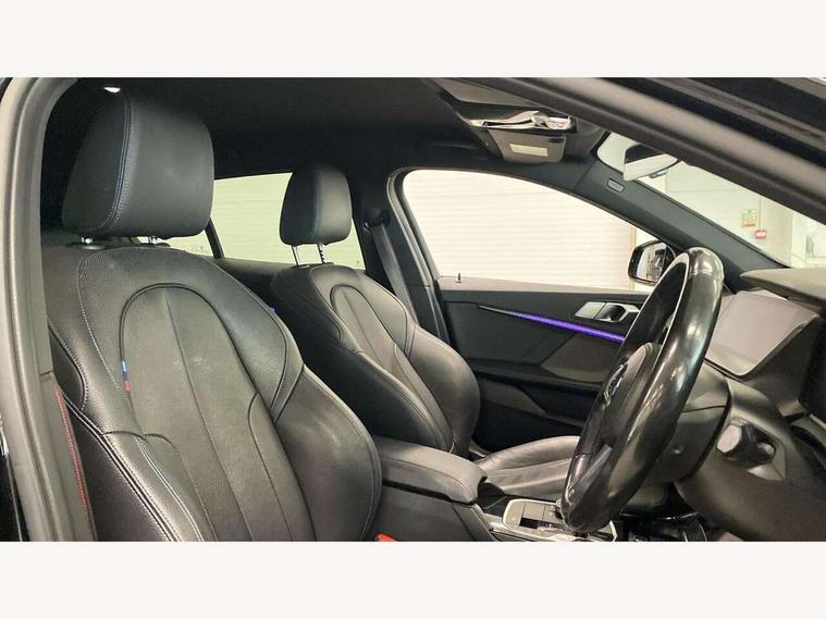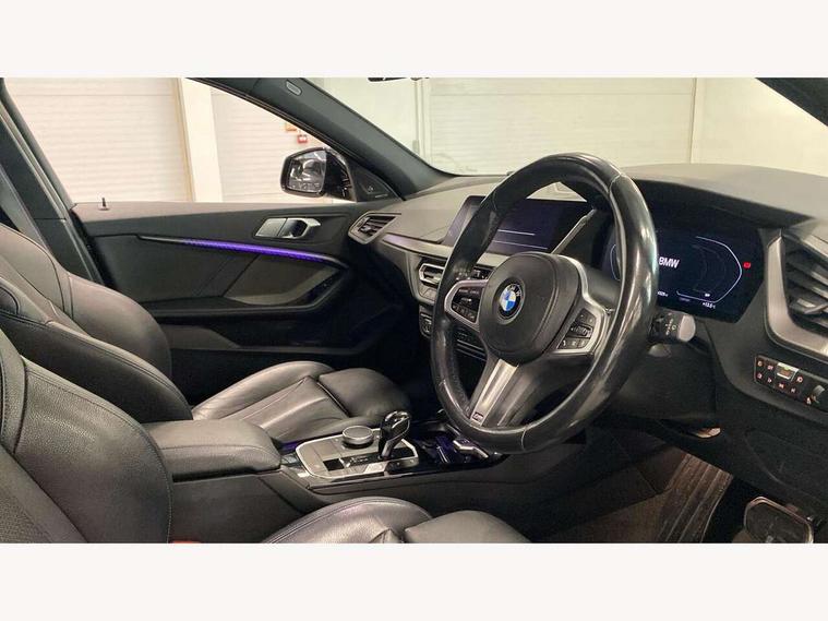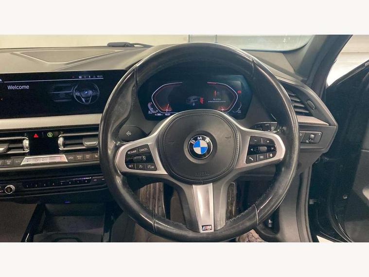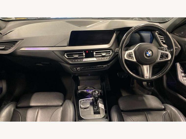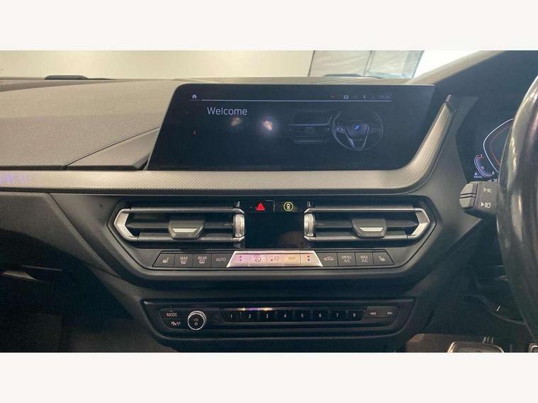 Active guard plus, Attentiveness assist, BMW Online services, BMW Teleservices, Check Control warning system for monitoring of lights and door/luggage compartment open warning, Connected eDrive Services, Eco pro mode, Integrated owners handbook, Oil sensor for level and grade, On board computer, Optimum shift indicator, Personal Profile, Pull away assistant, Speed limiter, Aluminium lightweight construction, Anti roll bar front and rear, Balancer shaft, Diesel particulate filter, Drive Performance Control, Electronic differential lock, M sport suspension, Bluetooth audio streaming, DAB Digital radio, Auto dimming rear view mirror, Automatic headlight beam throw control, Automatic windscreen wipers and automatic headlight, Body colour door handles, Body colour mirror caps, Chrome 'M' logo side designation, Chrome exhaust tailpipe in single, round (Exhaust tailpipe, stainless steel - single, round), Chrome kidney grille frame with Satin Aluminium struts, Direction indicator side lights in exterior mirrors, Electric folding and anti dazzle exterior mirrors, Fading support, Follow me home headlights, Front and rear bumper system with replaceable deformation elements, Front and rear electric windows with open and close fingertip control, anti trap facility and comfort closing, Front door sill finishers in black plastic with M designation in metallic look, Green tinted heat protection glazing, Heated, electrically adjustable exterior mirror aspheric on driver side, convex on passenger side, High gloss shadowline window frame, Recess cover mirror frames and B/C pillar embelisher trim, High level third brake light, LED daytime running lights, LED eyebrow turn indicators, LED front fog lights, Lightweight engineering, Matt black air guide grilles, Model designation on right side of tailgate, Nearside reverse light in rear light cluster, Preparation for high beam assistant, Rain sensor including auto headlights activation, Rear fog lights, Rear window wiper, Shark fin antenna, Visible VIN plate, Welcome lighting, 12V power socket in centre console, 3 rear seat head restraints, 3 spoke M sports design leather steering wheel finished in nappa leather with specific M badge, Anthracite headlining, Anthracite Velour floor mats, Child seat ISOFIX attachment for two outer rear seats and front passenger seat with anchorage points, Conditioned based service, Dakota leather upholstery with perforation and contrast stitching, Driver and front passenger seat heating, Folding rear clothes hook, Four grab handles integrated in roof lining, Front and rear door pockets, Front and rear door pockets with bottle holders, Front and rear side armrest integrated into door trim, Front armrest foldable with integrated storage compartment, Front sports seats with electric side bolster adjustment, Glove compartment, Height adjustable front head restraints, Manual adjust steering wheel, Multi-function controls for steering wheel, Storage compartment in centre console, Sun visors with vanity mirrors and insert tab, Two zone automatic air conditioning, Additional interior lighting pack - 1 Series, Connected pack professional - 1 Series, Extended storage pack - 1 Series, Interior lights pack - 1 Series, Luggage compartment pack - 1 Series, M Sport exterior styling aerodynamics pack - 1 Series, 2 tone horn, 3 point seatbelts on all seats, front pyrotechnic belt tensioners, stopper and belt force limiters, rear coded belt buckles, Airbags - front driver/passenger, front & rear curtain, front side, Anti lock braking system (ABS) with brake assist, BMW emergency call, Brake drying, Braking readiness, Crash sensor activating central locking release, hazard warning lights, fuel cut off, interior lighting + activation of safety battery terminal clamp, Driver and front passenger seat belt security check, Dynamic stability control + (DSC+), Dynamic Traction Control - DTC, Electrically operated hand brake, Front and rear disc brakes, Front passenger manual airbag deactivation, Seatbelt warning, Side impact protection, Tyre pressure monitoring system, Warning triangle and first aid kit, Automatic drive away locking facility, Central locking switch for all doors, fuel filler cap and luggage compartment, Deadlocking function system to all doors, Incorrect fuel protection system, Locking wheel bolts, Remote control with integrated key with High-gloss Black inlay and M designation and 1 button for open/ close lock, window, open luggage compartment, Start/stop button with comfort go keyless engine start and auto start stop deactivation button, Thatcham Cat.1 alarm and immobiliser, Contrast stitching on instrument panel, Reduced rolling resistance tyres,