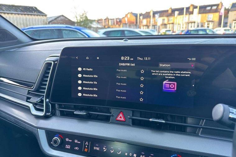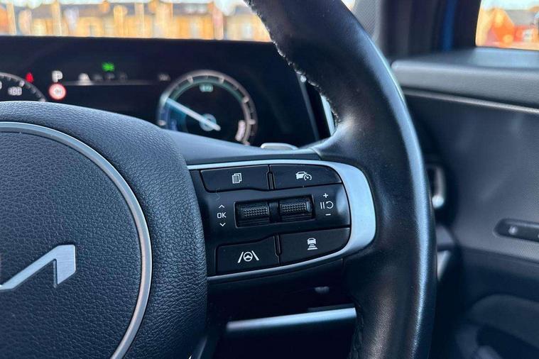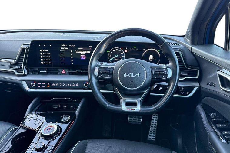 12.3" Display with navigation, 12.3" supervision colour cluster display, 360 degree around view monitor, Apple car play/Android Auto with voice control, Blind spot collision avoidance assist, BVM - Blind spot view monitor, Drive mode selector, E-call, Forward collision avoidance assist (FCA) - city/pedestrian/cyclist/junction covering, Front and rear parking sensors, Highway Driving Assist (HDA), Intelligent speed limit assist, Kia Connect (UVO), Lane Following Assist (LFA), Lane keep assist, Low washer fluid warning, Parking collision avoidance assist (PCA), Remote smart parking assist, Reversing camera system integrated into centre fascia screen, Smart cruise control with stop and go functionality, Smart power tailgate, Speed sensitive power steering, Trip computer, Windscreen washer level indicator, Wireless Smartphone charger, Intelligent Stop and Go, Bluetooth audio streaming, DAB Radio with MP3, Harman Kardon premium sound system, Rear USB port, Steering wheel mounted audio controls, USB C type charging ports on centre console, USB C type charging ports on side of front seats, USB port for connection of a media device, All round electric windows with drivers and front passenger auto up/down function, Automatic headlight control system, Automatic window defogger, Backlite glass heated with timer, Body colour and black bumper with silver accents, Body colour exterior door handles, Body colour radiator upper garnish and door garnish, Dual LED adaptive headlamps, Electric panoramic glass sunroof (Electric one touch with safety function), Electrically adjustable/heated/folding door mirrors with LED indicators, Front and rear skid plate - chrome, Gloss black door mirrors, Gloss black radiator grille, Gloss black side sill and wheel arch body mouldings, Glossy black roof rack, High beam assist, Interior electrochromic mirror, LED daytime running lights, LED front fog lamps, LED High mounted stop light, LED rear combination lamp, Rain sensing wipers with aero blades, Rear fog lamp, Rear privacy glass, Rear side wing doors, Rear spoiler, Rear wiper, Satin finished beltline, Trailer stability assist, 10 way driver/8 way passenger electrically power adjustable seats, 12V power socket in front centre fascia and luggage compartment, 3 seat bench in 2nd row, 3 x passenger assist grips, 40/20/40 split folding rear seat, All-round height adjustable headrests, Ambient lighting, Black headlining, Centre console storage box, Cupholders in rear armrest, D-Shaped sports leather steering wheel and perforated inserts with GT-Line logo, Door courtesy lamps, Drink holder at centre armrest, Driver and front passenger side sunvisors with illuminated vanity mirrors, Driver seat memory function, Drivers seat power lumbar support, Front and rear door storage, Front seat and rear pockets, Front/rear centre armrests, Gear shift indicator, Glovebox illumination, Heated front and outer rear seats, Heated steering wheel, Interior door lock/unlock function, ISOFIX Child seat top tethers and anchor fixings outer rear seats, LED interior personal lamp, LED lighting in overhead console, Luggage area LED light, Luggage area load cover, Luggage net hooks, Metal paint interior door handles, Paddle shift controls, Rear coat hooks, Single front passenger seat, Sports pedals, Suede leather upholstery, Three zone climate control, Tilt/telescopic adjustable steering wheel, Ventilated front seats, Ventilation ducts to rear compartment, Active front headrests, All round 3-point seatbelts, Anti-lock braking system (ABS), Dual front side airbags, Dual horn, Electronic parking brake, Electronic stability control with downhill brake control, Front passenger airbag cut-off switch, Front seatbelt pretensioners + load limiters, Height adjustable front seatbelts, Hill start assist control (HAC), Impact sensing auto door unlocking, Multi collision brake assist, Rear door child safety locks, Rear seat alert system, Traction control, Twin curtain airbags, Twin front airbags, Tyre pressure monitoring system, Advanced anti-theft system including immobiliser and alarm, Door deadlocks, Engine Start/Stop Button with Smart Entry System, Locking wheel nuts, Speed sensitive auto door locking, Visible vehicle identification number, Aluminium pattern finish centre fascia and door garnish, 18" alloy wheels, Michelin tyres, Tyre mobility kit,