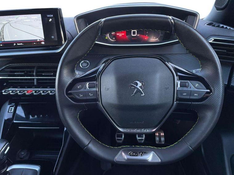 Bluetooth telephone facility, Connected 3D navigation, Driver attention warning, Exterior temperature indicator with ice warning, Front and rear parking sensors, Lane keep assist, Mirror screen with mirror link, apple carplay and android auto, Multi function trip computer, PEUGEOT i-Cockpit with 10" capacitive colour touchscreen, PEUGEOT i-Cockpit with compact steering wheel, PEUGEOT i-Cockpit with configurable 3D headup instrument panel, PEUGEOT SOS and assistance, Smart phone docking station, Speed limit recognition and recommendation, Start/stop system, Visio Park 1 with 180 degree Colour reversing camera, 2 front USB socket with USB-C, 2 USB sockets in rear, 6 speakers radio with mp3 compatible, DAB Radio (Digital Audio Broadcasting), Voice recognition for radio, navigation and telephony features, 2 X Rear number plate lights, Acoustic windscreen, Automatic hazard light activation upon heavy brake application, Black diamond roof, Black front wing trim with gloss black detail and GT badging, Body coloured exterior door handles, Chrome exhaust tailpipe, Chrome Lion Badge front and rear, Dark tinted rear side and tailgate windows, Diamond black mirror shells, Diamond black rear spoiler (roof), Electric, heated, and power folding door mirrors, Frameless electrochrome interior rear view mirror, Front bumper - Silver lower trim, Full LED headlights with smartbeam assist, Gloss black longitudinal roof rails, Gloss black rear cluster connecting strip, Gloss black roof bars, Gloss black window surround, GT model designation badging on tailgate, Headlights left on audible warning, LED daytime running lights with 3 claw headlight with distinctive tooth design, LED side indicator lights integrated into door mirrors, LED third brake light, Model designation badges front and rear, One touch electric front/rear windows with pinch protection, Radiator grille - Dark chrome chequered and gloss black edge trim, Radiator grille - gloss black top edge trim, Rear full LED 3D peugeot signature claw effect lights with daylight function, Rear reversing lights, Rear side wing doors, Rear windscreen wiper triggered automatically in reverse gear, Saline grey finish on B pillar, Stainless steel door sill scuff plates, Tailgate with heated rear windscreen and wiper blade, Trailer Stability Programme, Variable front intermittent wipers, Welcome lighting, Wheel arch extensions, 1/3 to 2/3 split folding rear seats, 12v power outlet - front, 12V socket, 3 seat bench in 2nd row, 8 Colour personalisable ambient lighting, Aluminium pedals, Automatic air conditioning with pollen and active carbon filter, Central front armrest with storage compartment, Driver and front passenger sport seats, Electric power steering with reach and rake adjustable steering column, Front and rear carpet mats in black with lime green stitch detail, Front centre armrest, Front LED interior light with 2 reading spotlights and rear interior light with timer, Front passenger seat manual adjustment - height, longitudinal and back rest angle, Gear lever top - manual in full grain leather, Gear shift indicator, Heated front seats, High centre console, ISOFIX child seat mounting points on passenger seat, Lime green contrast stitching to front centre console, door panels and dashboard facia, Mistral full-grain perforated leather steering wheel with Lime Green stitch detail and satin chrome 'GT' emblem, Modular boot floor, Multifunction steering wheel, Piano keys: Gloss black and chrome toggle switches to access main functions of the vehicle and touchscreen functions, Roof lining - Saline grey, Seatbelt unfastened on the move audible and visual alert for front and rear seats, Single front passenger seat, Switch for Push Button Start finished in black with chrome surround, Visibility pack - 2008, 2x 2nd row ISOFIX child seat mountings, ABS (Anti-lock Braking System) with EBD (Electronic Brakeforce Distribution) and EBA (Emergency Braking Assistance), Acoustic vehicle alerting system, Active safety brake with night function/cyclists/pedestrians, Adaptive driver and front passenger airbags with passenger airbag deactivation function, Child locking functionality on rear doors, Driver/front passenger side airbags, Electric parking brake, ESP (Electronic Stability Program) + Hill Start Assist, Front and rear curtain airbags, Front and rear disc brakes, Front and rear three-point retractable seatbelts, with force limiters, Front optimised safety headrests and rear retractable headrests (x3), height adjustable, Tyre pressure sensor, Alarm system with anti-lift sensor, Automatic door locking when moving off, Deadlocks, Electronic code immobiliser, Exterior door lock x1 (Left-hand or passenger’s side), Remote central locking, Carbon effect Dashboard, front and rear door panel finish,