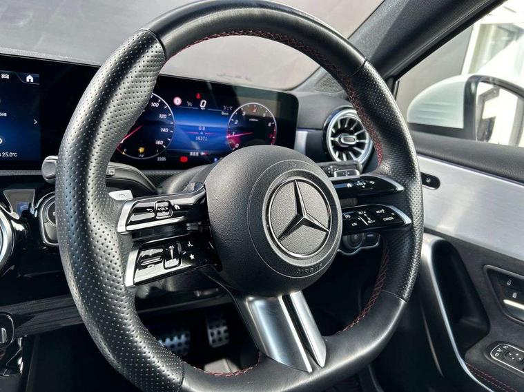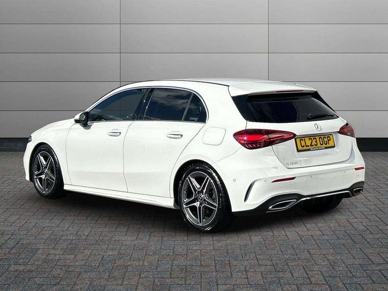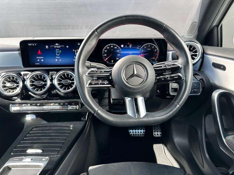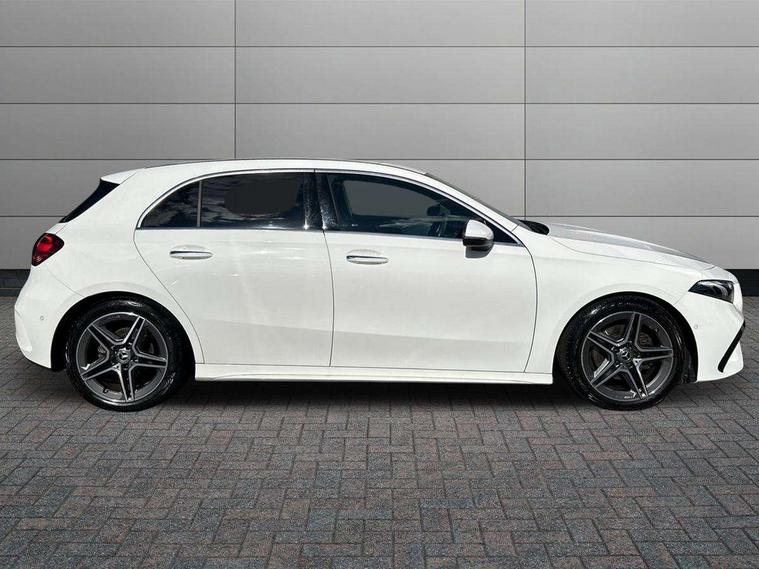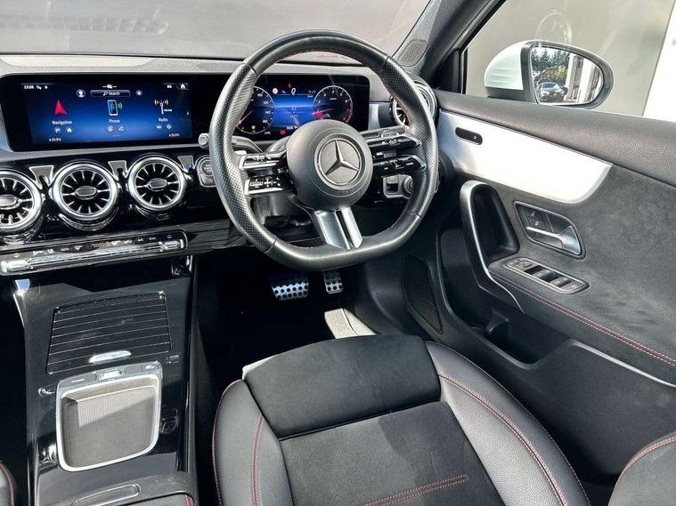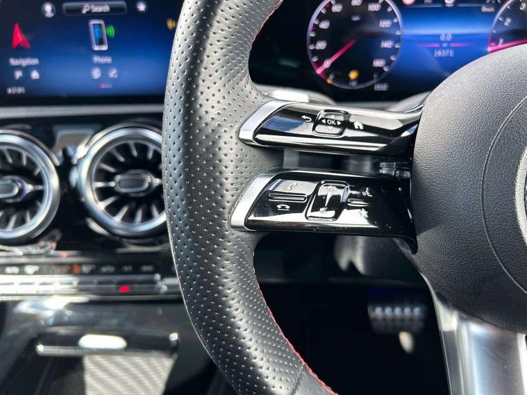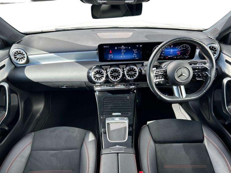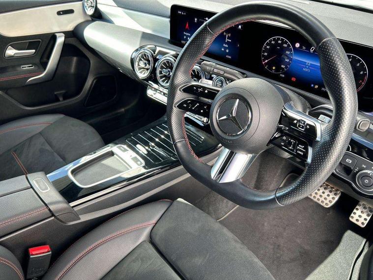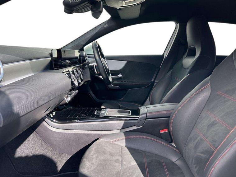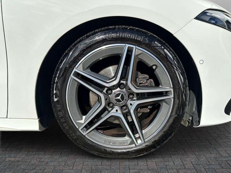 10.25 inch touchscreen central media display, 10.25" Digital instrument cluster display screen, Attention assist, Blind spot assist, Brake pad wear indicator warning light, Car wash mode, Cruise control + speed limiter, Direct steering, Direction indicators with lane change function, Dual bluetooth interfaces, DYNAMIC SELECT with a choice of driving modes (ECO, Comfort, Sport and Individual), Easy pack tailgate hands-free access, ECO start/stop function, Engine start/stop button, Fluid level warning indicator for fuel, oil, coolant and washer fluid, Hard-disk navigation, Hey Mercedes Voice activation, Lamp failure indicator, Lane keeping system, MBUX augmented reality for navigation, Mercedes me connect including emergency call system, accident recovery, breakdown and maintenance management, Mercedes me remote services, Outside temperature gauge, Owners manual in English, Pre-installation of private car share, Preinstallation for Mercedes Benz link, Remote boot closing, Service indicator (ASSYST), Smartphone integration with Apple CarPlay and Android auto, Speed limit assist, Speed sensitive power steering, Trip computer in multifunction display with current consumption indicator, Wireless charging, Lowered comfort suspension, DAB Digital radio, MBUX multimedia system, Mercedes Benz advanced sound system (225 W) with 10 speakers, 1 central speaker, speakers on doors, a tweeter on door, one sub woofer + boost amplifier, 4 Electric Front and Rear windows, Adaptive brake lights, AMG body styling - AMG front apron with front splitter and AMG rear apron and visible exhaust tailpipe trim elements, Body colour bumpers, Body colour door handles with chrome inserts, Body colour side skirt, Body coloured door mirrors, Chrome beltline strips, Diamond radiator grille with pins in fine star pattern, Electric adjustable and heated door mirrors with integrated LED side indicators, Exhaust system with 2 visible tailpipe trim elements and rear apron, Headlamp assist automatic headlamp activation, Heat insulating dark tinted rear and rear side windows, Heated glass rear windscreen + timer control, LED High level third brake light, LED High Performance headlamps including integral LED daytime running lamps and adaptive highbeam assist, LED tail lamp, Privacy glass, Radio aerial, Rain sensing windscreen wipers with two sensitivity settings, Rear fog lights, Rear side wing doors, Rear windscreen wiper, Window line trim strip in chrome, 3 seat bench in 2nd row, 3 Spoke flat bottom leather multi function steering wheel with perforated leather in grip area, 4 way lumbar support, 40:20:40 split folding rear seats, AMG floor mats, Automatic child seat recognition sensor, Black air vents with surround in silver chrome, Black roof lining, Brushed stainless steel sports pedals with rubber studs, Front centre armrest with stowage, Front seat backs luggage nets, Galvanished gear shift paddles on steering wheel, Heated front seats, Height/reach adjustable steering column, Illuminated Mercedes Benz lettering front door sills with changeable cover, Interior lighting - 64 colour Ambient lighting, Interior mirror with reading lamps in black and frameless, Rear armrest with 2 cupholders, Seat occupancy sensor for front passenger seat, Single front passenger seat, Sports seats with integrated headrests, Stowage compartment in centre console with retractable cover, Sunvisors with illuminated vanity mirrors, Twin front cupholders, Two zone thermotronic luxury automatic climate control, Light and sight pack - A Class, Mirror package - A Class, Parking pack - A Class, Seat comfort pack - A Class, USB pack plus - A Class, 3 rear 3 point seatbelts, ABS with Brake Assist, Active bonnet, Active brake assist includes forward collision warning system with autonomous braking, Adaptive brake assist with hold function and hill start assist, Black seatbelts, Bonnet with power domes, Childproof locks manually operated for rear doors and electrically operated for rear power windows, Crash responsive emergency lighting, Driver and passenger head and side airbags, Drivers knee airbag, Dual stage driver/passenger airbags, Electronic parking brake, ESP curve dynamic assist, ESP with ASR, Front and rear seatbelt reminder, ISOFIX and top tether child seat fixing points in two outer rear seats, Tyre pressure monitoring system, Warning triangle and first aid kit, Window airbags, Alarm system/interior protection/immobiliser, Guard 360 degree vehicle protection, Keyless entry lock/unlock, Keyless Go, Remote central locking and crash sensor with emergency opening function, Light longitudinal grain aluminium trim, 18" AMG 5 twin spoke light alloy wheels, aerodynamically optimised, painted in termolite grey with high sheen finish, Summer tyres, Tirefit sealant kit,