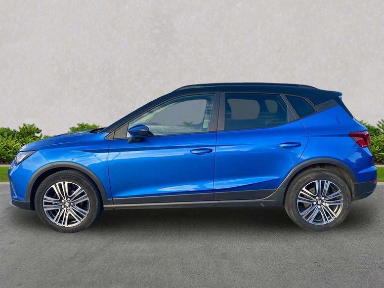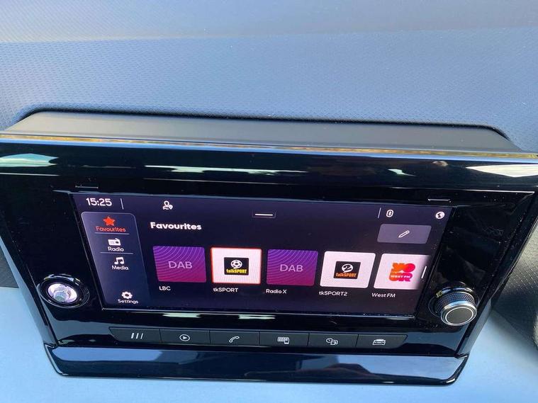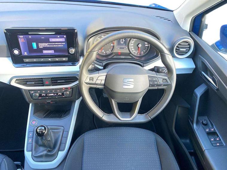 'Lights On' Reminder warning buzzer, Analogue cockpit with physical dials, Cruise control and speed limiter, Digital clock, E-call, Electric speed sensitive power steering, Full Link Smartphone Integration with Mirror Link, Apple Car Play, Google Android Auto with USB cable for Apple and Android compatibility, Lane keeping system, Low fuel warning light, Outside temperature display, Rear parking sensor, RPM counter, Seat connect with safety, service and remote, Trip computer, Wireless phone charger, Bluetooth interface for hands free and audio streaming, DAB digital radio and AM/FM radio, Media system with 8.25" colour touchscreen with USB port (type c), Steering wheel mounted audio controls, Anti theft roof antenna, Automatic activation of hazard warning lights, Black roof rails and window surrounds, Body coloured bumpers, Body coloured door handle inserts, Body coloured door mirrors, Dark tinted rear windows, Dimming rear view mirror, ECO LED automatic headlights and LED daytime running lights, Electric front/rear windows, Electrically adjustable and heated door mirrors, Hidden exhaust pipe, Licence plate lights, Protective side mouldings, Rear fog lights, Rear side wing doors, Rear spoiler, Rear window wash/wipe, Third brake light, Visible VIN plate, Windshield wiper with intermittent control and potentiometer, 2 cupholders, 3 seat bench in 2nd row, 60/40 split folding rear seat, Cloth upholstery, Double boot floor, Driver sunvisor with covered mirror + card holder, Dual zone climate control, Dust/pollen filter, Front courtesy light with front reading lights, Gear shift indicator, Grey interior roof, Height adjustable front seats, Height/reach adjustable steering column, Illuminated boot, Instrument lighting with brightness control, ISOFIX points in outer rear seats with top tether anchorage points, Leather steering wheel/gear knob/handbrake, Passenger sunvisor with vanity mirror, Single front passenger seat, Two front and three rear height adjustable headrests, Interior chrome pack - Arona, 3 point seatbelts on all rear seats, ABS, Active front headrests, Child locks on rear doors, Driver and front passenger airbags with front passenger airbag de activation, front side and curtain airbags, Electronic stability control, Emergency Brake Assist (EBA) and front assist, Front and rear seatbelt reminder, Hill hold control, Multi-Collision braking, Tiredness recognition system, Traction control, Tyre pressure monitoring system, Electronic engine immobiliser, KESSY Keyless entry and go, Locking wheel bolts, Remote central locking + deadlocks, Titan black dashboard, 17" Dynamic machined alloy wheels,