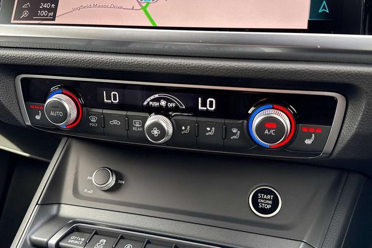 Audi connect safety and service, Audi drive select, Audi lane departure warning, Audi Virtual Cockpit - 10.25" display, Bluetooth interface, Camera based traffic sign recognition, Distraction and Fatigue warning, Legal emergency call, MMI Navigation Plus with high resolution 10.1 inch touchscreen colour display, Power operated tailgate, Progressive steering, Service interval indicator, Smartphone interface includes wireless Apple carplay/Android Auto, Start stop system with recuperation, Voice control system with natural language interaction, Sports suspension, 2 USB-C ports with charge and data functions, 6 passive loudspeakers, DAB digital radio module, Acoustic windscreen, Audi Beam uses LEDs to project the Audi logo onto the ground as you exit your Q3, Auto dimming door mirrors, Auto dimming frameless rear view mirror, Electrically folding, adjustable and heated door mirrors with integrated LED side indicators and kerb view function for passenger side, Front and rear electric windows, Front fog lights, Front underbody protection in manhattan grey paint finish, High gloss black finish B and C pillars, Honeycomb design radiator grille in matt anthracite black, LED Dynamic rear indicators, LED headlights with LED daytime running lights, LED rear lights, LED third brake light, Privacy glass dark tinted rear and rear-side windows (from B-pillar backwards), Rain and light sensors, Rear diffuser grille in grained matt black, Rear diffuser strip in matt anthracite black, Rear side wing doors, Rear underbody protection in matt black, Rear wiper, S line front and rear bumpers and side skirts in contrasting Manhattan grey paint finish, Variable front intermittent wipers, 12V socket in rear centre console, 3 seat bench in 2nd row, 40:20:40 folding with manual adjustment for 60:40 forwards/backwards position and backrest angle, Adjustable rear seat bench/backrest with centre armrest and cupholder, Black carpet mats, Black cloth headlining, Dual zone electronic climate control, Electric lumbar support, Front and rear black floor mats with contrast stitching in rock grey, Front and rear headrests, Front centre armrest, Height and reach adjustable steering wheel, Illuminated door sill trims with S logo, ISOFIX child seat mounting for front passenger with airbag deactivation and outer rear seat including top tether attachment point for outer rear seats, Luggage compartment sill protection in stainless steel, Manual front seats with height adjustment, Perforated leather gearknob, Single front passenger seat, Stainless steel pedals, Twin leather upholstery with front sport seats + S embossing, Black styling pack - Q3, Non smoking pack - Q3, 3x3 point rear seatbelts, 6 airbags - Driver, front passenger, curtain and side windows, Audi pre-sense front with pedestrain and cyclist recognition, Electrically operated child locks on rear doors, Electromechanical parking brake, Electronic stabilisation control including ABS, ASR and EDL, Front seatbelt reminder, Hill descent control, Hill hold assist, Pre sense basic, Seatbelt monitoring, Tyre pressure warning, Warning triangle and first aid kit, Anti theft wheel bolts, Immobiliser, Remote central locking, Thatcham approved category 1 anti theft alarm, Aluminium look interior elements, Detail dashboard around MMI touch colour display in glass look, black with surround in aluminium look, Leatherette door armrest, Piano black inlay,