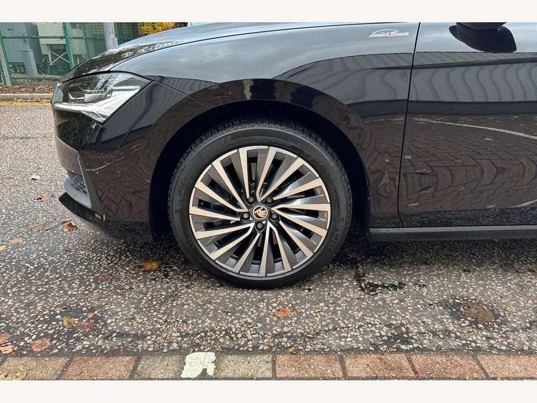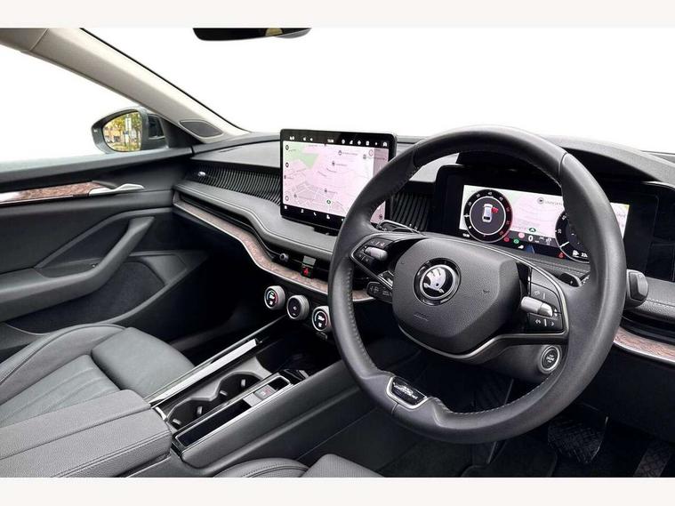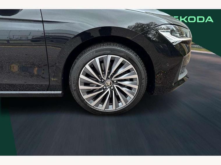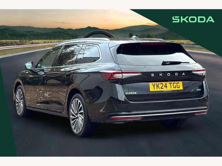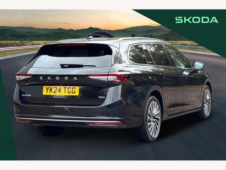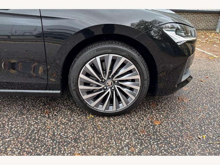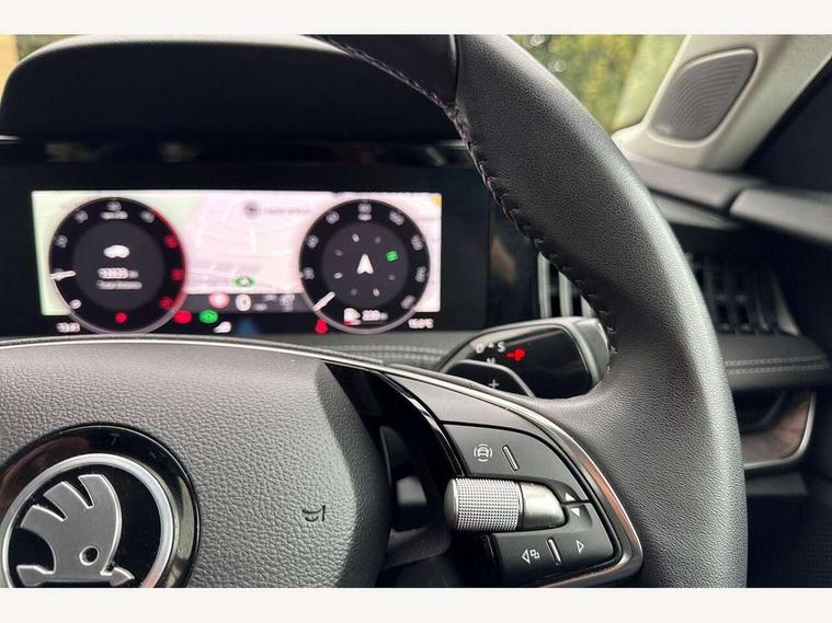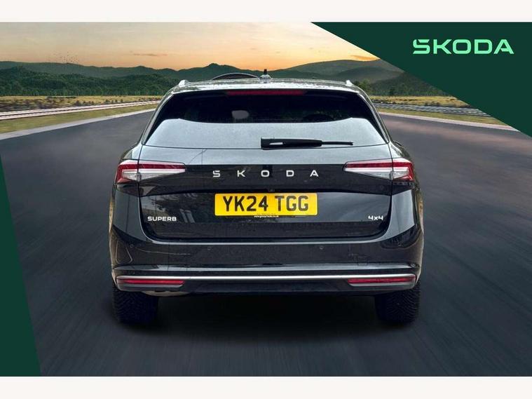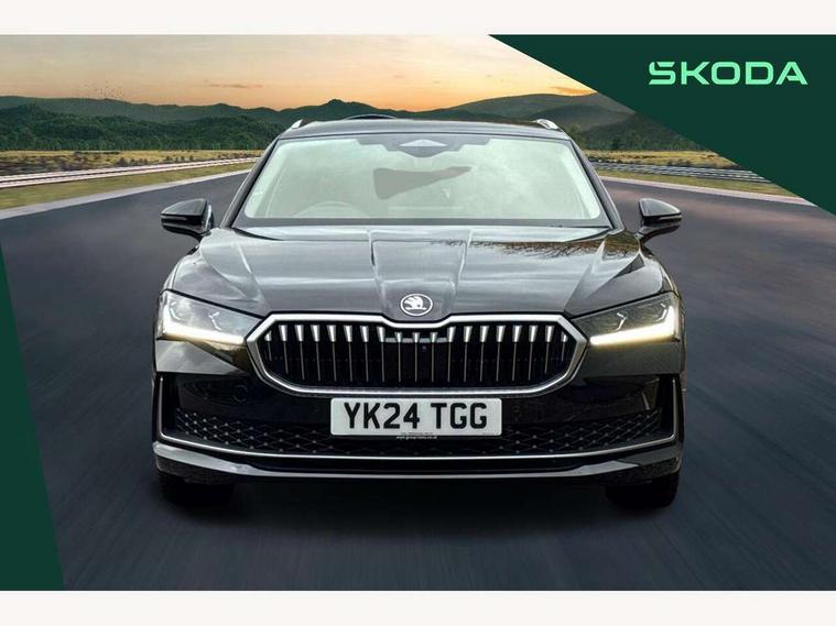 13" touchscreen display with satellite navigation, 4x USB-C ports (2x in front centre console and 2x in rear) (45W), Adaptive cruise control with speed assist, lane assist plus and traffic tram assist, Blind spot detection with door exit warning, Bluetooth system, CareConnect and Emergency Call, Driver fatigue sensor, Electrically operated boot with virtual pedal, Front assist with extended predictive pedestrian protection, Front cross traffic assist, PAS, Progressive dynamic steering, Rear view camera with washer, Stop/start engine system, Traffic sign recognition, Turn assist with evasive assistance, Virtual Cockpit - 10.25" digital display, Voice control system, Wireless charging for one smartphone (15W) with cooling function, Wireless smartlink apple carplay, SmartLink+ android auto, Dynamic chassis control plus with progressive dynamic steering, Canton sound system - 14+1 speaker, DAB Digital radio, Display cleaner, FM radio connection, Web radio connection, 3rd brake light, Acoustic side windows and interior noise suppression, Backdrop lighting, Body colour door handles, Body coloured door mirrors, Chrome roof rails, Chrome window surround, Dark chrome grille surround with chorme rib elements and plus dark chrome rear diffuser strip, Dynamic range control with poor weather light and integrated fog light, Electrically adjustable, heated, folding and driver side auto-dimming door mirrors with memory function, integrated indicators and logo projection, Frameless auto-dimming rear view mirror with USB-C, Front windscreen with heat-insulating glass, Light assist with High beam control, Light assistant (coming/leaving home/tunnel light), Privacy glass, Rear fog lights (x2), Rear side wing doors, Rear spoiler, Rear windscreen wiper, Tow bar preparation, Windscreen wipers with rain sensor, 12V socket 1x centre console 1x boot, 12V socket and 2x cargo elements in boot, 14-way electrically adjustable, memory, front seats with 4-way pneumatic lumbar support, and extendable thigh support with smart comfort entry aid, 2 spoke heated multifunction steering wheel with DSG paddles, 3 seat bench in 2nd row, 4x foldable bag hooks in boot, 60:40 Split folding rear seats, Advanced massage function for front seats, Bottle holders in the front doors 1.5 litre bottle and rear 1.5 litre bottle, Cup holder in front with easy open mat, Front and rear footwell illumination, Front armrest with storage box, Front sports comfort seats, Heated and ventilated front seats, Height adjustable front and rear head restraints, Height adjustable front passenger seat, Ice scraper, Illuminated glovebox, Interior lights with control switches, Isofix child seat fittings on outer rear seats, LED front and rear reading lights, Multi colour ambient lighting, Single front passenger seat, Storage pockets on back of front seats, Sun visors with illuminated vanity mirrors, Ticket holder on A Pillar, Tri zone climate control, Umbrella in driver's door, Light and view package - Superb, Parking package - Superb, Transport package - Superb Estate, Winter package - Superb, 3 rear seatbelts, 8 Airbags - Front driver and passenger, front side driver and passenger, centre, curtain front and rear, drivers knee, Crew protect assist, Driver and passenger seatbelts with warning light, Electronic parking brake, ESC including ABS, EBV, MSR, ASR, EDS, HBA, DSR, RBS, CBC, multi-collision brake (MKB) and Auto hold, Hill hold assist, Power operated child lock in rear doors, Alarm with interior monitoring tilt sensor and back up horn, Backrest remote release from trunk, Electronic engine immobiliser, Keyless start/stop, Remote central locking with SAFE system, Third key, Walk away locking, Decorative front door sills, 18" Steel space saving spare wheel,