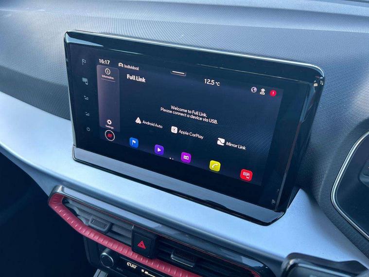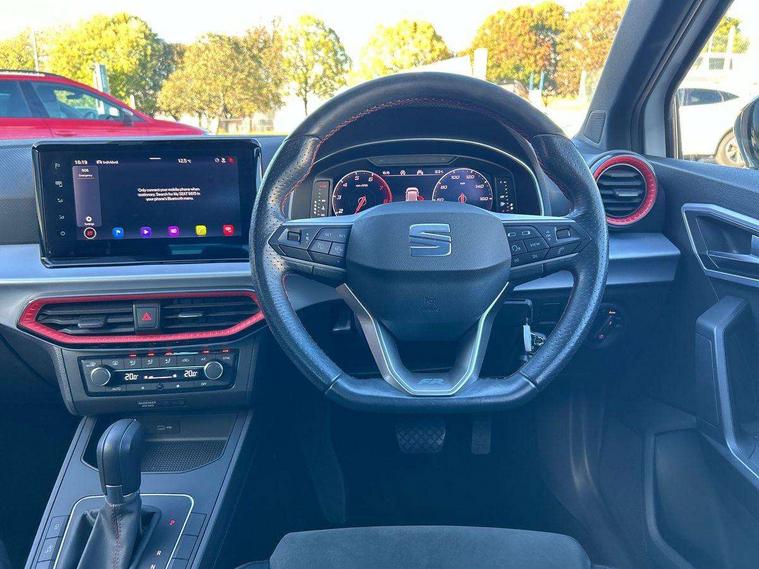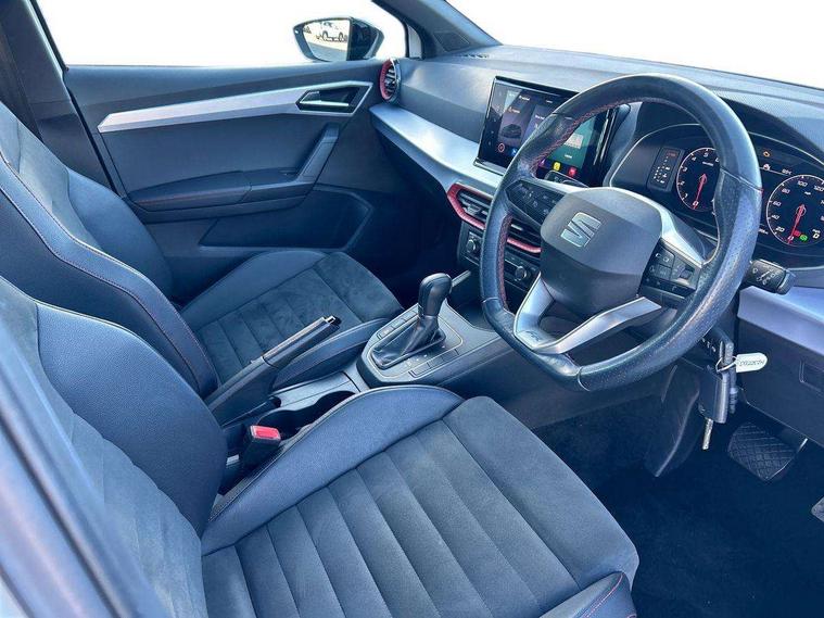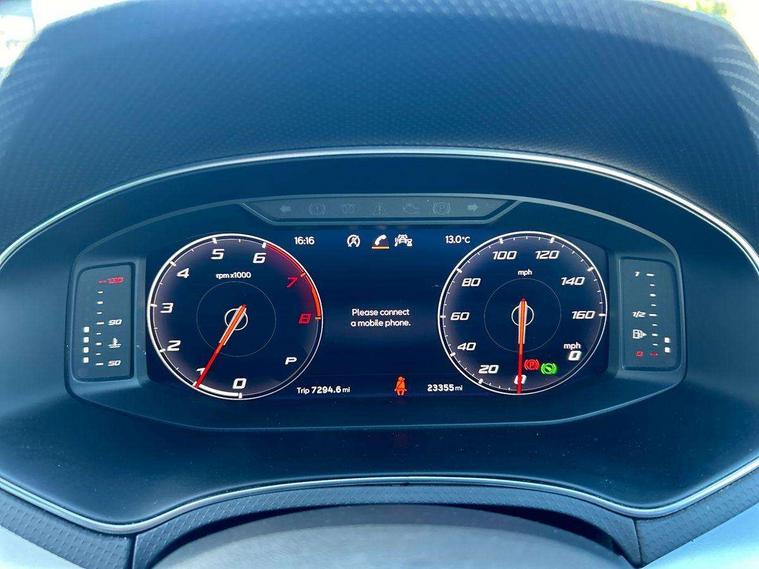 18" Performance machined alloy wheels in black and grey, Electronic engine immobiliser, Locking wheel bolts, Perimeter alarm and interior monitoring with backup horn and tow away protection, Remote central locking + deadlocks, Auxiliary input socket, Radio/MP3 player, SD card slot, Steering wheel mounted controls, 3 point seatbelts on all 3 rear seats, ABS, Active front headrests, Child locks on rear doors, Electronic stability control, Energy recovery system, Front assist forward collision warning and autonomous emergency braking, Front driver and passenger side airbags with curtain airbag and front passenger airbag deactivation, Hill hold control, Multi-Collision braking, Seat belt reminder for front and rear seats, Tiredness recognition system, Tyre pressure monitoring system, Anti theft roof antenna, Auto dimming rear view mirror, Automatic rain sensing wipers, Black door mirrors, Body colour bumpers, Body colour door handles, Brilliant black window surrounds, Dark tinted rear windows, Electric adjustable/heated/folding door mirrors, Electric front windows, Electric headlight adjustment, Electric rear windows, Front/rear fog lights, FULL LED automatic headlights with dynamic headlight range control, coming and leaving home, LED daytime running lights, LED tail lights, Rear side wing doors, Rear spoiler with FR twin exhausts, Rear wiper, Third brake light, 3 seat bench in 2nd row, 60/40 split folding rear seat, Ambient interior lighting, Chrome detailing and black headlining, Comfort seats, Dual zone climate control with combination filter, Front courtesy lights, Front cupholders x 2, Front reading lights, Gear shift indicator, Glovebox, Height adjustable front and rear headrests (five), Height adjustable front seats, Height/reach adjust steering wheel, Illuminated air vent surrounds, Illuminated boot, Instrument lighting with brightness control, Isofix, Leather multifunction flat bottomed sports steering wheel with gearshift paddles, Microsuede cloth upholstery, Passenger sunvisor, Single front passenger seat, Storage pockets on back of front seats, Sunvisors with mirror and driver side card holder, 'Lights On' Reminder warning buzzer, 9.2" touchscreen navigation system with type C USB socket, Voice control and DAB/AM/FM radio, Auto start and stop system, Bluetooth audio streaming with handsfree system, Digital clock, Digital cockpit, E-call, Full link smartphone integration with mirror link, wireless apple carplay, Google android auto + USB Type C cable for apple and android devices, Lane assist, Low fuel warning light, Outside temperature gauge, Power Steering, Seat connect with safety, serivice, remote and online, SEAT drive profiles and ECO function, SEAT logo boot release, Speed limiter, Trip computer, Sports suspension,
