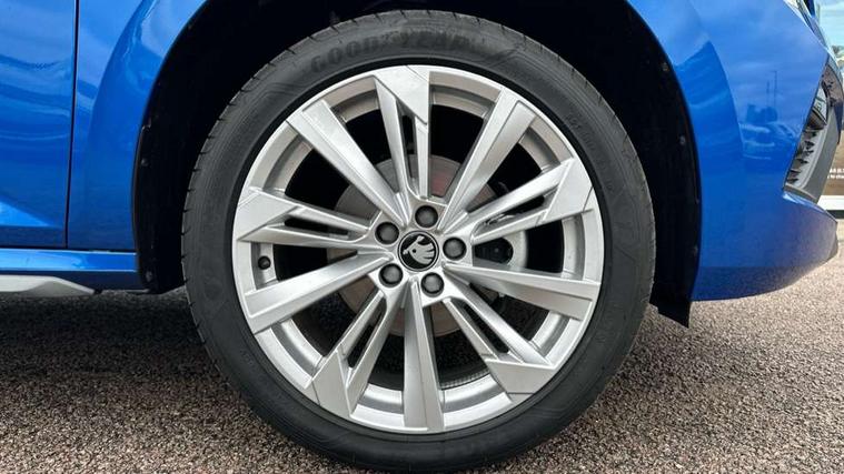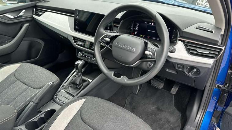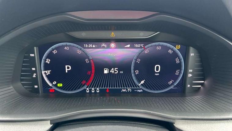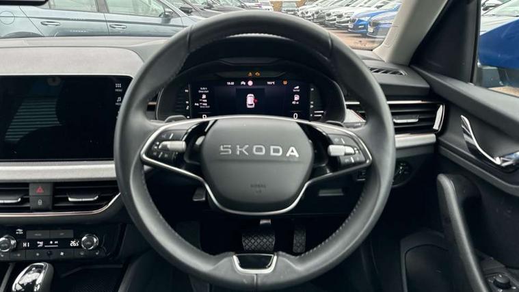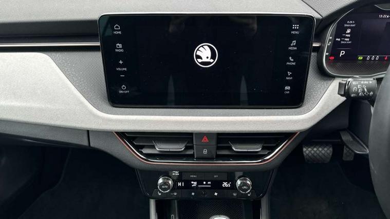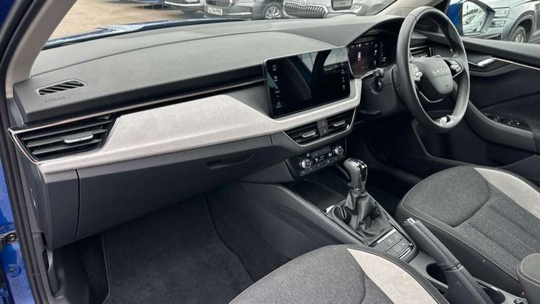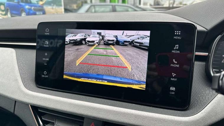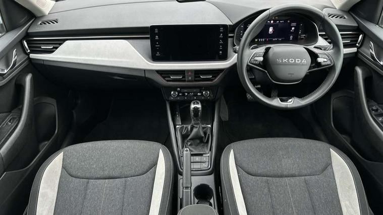 Advanced driver attention and drowsiness monitor, Bluetooth system, E-call, Front assist system, PAS, Rear parking sensors, Rear view camera, Service indicator, Speed limiter, Traffic sign recognition, Virtual cockpit with 10.25" display, Voice control system, Wireless smartlink, 4 USB C ports, 8 Speakers, 9.2" Skoda navigation display, DAB Digital radio, Auto dimming rear view mirror, Automatic headlight control with coming home and leaving home feature, Body colour bumpers, Body colour door mirrors and handles, Chrome grille surround, Chrome roof rails with chrome window surround, Front and rear electric windows, Heated rear window, LED daytime running lights, LED high beam, LED low beam, LED third brake light, Light sensors, Privacy glass, Rear side wing doors, Rear wiper, Ticket holder inside windscreen, 12V socket in luggage compartment, 3 seat bench in 2nd row, Accent black door inserts, Ambient lighting in white/red, Cargo elements, Chrome inner door handles, Copper hotstamping, Driver and passenger sun visors with vanity mirror, Dual zone climate control, Front and rear roof lights, Front centre armrest, Front head restraints, Glove compartment with illumination, Height adjustable driver seat, Height adjustable front passenger seat, Ice scraper, Inner circulation control with pollen filter, ISOFIX on front passenger seat, Isofix preparation for back seats, Leather gearknob and handbrake lever, Lodge cloth upholstery, Manual lumbar support for front seats, Net package and top tether hooks in boot space, Net under rear shelf, Overhead glasses storage compartment, Pocket on the back of both front seats include mobile phone pockets, Rake/reach adjustable steering wheel, Reading lights, Rear centre armrests, Single front passenger seat, Suedia grey decor inserts, Textile floor mats, Third rear headrest, Top tether for front passenger seat, Umbrella in driver's door, Convenience pack - Kamiq, 3x3 point rear seatbelts, Airbags - driver and front passenger, Disc brakes, ESP, Extended and predictive pedestrian/cyclist protection, Front passenger airbag deactivation switch, Front side airbags with curtain airbags, Hill hold control, Manual leather parking brake, Manual rear child locks, One tone horn, Seatbelt reminder for driver an co-driver, Traction control, Tyre pressure monitor, Anti-theft alarm system with interior monitoring, backup horn, towing protection and remote central locking with SAFE system, Anti-theft wheel bolts, Electronic engine immobilizer,