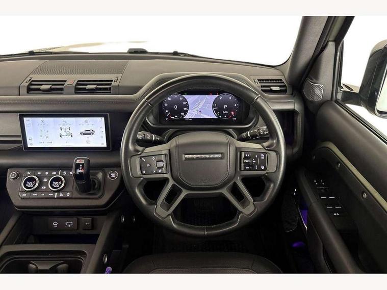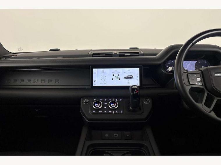 360 degree parking aid, 3D Surround Camera with 360 View, 180 Rear View, Front Traffic Detection, Forward Vehicle Guidance, Tow Hitch Assist and clear sight Ground View, Adaptive cruise control, Android Auto, Apple CarPlay, Assisted tailgate with soft close, Blind spot assist, Bluetooth system, Brake pad wear indicator, Clear exit monitor, Connected navigation pro, Driver condition monitor, Electric power assisted steering (EPAS), Interactive driver display, Lane keep assist, Push button start, Rear traffic monitor, Traffic sign recognition with adaptive speed limiter, Trip computer, Wade Sensing, 8 speed automatic transmission, All wheel drive system, Twin speed transfer box, DAB Radio (Digital Audio Broadcasting), Pivi pro connected, Automatic headlight levelling, Automatic headlights, Black exposed rear recovery eyes, Centre high mounted stop light, Electric heated/power fold door mirrors with approach lights and auto dimming driver side, Electric windows with one touch open/close and anti-trap, Follow me home lighting, Heated rear window with timer, Heated windscreen, LED tail lights, Privacy glass, Puddle lights, Rain sensing windscreen wipers, Rear fog lights, Rear side wing doors, Rear wiper, Side hinged tailgate, Trailer stability assist, X-Dynamic badge, 12V power socket in loadspace, 3 seat bench in 2nd row, Alpine lights, Durable rubber cabin flooring, Durable rubber loadspace flooring, Footwell lights, Front passenger isofix child seat attachment, Loadspace cover, Loadspace Hook, Multifunction steering wheel, Overhead stowage for sunglasses, Premium cabin lighting, Rear headrests, Rear ISOFIX, Rear reading lights, Single front passenger seat, Standard seat configuration, Storage glovebox, Sunvisors with illuminated vanity mirrors, Online pack with data plan - Defender, 5 x 3 point seatbelts, ABS, Brake hold function, Cornering brake control (CBC), Customer configurable autolock, DSC - Dynamic Stability Control, EBD - Electronic brakeforce distribution, Electric parking brake (EPB), Emergency brake assist, Emergency braking, ESP + traction control, Front airbags with passenger seat occupant detector, HDC - Hill descent control, Hill launch assist, Low traction launch, Power operated child locks, Remote for (e-Call, Optimised assistance call, InControl app, Climate, beep and flash and door), RSC - Roll stability control, Seat belt reminder, TPMS (Tyre pressure monitoring system), Alarm, Immobiliser, Intrusion sensor, Keyless entry, Locking wheel nuts,