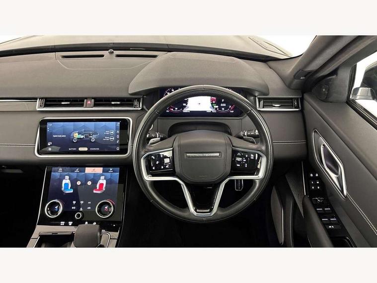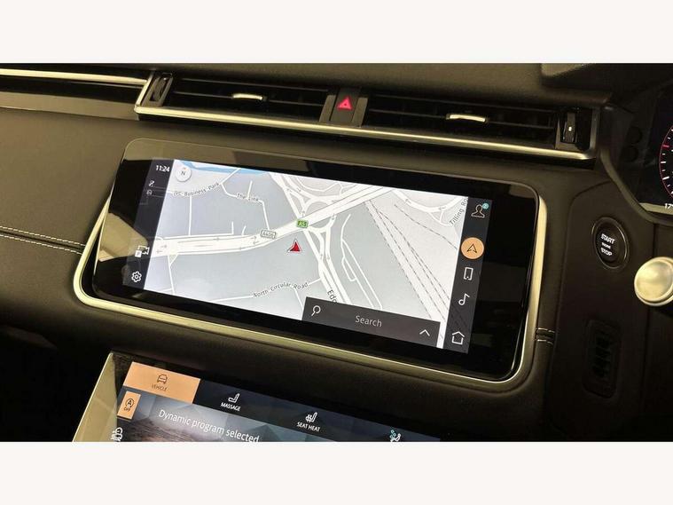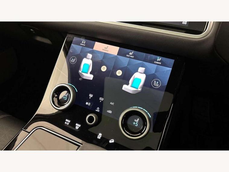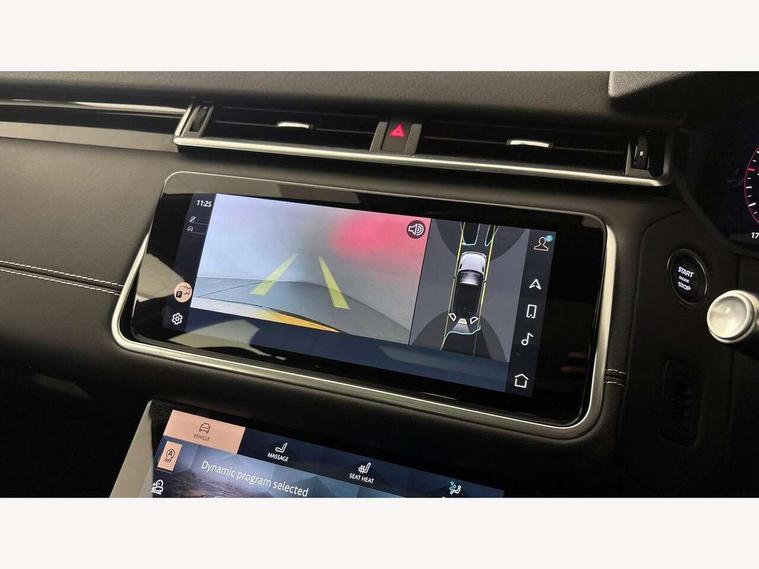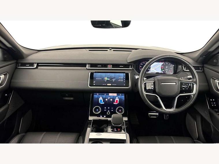 10" deployable touchscreen, Adaptive cruise control with steering assist, Android Auto, Apple car play, Blind spot assist, Bluetooth connectivity, Brake pad wear indicator warning light, Driver condition monitor, eCall emergency call system, InControl remote, Interactive Driver display instrument cluster, Land Rover InControl apps, Lane keep assist, Pivi pro with connected navigation, Push button start, Rear collision monitor, Rear traffic monitor, Service indicator, Speed proportional electronic power assisted steering (EPAS), Traffic sign recognition with adaptive speed limiter, Trip computer, Voice control system, 8 speed automatic transmission, AC/DC charging, Adaptive dynamics, All terrain progress control, Coil suspension system, Home charging cable, Open differential with torque vectoring by braking, Public charging cable, Single speed transfer box, Digital Audio Broadcast radio-DAB, Steering wheel mounted controls, Acoustic laminated windscreen, Adaptive front lighting system, Auto dimming interior rear view mirror, Automatic headlamp levelling, Automatic headlights, Body coloured bumpers, Boot protection plate, Electric heated/power fold door mirrors with approach lights and auto dimming driver side, Electric windows with one touch open/close and anti trap, Flush deployable exterior door handles, Follow me home headlights, Heated rear window with timer, Heated washer jets, Heated windscreen, LED 3rd brake light, Metal load space scuff plates, Rain sensor windscreen wipers, Rear animated directional indicators, Rear fog lights, Rear side wing doors, Rear wash/wipe, Tailgate/boot lid spoiler, Trailer stability assist, Velar and R-dynamic badge, 3 seat bench in 2nd row, Ambient lighting, Bright metal pedals, Driver/passenger sunvisors with illuminated vanity mirrors, Electric adjustable steering column, Isofix system on outer rear seats, Loadspace cover, Overhead lighting console, Overhead stowage for sunglasses, Passive front headrests, Rear air vents, Rear centre headrest, Satin chrome gearshift paddles, Single front passenger seat, Twin front cupholders, Twin sliding front centre armrest, Online pack with data plan - Velar, 380mm front brakes and 325mm rear brakes, 3x3 point rear seatbelts, Anti-lock braking system (ABS), Cornering brake control, Curtain airbags, Customer configurable autolock, Door side intrusion beams, Driver airbag, DSC - Dynamic Stability Control, Electronic brake force distribution, Electronic parking brake, Electronic traction control, Emergency brake assist, Emergency braking, Front and rear seatbelt reminder, Hill descent control, Hill launch assist, Low traction launch, Passenger airbag, Power operated child locks, Rear airbags, Roll stability control, Side airbags, Tyre pressure monitoring system, Unpainted brake calipers, Global lock and unlock switch on driver door, Immobiliser, Intrusion sensor, Keyless entry, Lock only switch on front passenger door, Locking wheel nuts, Perimetric alarm, Remote central locking,