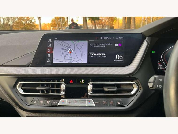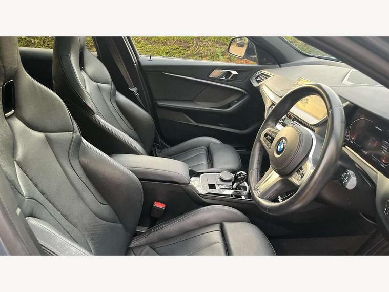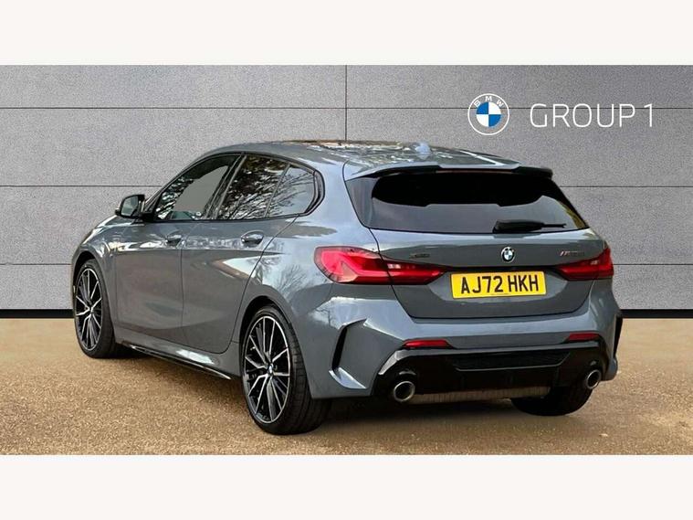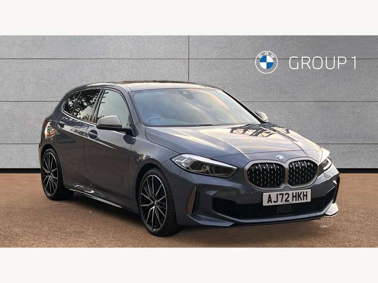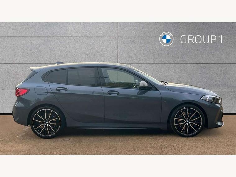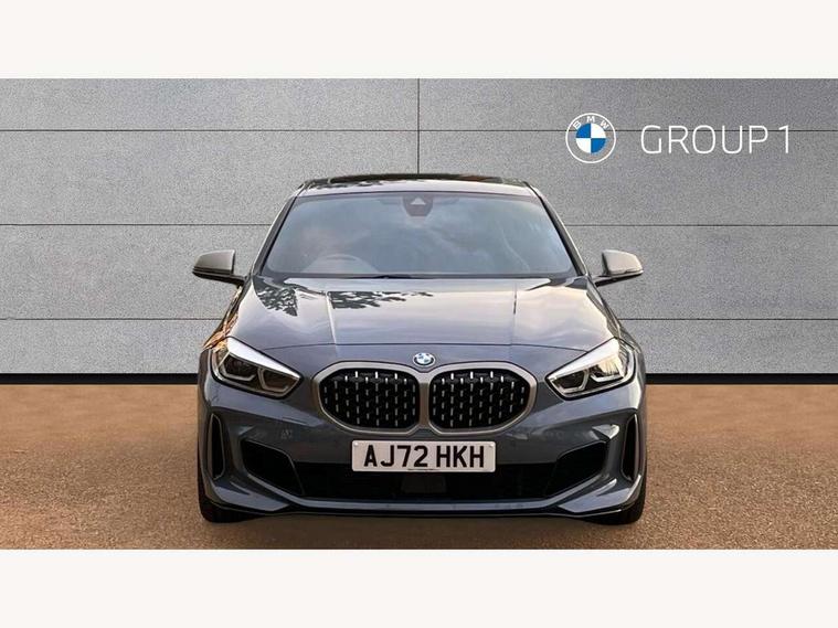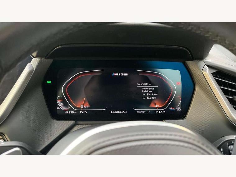 Active guard plus, Attentiveness assist, BMW ConnectedDrive online services, BMW Teleservices, Check Control warning system for monitoring of lights and door/luggage compartment open warning, Cruise control with brake assist, Eco pro mode, Electric power steering, Electro hydraulically controlled multi-plate clutch transfers drive to rear axle and with power take-off device located on the front differential., Energy efficient operating strategy, Front axle single joint with specific axle kinematics to minimise drive influences on steering + provide increased rigidity agile driving behaviour, Gearshift time display in manual mode, Integrated owners handbook, Lane departure warning system, M Sports steering with M135i xDrive specific settings, Oil sensor for level and grade, On board computer, Optimum shift indicator, Personal Profile, Pull away assistant, Rigidly mounted rear subframe - Multi link construction with separate spring / damper configuration and excellent driving characteristics, Speed limit Info including no-overtaking indicator, Speed limiter, Sporty fast gear shifting in sport mode, Aluminium lightweight construction, Anti roll bar front and rear, Balancer shaft, Double VANOS, Drive Performance Control, Eight speed sport automatic transmission with gearshift paddle switches, Electronic differential lock, Electronic selector lever, Engine cover with M performance designation, High precision injection, Larger fuel tank capacity (50 litres), Launch control, M135i specific heavily de-throttled engine intake air guide, M135i specific high-performance cooling package, M135i specific larger turbocharger with integrated divert-air valve, Petrol Particulate Filter, Twin tube gas filled shock absorbers with degressive characteristic curve, VALVETRONIC engine management, Variable, stepless and infinitely adjustable distribution of drive torque between the front and rear axles, xDrive intelligent all wheel drive with M135i specific reinforced components, DAB Digital radio, Auto dimming rear view mirror, Automatic headlight beam throw control, Automatic windscreen wipers and automatic headlight, Body colour door handles, Body colour roof trims, Cerium grey exterior mirror caps, Direction indicator side lights in exterior mirrors, Exhaust tailpipe, Cerium Grey with bevelled finish - twin, round 100mm, left and right split, Fading support, Folding side mirrors with auto dimming/folding wing mirrors with auto dimming, Follow me home headlights, Front and rear bumper system with replaceable deformation elements, Front and rear electric windows with open and close fingertip control, anti trap facility and comfort closing, Front door sill finishers with M135i designation, Green tinted heat protection glazing, Heated, electrically adjustable exterior mirror aspheric on driver side, convex on passenger side, High gloss shadowline window frame, Recess cover mirror frames and B/C pillar embelisher trim, High level third brake light, Integrated front windscreen with washer jets, Kidney grille frame in Cerium Grey with Mesh design, LED daytime running lights, LED eyebrow turn indicators, LED front fog lights, Lightweight engineering, M logo designation side in cerium grey, M Performance exhaust system with valve control and minimised exhaust back pressure, M Performance specific setup, M Sport spoiler, Matt black air guide grilles, Matt black wheel arch trim, Model designation on electric bootlid includes xDrive designation for M135i xDrive, Nearside reverse light in rear light cluster, Preparation for high beam assistant, Rear fog lights, Rear side wing doors, Rear window wiper, Reinforced crank drive, new pistons and adapted con rods, Shark fin antenna, Trailer stabilisation logic, Visible VIN plate, Welcome lighting, 12V power socket in front centre console with blanking plug, 3 rear seat head restraints, 3 seat bench in 2nd row, 3 spoke sports leather steering wheel with black leather and stitching, pearl chrome decorative finish, specific M Badge, Anthracite headlining, Black boot net with lashing eyes, Cargo function on 2nd seat row, Child seat ISOFIX attachment for two outer rear seats and front passenger seat with anchorage points, Conditioned based service, Driver and front passenger seat heating, Folding rear clothes hook, Four grab handles integrated in roof lining, Front and rear door pockets with bottle holders, Front and rear side armrest integrated into door trim, Front armrest, Front integrated head restraints, Front M sports seats, Glove compartment, Luggage compartment for bag hooks on left and right, foldable luggage compartment liner and four lashing eyelets, Manual adjust steering wheel, Multi-function controls for steering wheel, Single front passenger seat, Storage compartment in centre console, Sun visors with vanity mirrors and insert tab, Two front centre console cupholders, Two zone automatic air conditioning, Velour floor mats, Additional interior lighting pack - 1 Series M135i, BMW live cockpit professional pack- 1 Series, Connected pack professional - 1 Series, Interior lights pack - 1 Series, M Sport exterior styling aerodynamics pack - 1 Series 135i, 2 tone horn, 3 point seatbelts on all seats, front pyrotechnic belt tensioners, stopper and belt force limiters, rear coded belt buckles, Airbags - Front driver/passenger, front and rear curtain head protection, front side, manual deactivation of front passenger airbag, Anti lock braking system (ABS) with brake assist, BMW emergency call, Brake drying, Braking readiness, Child proof locking system in rear door, City braking function, Comfort modes, Cornering brake control, Crash sensor activating central locking release, hazard warning lights, fuel cut off, interior lighting + activation of safety battery terminal clamp, Driver and front passenger seat belt security check, Dynamic stability control + (DSC+), Dynamic Traction Control - DTC, Electrically operated hand brake including automatic hold function, Front and rear