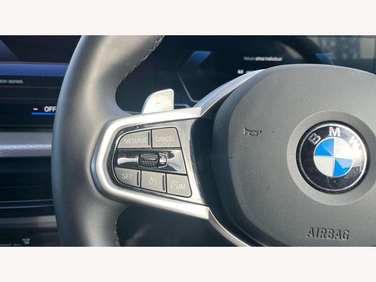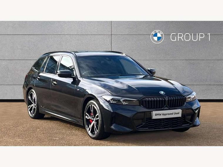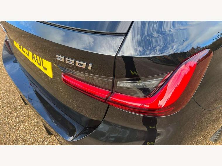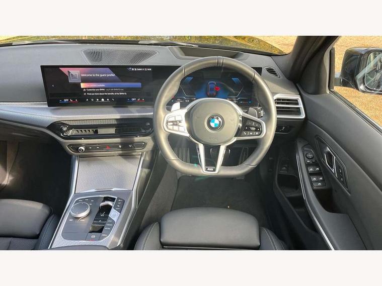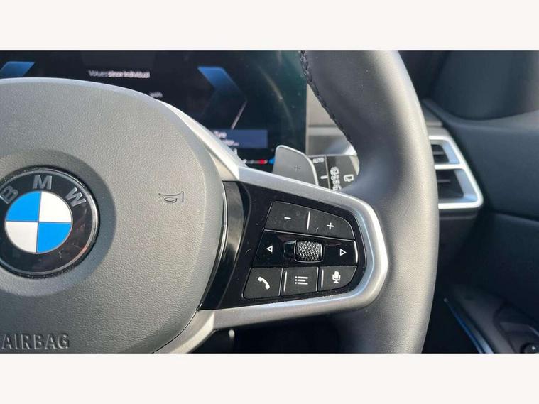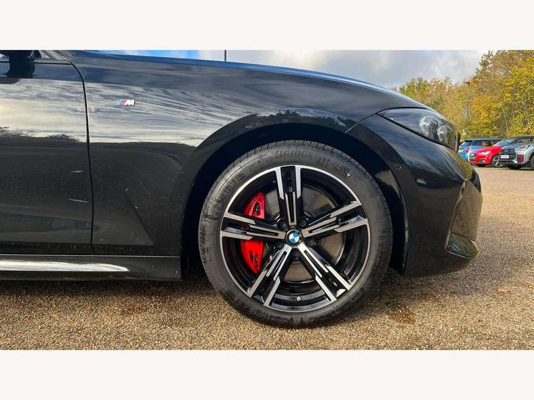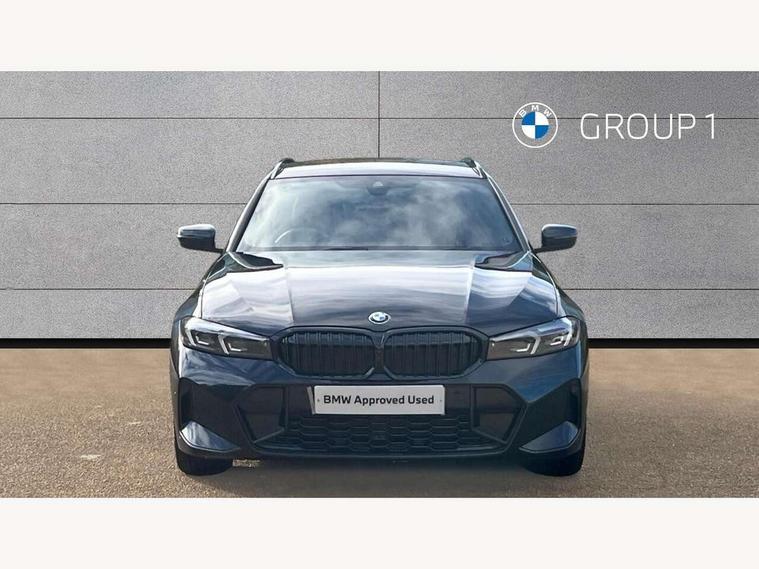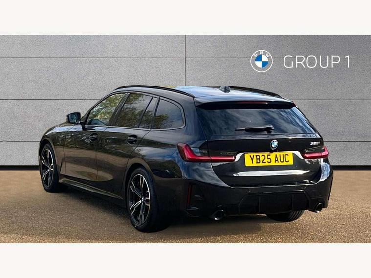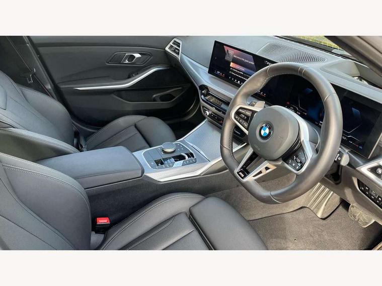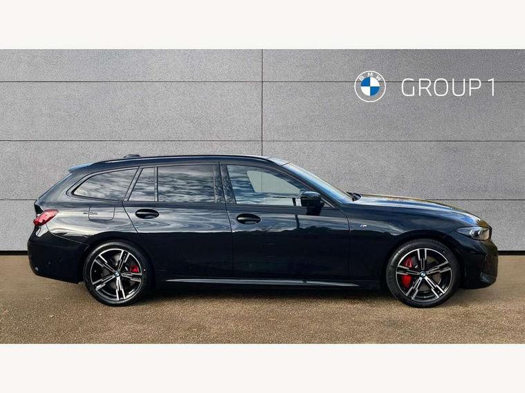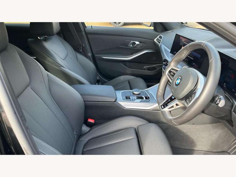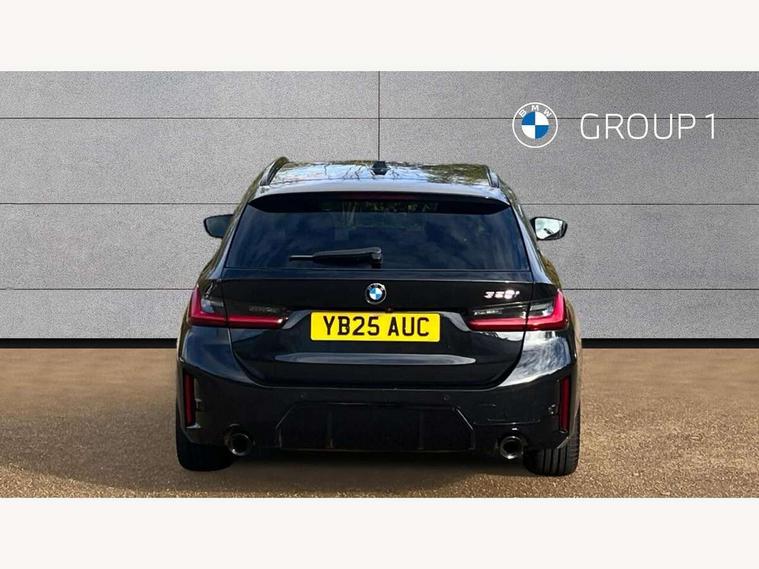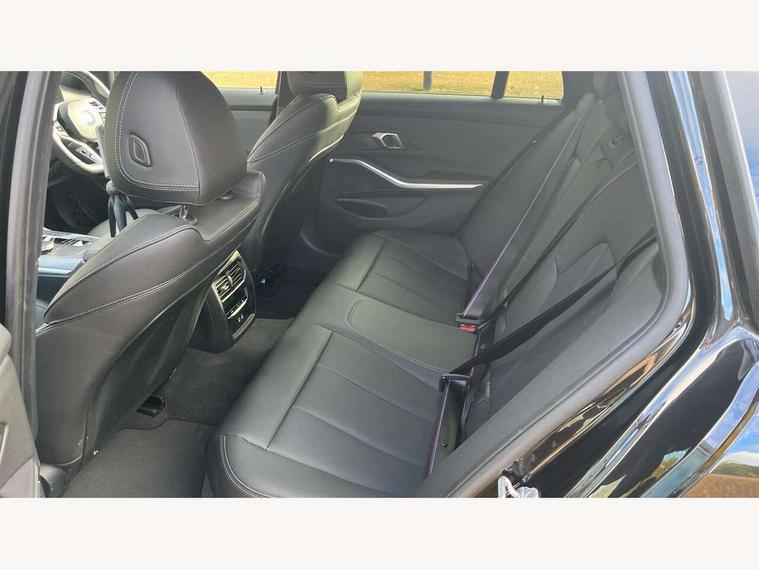 Active guard plus, Attentiveness assist, Automatic Start/stop button, Bluetooth Wi-Fi interface, BMW iDrive, BMW Teleservices, ConnectedDrive Services - last state call, Electric bootlid, Live cockpit plus with Navigation + 12.3" instrument display + 14.9" display, Intelligent voice assist, 2 USB, 4G LTE connect, Oil sensor for level and grade, Personal e-SIM, Shifting point display, Variable sport steering, Double joint spring strut front axle, Fuel tank breather system, Steptronic Sport automatic transmission with steering wheel mounted gearshift paddles launch control and xtreme drive lever control, DAB tuner, 3rd brake light, Auto dimming rear view mirror, Automatic headlight beam throw control with load dependent regulating reaction, dynamic compensation of braking dive and acceleration squat, Bi-LED Low and high beam headlights, BMW emblem, engine compartment lid and tailgate, Body colour roof fin, Door sill strips, Electric windows - front and rear, with open/close fingertip control, anti-trap facility and comfort closing, Fading support, Follow me home headlight function, Front and rear bumper system with replaceable deformation elements, Front apron plastic in body colour, Fuel filler flap - right rear in body colour, Heat protection glazing on front windows and windscreen, Heated washer jets, High gloss chrome kidney frame with high gloss black kidney struts, High gloss shadow line roof rails, LED daytime running lights, LED rear lights, LED turn indicator, Licence plate panel integrated into front bumper and tailgate, M high gloss shadow line exterior trim, Matt black B-pillar finsher, Matt black window recess cover, One piece front bumper cover including towing eye cover in body colour, Rain sensor with automatic headlight activation, Rear side wing doors, Rear wiper, Reversing lights, Side frame decorative moulding black matt, Trailer stabilisation logic, Visible exhaust tailpipe finisher, Welcome lights in interior and door handle area, 12V power socket in front storage compartment, 2 front cupholder in centre console with clamping elements and matt black inlay, 3 seat bench in 2nd row, 3 spoke M Sport multifunction flat bottom leather steering wheel, 3 zone automatic air conditioning, 40:20:40 split folding rear seat with loading system, Anthracite headlining, Armrest integrated in front and rear door trim + front centre console armrest, BMW ID, Cruise control operation in steering wheel, Driving experience mode switch, Folding rear centre armrest with 2 cupholders, Front and rear headrests, Front and rear velour floor mats, Front reading light, Heated front seats, Height adjustable mechanically and infinitely variable steering column, Illuminated armrest storage compartment, Illuminated glove compartment, Illuminated luggage compartment, Lashing eyelets in luggage compartment, Single front passenger seat, Sunvisors with illuminated vanity mirrors and ticket pocket, Toolkit located in luggage compartment, Connected pack professional - 3 Series Saloon/Touring, Interior and exterior mirror pack - 3 Series Touring/Saloon, M sport exterior styling pack - 3 Series Saloon/Touring, Parking assistant pack - 3 Series, 3x3 point rear seatbelts, BMW emergency call, Child locks on rear doors, Crash sensor activating of airbags, Unlocking doors, hazard warning lights, interior light, safety battery terminal, Drive-off assistant, Driver and front passenger with seat occupancy detection for driver's and passenger side, Driver and passenger side airbags, body protection at side and airbags deploy from seat backrests, Dry braking, Dynamic brake control, Dynamic stability control + (DSC+) - Anti-lock Braking System (ABS) with brake assist and cornering brake control + Automatic Stability Control (ASC), Dynamic Traction Control - DTC, Electric parking brake including automatic hold function and automatic release of the parking brake when driving off, Electronic differential lock control (EDLC), Front airbag deactivation, Front airbags for driver and front passenger, Head airbags in 1st and 2nd row, head protection at side, curtain airbags open from headliner above 1st and 2nd row, Plastic fuel tank, Side impact protection, Tyre pressure sensors, Ventilated front and rear disc brakes, Warning triangle and first aid kit, Alarm system, Centre lock switch, Closing system with central locking, Electronic vehicle immobiliser, Locking wheel bolts,