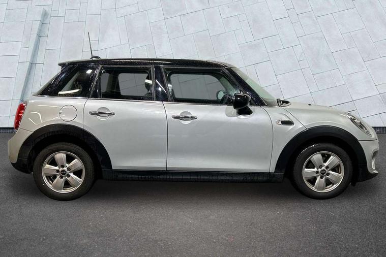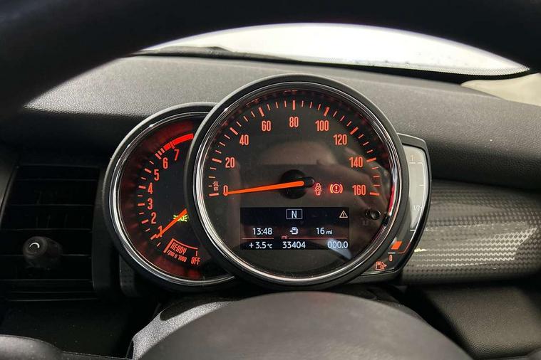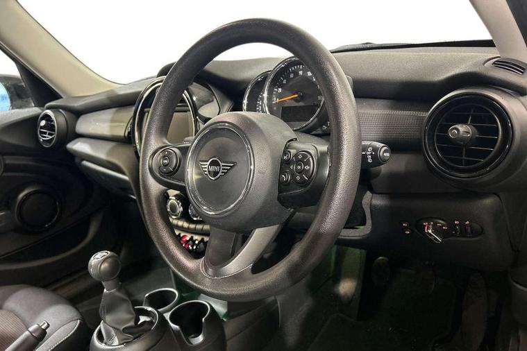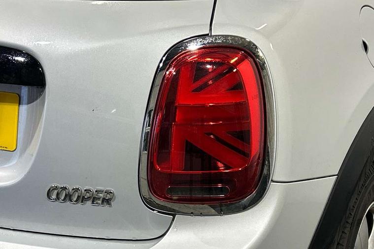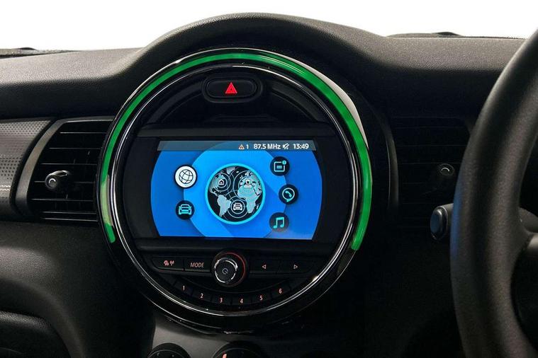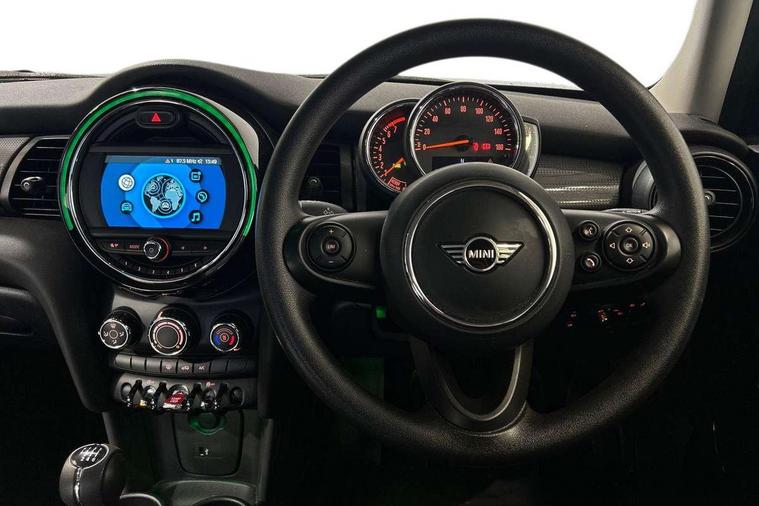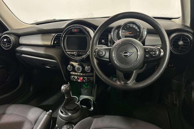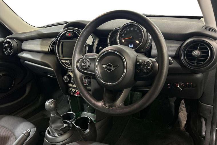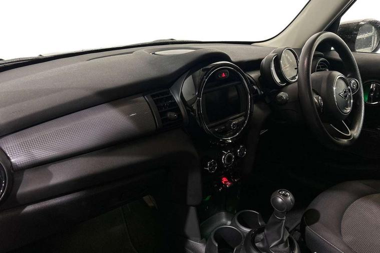 Automatic start/stop function with brake energy recuperation, Compatible mobile phone bluetooth with audio streaming, Electro-mechanical speed dependant steering assistance, Instrument cluster, Mini E-call, MINI TeleServices, On board computer, Service interval indicator, Double Vanos system, Fully variable valve control, Gear change indicator display, High precision injection, 6.5" touchscreen with LED ring, FM tuner and DAB digital radio, Automatic headlight activation switch, Body colour fuel filler cap, Chrome border high gloss black slats radiator grille, Dynamic brake lights, Electric front+rear windows, Heated rear window, Heated windscreen washer jets, LED headlight with closed ring and daytime driving lights, Left exhaust tailpipe with chrome finisher, Metal door sill strips with MINI imprint, Model logo Cooper on right of tailgate, Rain sensor window wipers, Rear fog lights, Rear LED lights with union jack design, Rear window wiper, Side scuttle panel with integrated indicator, Sun/heat protection glass, White indicator lenses, 12V Accessory socket in centre console, 4 lashing eyes in luggage compartment, 60/40 split folding rear seat, Carbon Black colour line, knee roll and door armrests, Chrome interior highlights, Colour line - Carbon black, Cupholders, Front and rear head restraints, Front and rear isofix with front passenger airbag deactivation, Glove compartment, Height and length steering column adjustment, Interior lighting with 12 basic colours selectable via toggle switch in roof, Leather gearshift lever and handbrake gaiters, LED reading lights, vanity mirror lights, front foot well light and spotlight on front seats, Manual air conditioning, Mechanical seat adjustment, driver seat height adjust, forward/back and front seats backrest, Mini logo projection on floor from drivers exterior mirror, Multifunction steering wheel, Satellite grey headlining, Storage compartments in doors, Sunvisors with vanity mirrors, 3 point seatbelts on all five seats, 6 Airbags - front, side, head and seat belt tensioners, Anti-lock braking system (ABS), DSC - Dynamic Stability Control, Front and rear disc brakes, Hill start assist, Single tone fanfare horn, Tyre pressure monitoring system, Alarm system with tilt sensor, monitoring doors, bonnet interior and tailgate, Electronic vehicle immobiliser, Start/stop toggle with keyless go, Tool kit, Tyre repair kit,