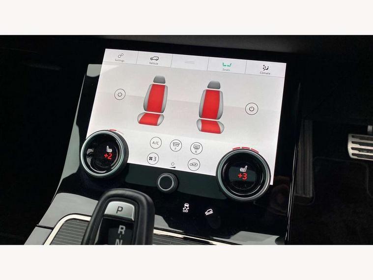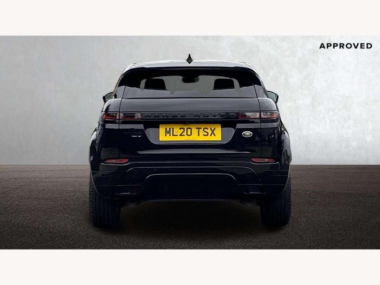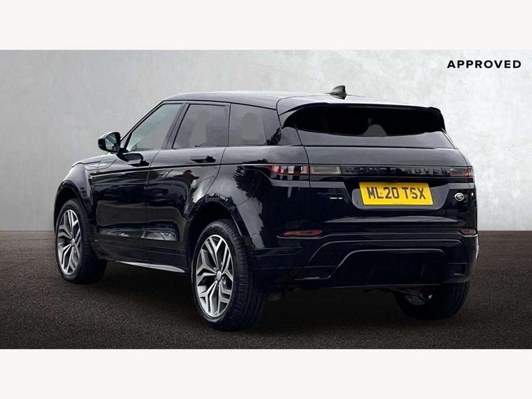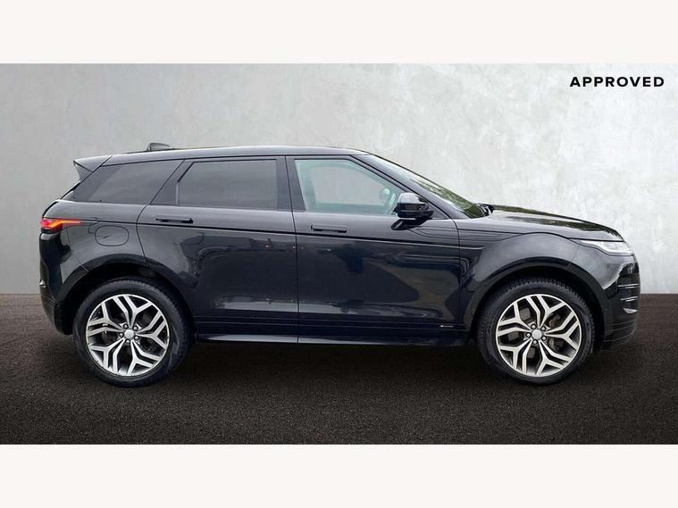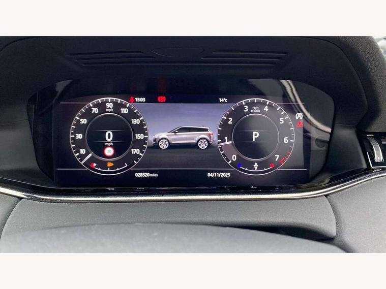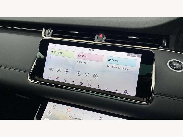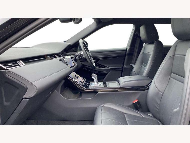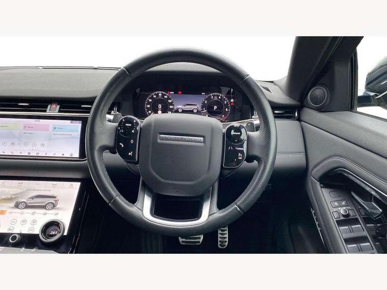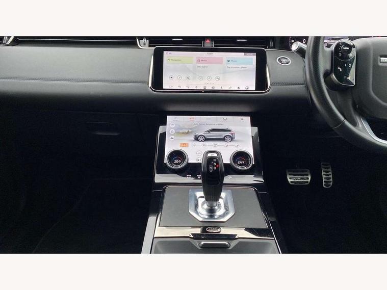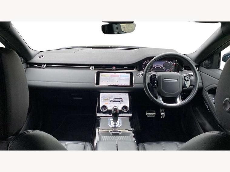 360 degree parking aid, Android Auto, Apple car play, Bluetooth connectivity, Brake pad wear indicator warning light, Clear exit monitor, Driver condition monitor, Duo touch pro, Electronic power assisted steering (EPAS), InControl remote, Interactive Driver display instrument cluster, Land Rover InControl apps, Lane keep assist, Navigation pro system, Park assist - Parallel, perpendicular and parking exit, Pro services and wifi hotspot, Push button starter, Rear traffic monitor, Smart settings, Traffic sign recognition with adaptive speed limiter, Voice control system, All terrain progress control, Efficient Driveline, Large fuel tank, Passive suspension, Terrain Response 2 Auto, Digital Audio Broadcast radio-DAB, Steering wheel mounted controls, Automatic headlight levelling, Electric windows with one touch open/close and anti trap, Evoque and R-Dynamic badge, Flush deployable exterior door handles, Heated rear window with timer, Heated washer jets, Heated windscreen, Power fold, auto-dimming, heated door mirrors with memory and approach lights, Rain sensing windscreen wipers, Rear fog lights, Shadow atlas bonnet and tailgate script, Tailgate spoiler, 40:20:40 split folding rear seats, Black gearshift paddles, Bright metal pedals, Isofix system on outer rear seats, Overhead lighting console, Overhead stowage for sunglasses, Passive front head restraints, Rear air vents, Rear centre headrest, Sunvisors with illuminated vanity mirrors, Twin front cupholders with cover, Twin sliding front centre armrest, 3 rear 3 point seatbelts, Anti-lock braking system (ABS), Customer configurable autolock, DSC - Dynamic Stability Control, Electronic brake force distribution, Electronic parking brake, Electronic traction control, Front and rear seatbelt reminder, Hill descent control, Hill launch assist, Low traction launch, Power operated child locks, Roll stability control, Six airbags - Driver and passenger airbags/driver knee airbag/front side airbag and curtain airbags, Torque vectoring brake, Tyre pressure monitoring system, Alarm, Immobiliser, Intrusion sensor, Locking wheel nuts,