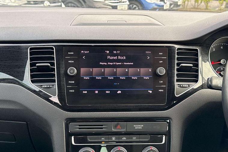 'Lights On' Reminder warning buzzer, ACC - Adaptive cruise control with front assist, forward collision warning, distance monitoring, city emergency brake and speed limiter, App-Connect, Bluetooth Telephone preparation, Brake pad wear indicator warning light, Drive mode selector, Driver alert system, Driver profile selection, Exterior temperature gauge, PAS - speed related, Push tank flap, Rev counter, Speedometer, electronic odometer and fuel gauge, Stop/start system, Trip and service interval display, Warning buzzer and light for front seatbelts unfastened, White instrument cluster lighting, Lowered sports suspension, XDS electronic differential lock, Composition media system, DAB Digital radio, SD card slot, USB and auxiliary socket, Auto dimming rear view mirror, Automatic coming/leaving home lighting function, Black front air intake and radiator grilles, Body colour bumpers, Body colour door handles, Body colour door mirrors with integral indicators, Chrome louvres in grille, Chrome side window surrounds, Chrome trimmed front air intake surrounds, Dusk sensor + auto driving lights, Electric front windows, Electric rear windows, Electrically adjustable and heated door mirrors, Front fog lights with static cornering function, Heat insulated tinted glass 65% light absorbing from B pillar back, Heated rear windscreen, Integral rear window aerial, LED 3rd brake lamp, LED daytime running lights, LED rear lights, Rain sensor, Range adjustable headlights, Rear diffuser, Rear roof spoiler, Rear window antenna, Rear windscreen washer and wiper with interval delay, Silver roof rails, Twin exhaust tailpipe, Windscreen wipers/ intermittent wipe + 4 position delay, 12v socket in front centre armrest storage compartment, 12V socket in luggage compartment, 3 rear headrests, 3 spoke multi-function leather steering wheel and gearknob, 60/40 split folding rear seat, Ambient lighting, Boot lashing points, Centre console storage box, Chrome-plated electric mirror adjustment switch surround, Chrome-plated electric window button surround, Cooled glovebox, Courtesy light delay, Driver and front passenger under seat drawer, Driver/front passenger seat height adjustment, Dust/pollen filter, Folding tables on front seatbacks, Front + rear carpet mats, Front centre armrest with storage box and rear air vents, Front door armrest light, Front footwell illumination, Front reading lights, Front seat back storage pockets, Front sport seats, Grab handles, Height/reach adjust steering wheel, Interior lighting with switch off delay and contact switches on all doors, Isofix preparation for 2 rear child seats, Load through provision, Luggage compartment cover, Luggage compartment lighting, Overhead storage box, Pearl grey headlining, Rear reading lights, Storage box in luggage compartment, Storage boxes under front seats, Storage compartments in doors, Sunvisors with illuminated vanity mirrors, Variable boot floor, height adjustable and removable, White adjustable panel illumination, Mirror pack - Golf, 3 point height adj front seatbelts + pretensioners, 3 rear 3 point seatbelts, ABS, Active pedestrian safety system, Automatic post collision braking, Child locks on rear doors, Door open warning reflectors, Driver/Front Passenger airbags, Driver/Passenger whiplash optimised head restraints, Drivers knee airbag, Electronic parking brake with auto hold, Electronic tyre pressure monitoring, ESP with EDL + ASR, Front and rear curtain airbags, Front passenger airbag deactivation, Front side airbags, Hydraulic Brake Assist (HBA), Pre crash system, Predictive pedestrian protection, Ventilated front disc brakes, Alarm with interior protection, Electronic engine immobiliser, Remote central locking with 2 remote folding keys, Chrome-plated light switch surround, Decor strip on dashboard and door side trim, Piano black centre console, Tumbler decorative inserts, Steel space saver spare wheel,