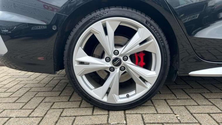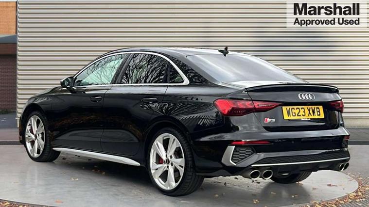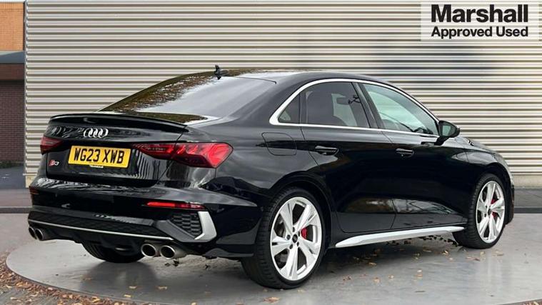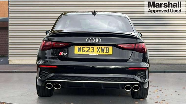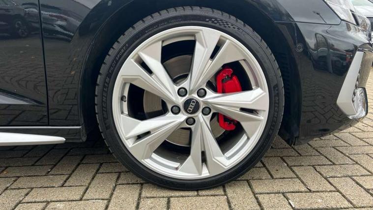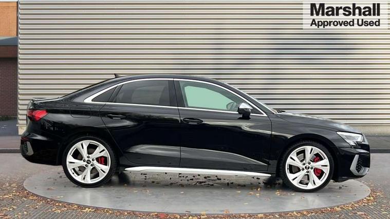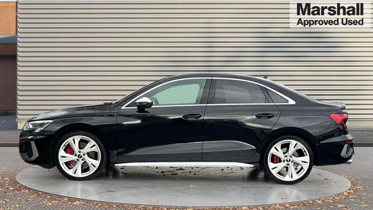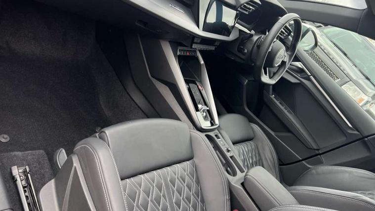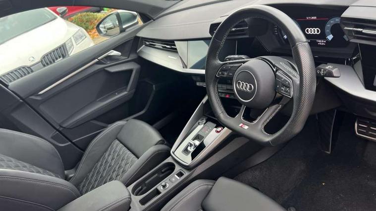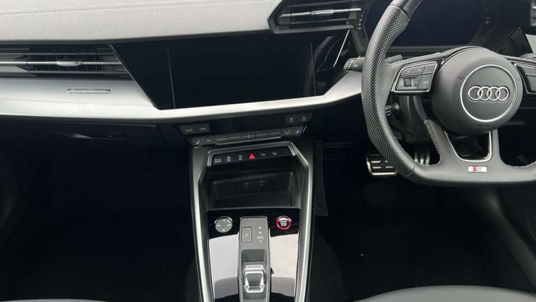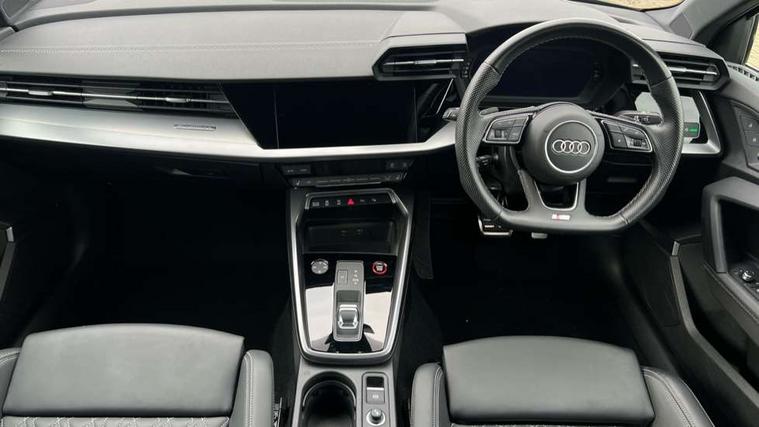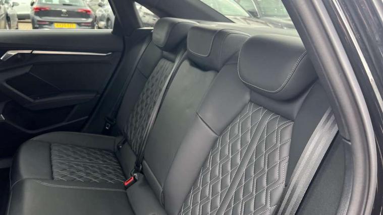 Audi connect emergency call and service, Audi drive select (Auto, Comfort, Dynamic, Efficiency and Individual), Audi smartphone interface, Audi Virtual Cockpit - 10.25" digital and colour instrument cluster, Automatic start/stop system with recuperation, Bluetooth interface, Collision avoidance assistant, Lane departure warning system, MMI Navigation Plus with high resolution 10.1" colour touch screen display, Progressive steering, Service indicator, Voice control system with natural language interaction, Quattro permanent all wheel drive, S sport suspension with spring damper adjustment and lowering by 15mm, 2x USB Type C ports (for charging and data transfer), 6 passive loudspeakers, CD player, DAB Digital radio, 3rd brake light, Acoustic glass windscreen, Audi Beam uses LEDs to project the Audi logo onto the ground as you exit your S3, Auto dimming frameless rear view mirror, Dual branch oval twin tailpipes in chrome plated finish, Electrically adjustable/heated/folding/auto dimming door mirrors with integrated LED indications + kerb view function for passenger side, Exterior mirror with aluminium look housing, Front electric windows, Headlight washers, Illuminated door sills with aluminium inserts at the front with S logo, LED daytime running lights, LED headlights with LED rear lights and dynamic rear indicators, Light and rain sensors, Model and engine designation badges at rear, Privacy glass - dark tinted rear window, rear door and side windows, Rear boot, Rear electric windows, Rear side wing doors, 12V socket and storage compartment in front centre console, 3 seat bench in 2nd row, 40/20/40 split folding rear seat bench with cupholder, Black cloth headlining, Dual zone electronic climate control, Fine Nappa leather upholstery with front sports seats S embossed logo, Front and rear centre armrest in leather, Front and rear headrests, Front/rear floor mats, Heated front seats, Height and reach adjustable steering wheel, Illuminated vanity mirror, Interior lighting - glove compartment light and right hand side, Luggage compartment floor covering, Manual boot compartment lid, Single front passenger seat, Stainless steel pedals and front footrest in black, Body styling design pack - S3, LED interior lighting pack - A3 Saloon, Storage pack - A3/S3 Saloon, 3x3 point rear seat belts, Driver and front passenger airbag with passenger airbag deactivation, Electronic Stabilisation Control (ESC) including ABS, ASR and EDL, First aid kit with warning triangle and 2 safety vests, Front side airbags with head airbags and interaction airbag, Hill hold assist, Pre-sense front with pedestrian and cyclist detection, Seatbelt monitoring, Tyre pressure loss indicator, Anti theft alarm, Anti-theft wheel bolts, Electronically operated child locks, Immobiliser, Remote control central locking, Aluminium air vent surrounds, Aluminium trim elements, Dark spectrum aluminium inlays, accent surfaces in the dashboard and centre console in platinum grey silk effect paint finish,