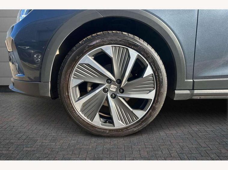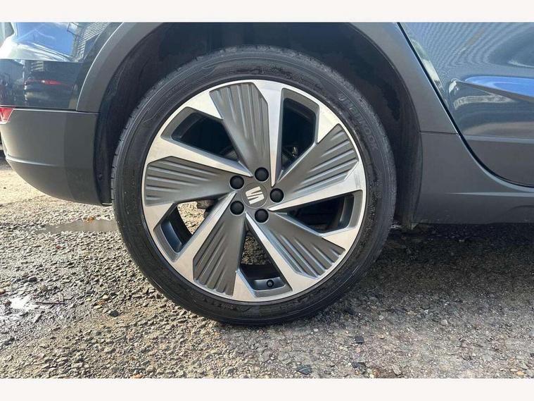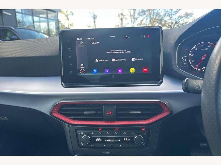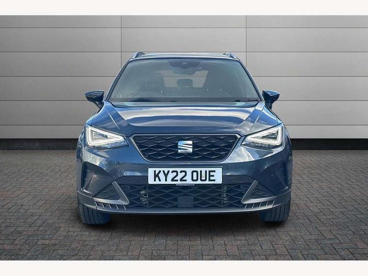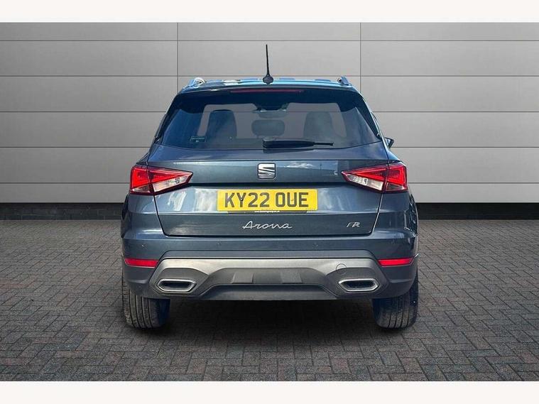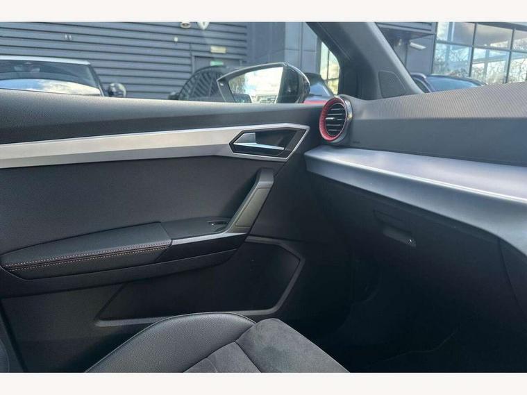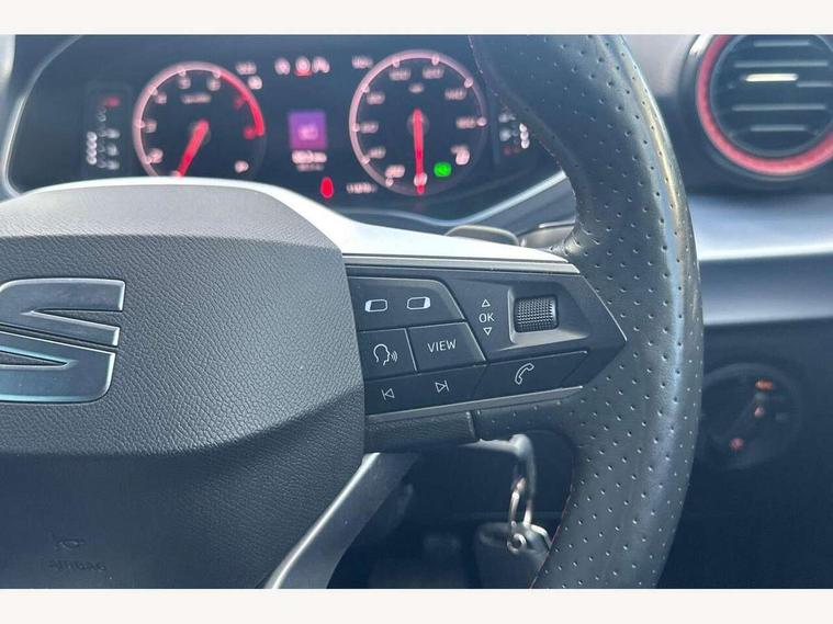 Digital cockpit, E-call, Electric speed sensitive power steering, Full Link Smartphone Integration with Mirror Link, Apple Car Play, Google Android Auto with USB cable for Apple and Android compatibility, Lane keeping system, Rear parking sensor, Seat connect with safety, service, remote and online, SEAT Drive profile - Four different models normal-sport-eco-individual, steering response, throttle response and gear shifts mode, Bluetooth interface for hands free and audio streaming, DAB digital radio and AM/FM radio, Steering wheel mounted audio controls, Anti theft roof antenna, Auto dimming interior rear view mirror, Automatic activation of hazard warning lights, Body coloured bumpers, Body coloured door handle inserts, Chrome roof rails and window surrounds, Chrome window trim, Dark tinted rear windows, Electric front/rear windows, Electrically adjustable, heated and folding door mirrors, FULL LED automatic headlights with dynamic headlight range control, coming and leaving home, LED daytime running lights, LED rear tail lights and licence plate lights, Protective side mouldings, Rain sensing wipers, Rear side wing doors, Rear spoiler, Rear window wash/wipe, Roof colour door mirrors, Third brake light, Twin exhaust pipe styling hidden exhaust pipe, Visible VIN plate, Windshield wiper with intermittent control and potentiometer, 2 cupholders, 3 seat bench in 2nd row, 60/40 split folding rear seat, Aircare filter, Black interior roof, Double boot floor, Driver sunvisor with covered mirror + card holder, Dual zone climate control, Front courtesy light with front and rear reading lights, Front seat back storage pockets, Front sport seats, Heated front seats, Height adjustable front seats, Height/reach adjustable steering column, Illuminated boot, Interior ambient lighting, Interior light in footwell, central console and door panel, ISOFIX points in outer rear seats with top tether anchorage points, Microsuede cloth upholstery, Passenger sunvisor with vanity mirror, Perforated flat bottomed leather steering wheel/gear knob/handbrake with red stitching and FR logo, Single front passenger seat, Steering wheel mounted gearshift paddles, Two front and three rear height adjustable headrests, Connectivity pack plus - Arona, Interior chrome pack - Arona, 3 point seatbelts on all rear seats, ABS, Active front headrests, Child locks on rear doors, Driver and front passenger airbags with front passenger airbag de activation, front side and curtain airbags, Electronic stability control, Emergency Brake Assist (EBA) and front assist, Front and rear seatbelt reminder, Hill hold control, Multi-Collision braking, Tiredness recognition system, Traction control, Tyre pressure monitoring system, Alarm with back-up horn, Electronic engine immobiliser, Locking wheel bolts, Remote central locking + deadlocks, Tow away protection, Titan black dashboard, 18" Performance Cosmo grey matt alloy wheels,
