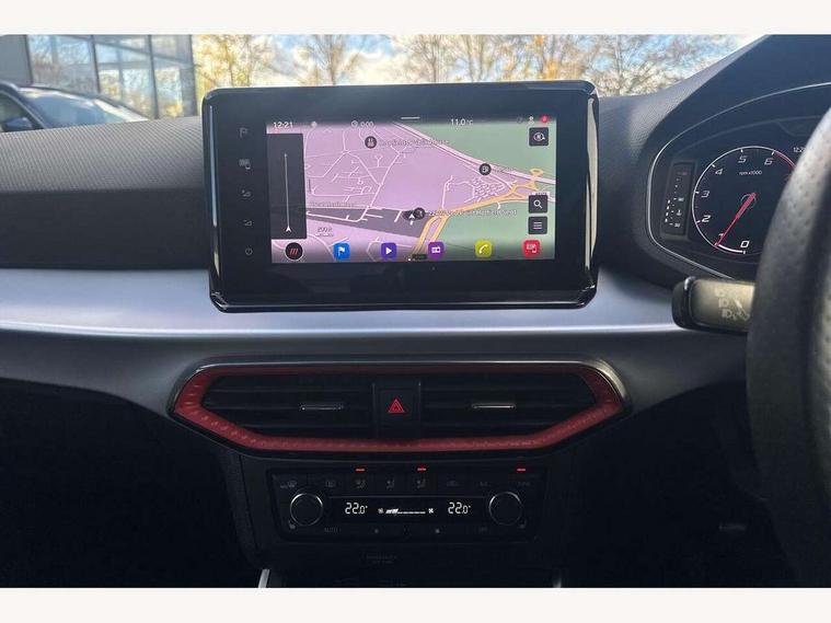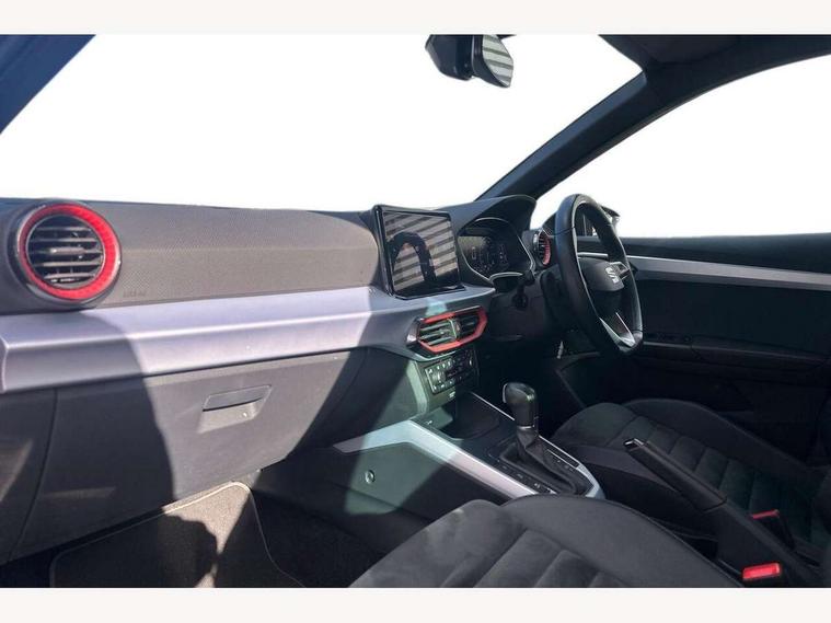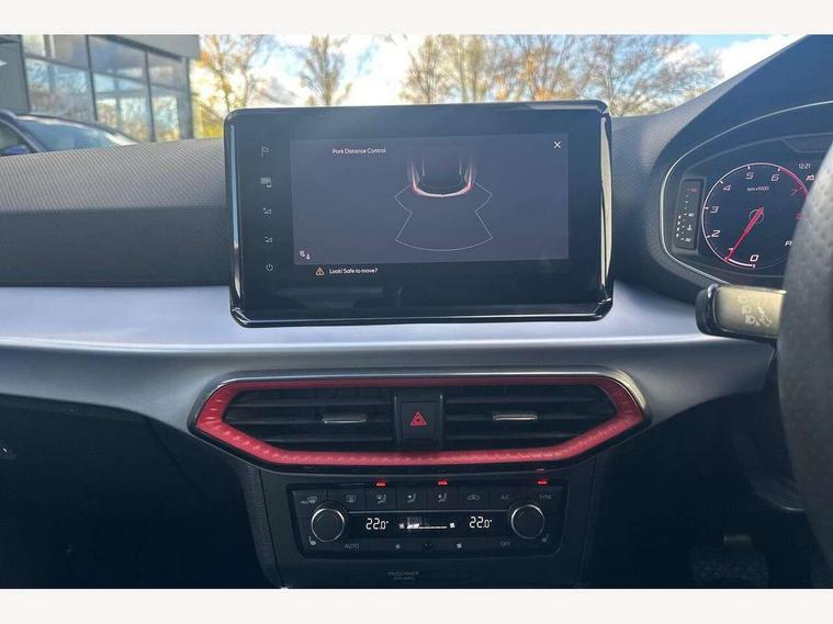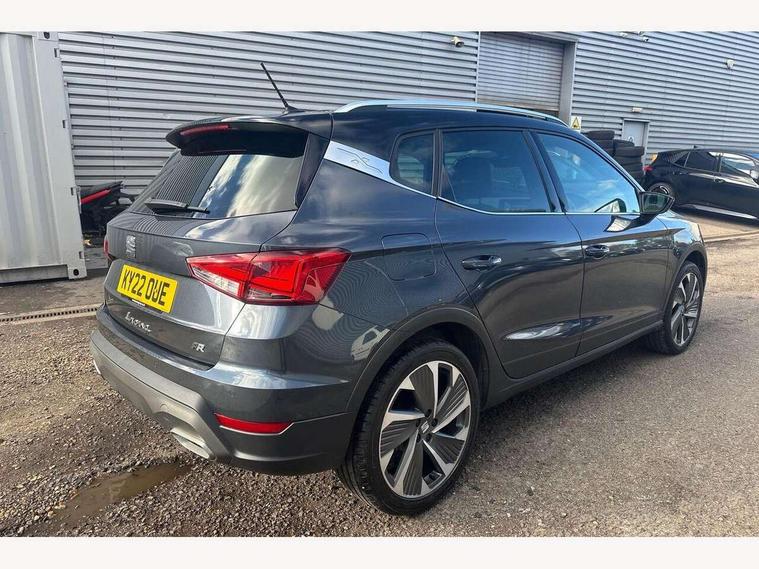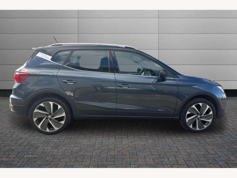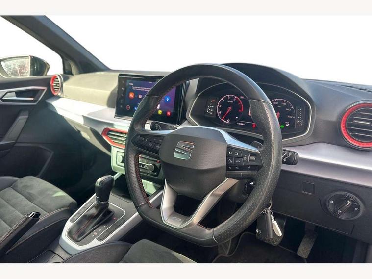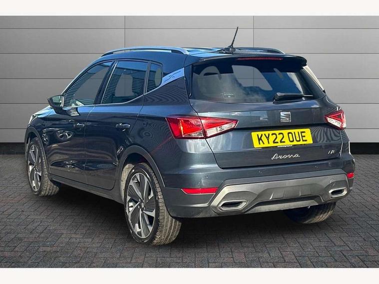 Digital cockpit, E-call, Electric speed sensitive power steering, Full Link Smartphone Integration with Mirror Link, Apple Car Play, Google Android Auto with USB cable for Apple and Android compatibility, Lane keeping system, Rear parking sensor, Seat connect with safety, service, remote and online, SEAT Drive profile - Four different models normal-sport-eco-individual, steering response, throttle response and gear shifts mode, Bluetooth interface for hands free and audio streaming, DAB digital radio and AM/FM radio, Steering wheel mounted audio controls, Anti theft roof antenna, Auto dimming interior rear view mirror, Automatic activation of hazard warning lights, Body coloured bumpers, Body coloured door handle inserts, Chrome roof rails and window surrounds, Chrome window trim, Dark tinted rear windows, Electric front/rear windows, Electrically adjustable, heated and folding door mirrors, FULL LED automatic headlights with dynamic headlight range control, coming and leaving home, LED daytime running lights, LED rear tail lights and licence plate lights, Protective side mouldings, Rain sensing wipers, Rear side wing doors, Rear spoiler, Rear window wash/wipe, Roof colour door mirrors, Third brake light, Twin exhaust pipe styling hidden exhaust pipe, Visible VIN plate, Windshield wiper with intermittent control and potentiometer, 2 cupholders, 3 seat bench in 2nd row, 60/40 split folding rear seat, Aircare filter, Black interior roof, Double boot floor, Driver sunvisor with covered mirror + card holder, Dual zone climate control, Front courtesy light with front and rear reading lights, Front seat back storage pockets, Front sport seats, Heated front seats, Height adjustable front seats, Height/reach adjustable steering column, Illuminated boot, Interior ambient lighting, Interior light in footwell, central console and door panel, ISOFIX points in outer rear seats with top tether anchorage points, Microsuede cloth upholstery, Passenger sunvisor with vanity mirror, Perforated flat bottomed leather steering wheel/gear knob/handbrake with red stitching and FR logo, Single front passenger seat, Steering wheel mounted gearshift paddles, Two front and three rear height adjustable headrests, Connectivity pack plus - Arona, Interior chrome pack - Arona, 3 point seatbelts on all rear seats, ABS, Active front headrests, Child locks on rear doors, Driver and front passenger airbags with front passenger airbag de activation, front side and curtain airbags, Electronic stability control, Emergency Brake Assist (EBA) and front assist, Front and rear seatbelt reminder, Hill hold control, Multi-Collision braking, Tiredness recognition system, Traction control, Tyre pressure monitoring system, Alarm with back-up horn, Electronic engine immobiliser, Locking wheel bolts, Remote central locking + deadlocks, Tow away protection, Titan black dashboard, 18" Performance Cosmo grey matt alloy wheels,