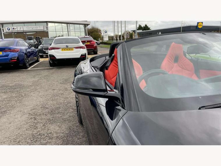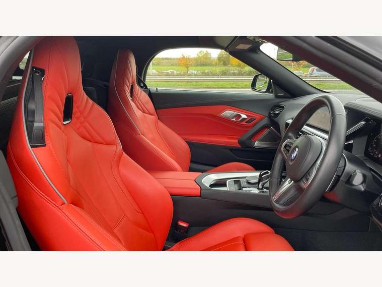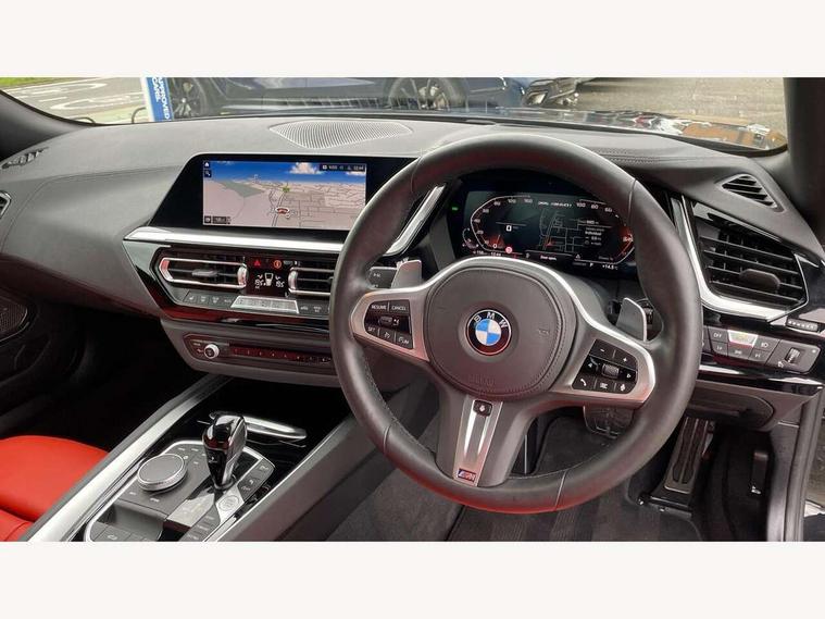 Active guard plus incl speed limit assist, lane departure warning with steering impulse and front collision warning with brake intervention, Auto start-stop, BMW ConnectedDrive online services, BMW Live Cockpit Professional with 10.25" high resolution instrument and control display, BMW Teleservices, Condition based service, Electric power steering, Fuel gauge, IDrive, Instrument cluster, Language version English, Oil sensor for level and grade, warning by check control system, Oil temperature gauge, Optimum shift indicator, Pull away assistant, Run flat indicator, Smartphone integration, Speed limiter, Speedometer with mph readout, Tachometer, Variable sport steering, Adaptive M suspension, Double joint spring, Double VANOS, Drive performance control with ECO PRO comfort + sport mode, Eight speed steptronic sport transmission, with gearshift paddles, Fuel tank breather system, High precision injection, M Sport differential, 2x USB Type C ports in front centre console for charging and data transfer, 2x USB Type C ports in rear centre console for charging, DAB tuner, USB connection, 3rd brake light, Automatic headlight beam throw control with load dependent regulating reaction, dynamic compensation of braking dive and acceleration squat, Cerium grey exterior mirror housing, Door sill finishers with M designation, Door sill strips, Dynamic braking lights comprising activated hazard warning flashers and third brake lights, Electric heated rear window, Exhaust tailpipe - split left and right, Exterior mirrors - electrically folding with anti-dazzle, Fingertip control / anti-trap function on electric window, Follow me home headlight function, Front and rear bumper system with replaceable deformation elements, Green tinted heat protection glazing, Heated windscreen washer jets, High gloss black window recess finisher, High gloss shadow line, Interior rear view electrochromatic mirror with automatic anti dazzle function, Kidney grille in mesh design, LED daytime driving lights, LED Indicators, LED rear lights, Lightweight engineering, Model logo, Rain sensor, Rear boot, Tailgate release handle, Two stage brake force display, Visible VIN plate, Welcome lighting, Windscreen wipers with adjustable interval, 12V power socket in front storage compartment, Activation of interior lighting, Additional storage compartment - 4 lashing eyes, strap and storage net, Ambient lighting, Battery in luggage compartment, BMW ID, Child seat ISOFIX attachments for passenger seat, Cupholder, Driver and front passenger heated seats, Driver and front passenger lumbar support, Electrically adjustable front driver and passenger seats with memory, Front and rear armrests integrated in door trim + centre console includes storage compartment and rear centre armrest includes 2 cupholders, Front and rear velour floor mats, Front headrests, Height adjustable mechanically and infinitely variable steering column, Illuminated glovebox, Luggage compartment light, M sport leather steering wheel, M Sport seats for driver and passenger, Microfilter and active carbon filter, Multifunction steering wheel, Single front passenger seat, Sunvisors with vanity mirrors and ticket pocket, Two zone automatic air conditioning, Vernasca leather upholstery, Connected package professional - Z4, 3 point front seat belts, Airbags - Front driver and passenger, front and side impact protection, Anti lock braking system (ABS) with brake assist, Automatic Stability Control (ASC), BMW emergency call, Brake energy regeneration, Braking readiness, Cornering brake control (CBC), Crash sensor activating central locking release, hazard warning lights, fuel cut off, interior lighting, safety battery terminal clamp and airbags, Deactivation of fuel pump in the event of a crash, Dry braking, Dynamic brake control, Dynamic stability control + (DSC+), Dynamic Traction Control - DTC, Electromechanical parking brake with automatic drive away release and auto hold function, Front and rear brake discs with interior ventilation, Head airbags, M Sport brakes with blue calipers M designation in front, M sport seatbelt, Plastic fuel tank, Pyrotechnic seat belt tensioners, Roll over protection, Seat belt force limiter, Seat belt stopper, Seat occupancy protection, Two tone horn, Tyre pressure monitoring with three level warning strategy, Warning triangle, Centre lock switch, Closing system with central locking, Electronic vehicle immobiliser, Start/stop button with Comfort Go keyless engine start and auto Start/stop deactivation button, Thatcham cat 1 remote alarm, Sensatec dashboard, 19" Double spoke M light alloy wheels in bicolour cerium grey - style 800M, Reduced rolling resistance tyres, Tool kit, Tyre repair kit,