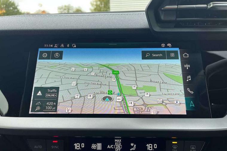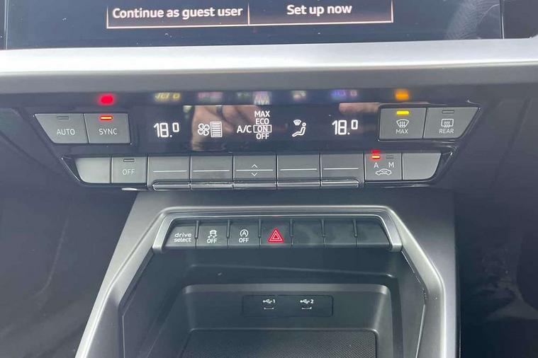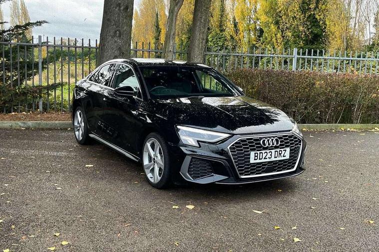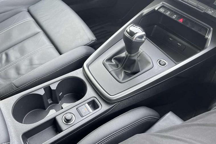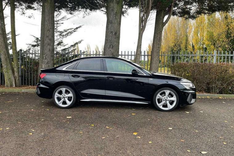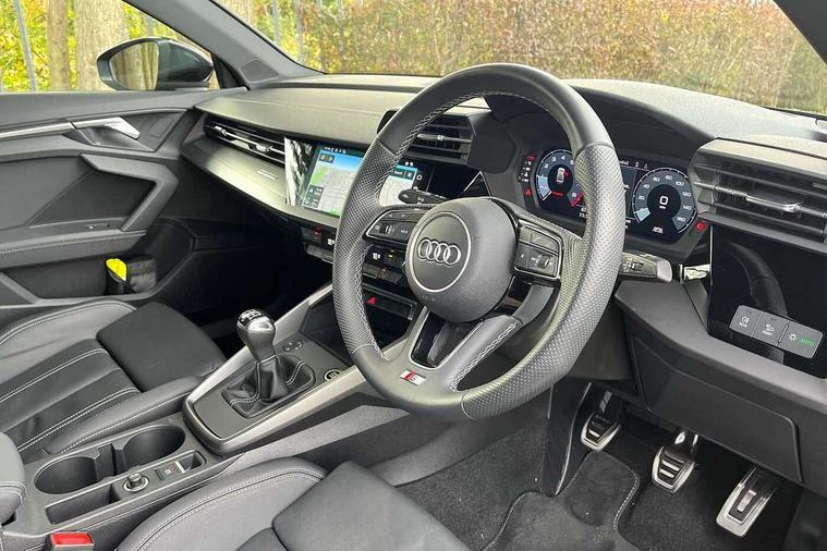 Audi connect emergency call and service, Audi drive select (Auto, Comfort, Dynamic, Efficiency and Individual), Audi smartphone interface, Audi Virtual Cockpit - 10.25" digital and colour instrument cluster, Automatic start/stop system with recuperation, Bluetooth interface, Collision avoidance assistant, Cruise control + speed limiter, Electromechanical power speed sensitive steering, Lane departure warning system, MMI Navigation Plus with high resolution 10.1" colour touch screen display, Rear parking sensors, Service indicator, Voice control system with natural language interaction, Sports suspension, 2x USB Type C ports (for charging and data transfer), 6 passive loudspeakers, CD player, DAB Digital radio, 3rd brake light, Acoustic glass windscreen, Aluminium window trim, Auto dimming frameless rear view mirror, Body colour exterior mirrors, Electrically adjustable/heated/folding/auto dimming door mirrors with integrated LED indications + kerb view function for passenger side, Front electric windows, Illuminated door sills with aluminium inserts at the front with S logo, LED daytime running lights, LED headlights with LED rear lights and dynamic rear indicators, Light and rain sensors, Model and engine designation badges at rear, Privacy glass - dark tinted rear window, rear door and side windows, Rear boot, Rear electric windows, Rear side wing doors, S line bumpers, S roof spoiler, 12V socket and storage compartment in front centre console, 3 seat bench in 2nd row, 3 spoke leather multifunction steering wheel, 40/20/40 split folding rear seat bench with cupholder, Black cloth headlining, Dual zone electronic climate control, Front and rear centre armrest in leather, Front and rear headrests, Front/rear floor mats, Height and reach adjustable steering wheel, Illuminated vanity mirror, Interior lighting - glove compartment light and right hand side, Luggage compartment floor covering, Manual boot compartment lid, Manually adjustable front sport seats, Seat side bolsters, Single front passenger seat, Stainless steel pedals and front footrest in black, Twin leather upholstery with front sports seats S embossed logo, Aluminium interior elements pack - A3, LED interior lighting pack - A3 Saloon, S line styling pack - A3 Saloon, 3x3 point rear seat belts, Driver and front passenger airbag with passenger airbag deactivation, Electronic Stabilisation Control (ESC) including ABS, ASR and EDL, First aid kit with warning triangle and 2 safety vests, Front side airbags with head airbags and interaction airbag, Hill hold assist, Pre-sense front with pedestrian and cyclist detection, Seatbelt monitoring, Tyre pressure loss indicator, Anti theft alarm, Anti-theft wheel bolts, Electronically operated child locks, Immobiliser, Remote control central locking, Aluminium air vent surrounds, Aluminium trim elements, Dark spectrum aluminium inlays, accent surfaces in the dashboard and centre console in platinum grey silk effect paint finish,