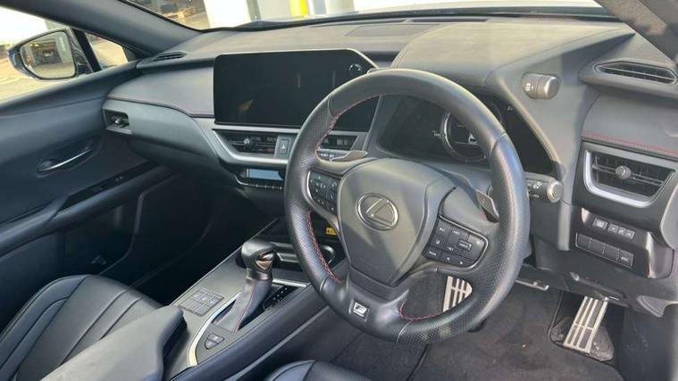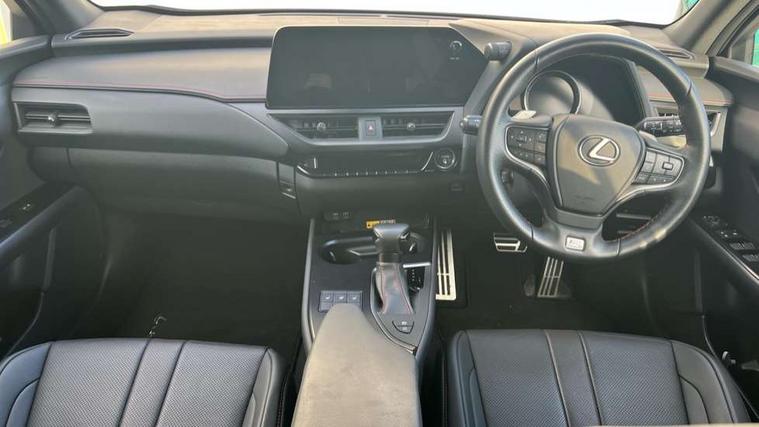 4 driving modes EV/Eco/Normal/Sport, 7" Lexus media display, 8" LFA inspired TFT meters with movable meter ring, Analogue clock with GPS function, Apple car play/Android Auto, Compatible mobile phone bluetooth with audio streaming, E-call, Electric power steering (EPS) with speed sensitive features, Front and rear parking sensor with intelligent clearance sonar, Lane change flasher function, Lexus link connected services, Lexus navigation system, Lexus safety systems + includes dynamic radar cruise control, pre collision system day and night, lane tracing assist, road sign assist, Push button start, Remote touch interface, Reversing camera with back guide lines, Trip computer, F Sport suspension tuning and rear performance dampers, Vehicle Dynamics Integrated Management (VDIM), Vehicle Stability Control (VSC), 2 front USB and 2 rear USB charging points, 6 speakers, AM/FM and DAB radio, AUX socket with VTR compatibility, CD player, Acoustic windscreen, Aero stabilising arch mouldings, Aero stabilising rear lights, Aero ventilated wheels, Aluminium roof rails, Auto dimming interior rear view mirror, Bi-LED (low and high beam) headlights with Auto High Beam (AHB), Black roof drip mouldings, Body adhesive, laser screw welding and laser brazed roof structure, Body coloured bumpers, Colour coded wheel arches, Electric adjustable/heated door mirrors, F SPORT exterior styling consists of black Mesh front grille, enhanced side rockers, metallic coated front bumper and F SPORT badging, Front and rear one touch power windows, with anti-jam protection, Headlight cleaners, LED cornering headlights, LED daytime running lights, LED front and rear fog lights, LED tail lights, LED third brake light, Privacy glass, rear doors and tailgate, Rain sensor windscreen wipers, Rear side wing doors, Rear wiper, Shark fin roof aerial, Single hidden exhaust pipe, Towing preparation, Variable front intermittent wipers, 12V accessory port centre console and luggage compartment, 2 cup holders in the front and rear centre console, 2 way electrical lumbar adjustment for driver, 2 x folding shopping bag hooks in boot, 2 x sun visors with vanity mirror and lamp, 3 seat bench in 2nd row, 4 x tie down hooks in the boot, 5 headrests, 60/40 split folding rear seat, 8 way driver/passenger electrically adjustable front seats, Active sound control, Card holder installed in driver and passengers sun visors, Centre armrest with storage, Driver and passenger door pocket, Dual zone electronic climate control + Nano-E humidity sensor, F Sport aluminium sports pedals, F SPORT dimpled leather gear lever, F SPORT front seat headrest adjustable forwards and backwards, F Sport interior styling, F Sport leather steering wheel with paddle shifts, Fabric/Tahara leather upholstery, Glovebox, Heated steering wheel, Illuminated entry system, LED interior illumination, Map pockets in the rear of passenger's front seat, Rear air vents with 2 USB chargers, Rear armrest with 2 cupholders, Single front passenger seat, Storage tray under audio panel, Textile carpet mats, Tilt/reach adjustable steering column, Under deck storage, Under desk side storage, 2 x Isofix child rear seat restraints, 3x3 point rear seatbelts, Anti-lock braking system (ABS), BAS (Brake Assist System), Driver and front passenger 2 stage airbag, Driver and front passenger knee airbag, Driver/front passenger side airbags, EBD - Electronic brakeforce distribution, ECB (Electronically Controlled Brake System), Electric child locks, Electric parking brake, Front adjustable seatbelt anchor points, Front and rear curtain shield airbags, Front outer seatbelt+pre-tensioners, force limiter+tension reduction: 3-point with active safety link to PCS, Hill start assist control (HAC), Passenger airbag cut-off device, Rear outer seatbelt+pre-tensioners, force limiter+tension reduction: 3-point with active safety link to PCS, Centre belt w/o pre tensioner+force limiter, Secondary Collision Brake (SCB), TRC (Traction Control), Tyre pressure warning, 2 x remote key fobs, Anti theft system : Alarm instruction sensor, glass breakage sensor and engine immobiliser, Locking wheel nuts, Remote central door locking, Speed sensitive auto door locking, Two motion door lock with double lock, VIN Window etching, 18" F Sport alloy wheels with run flat tyres,