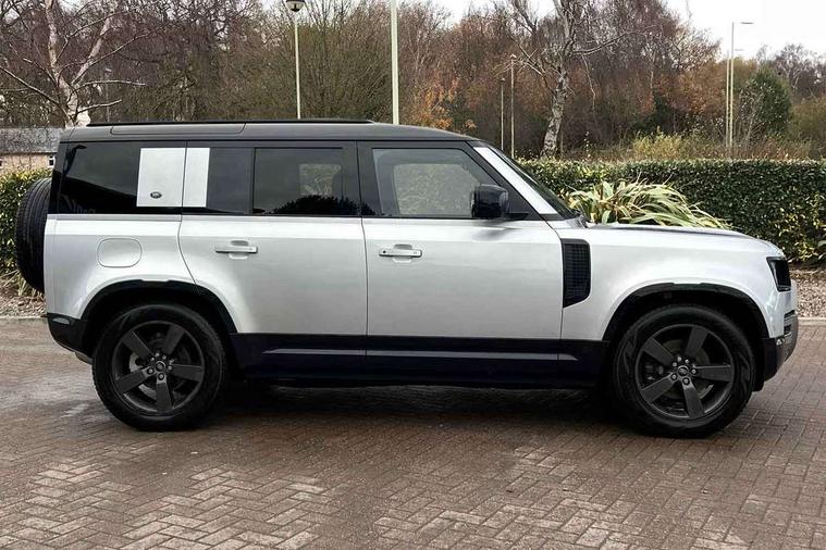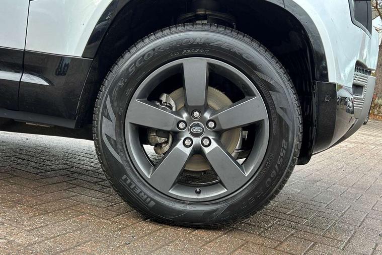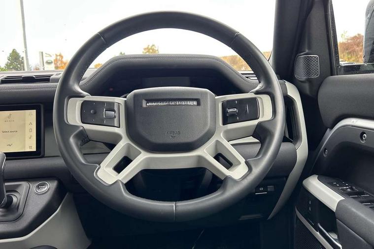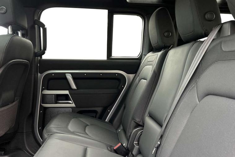 360 degree parking aid, 3D Surround Camera with 360 View, 180 Rear View, Front Traffic Detection, Forward Vehicle Guidance, Tow Hitch Assist and clear sight Ground View, Adaptive cruise control, Android Auto, Apple CarPlay, Assisted tailgate with soft close, Blind spot assist, Bluetooth system, Brake pad wear indicator, Clear exit monitor, Connected navigation pro, Driver condition monitor, Electric power assisted steering (EPAS), Interactive driver display, Lane keep assist, Push button start, Rear traffic monitor, Traffic sign recognition with adaptive speed limiter, Trip computer, Wade Sensing, 8 speed automatic transmission, Adaptive dynamics, All wheel drive system, Twin speed transfer box, DAB Radio (Digital Audio Broadcasting), Meridian 400w sound audio system with 11 speakers and subwoofer, Pivi pro connected, Automatic headlight levelling, Automatic headlights, Black exposed rear recovery eyes, Centre high mounted stop light, Electric heated/power fold door mirrors with approach lights and auto dimming driver side, Electric windows with one touch open/close and anti-trap, Follow me home lighting, Heated rear window with timer, Heated windscreen, LED tail lights, Privacy glass, Puddle lights, Rain sensing windscreen wipers, Rear fog lights, Rear side wing doors, Rear wiper, Side hinged tailgate, Trailer stability assist, X-Dynamic badge, 12V power socket in loadspace, 2 seat bench in 3rd row, 3 seat bench in 2nd row, Alpine lights, Configurable cabin lighting, Durable rubber cabin flooring, Durable rubber loadspace flooring, Footwell lights, Front passenger isofix child seat attachment, Loadspace cover, Loadspace Hook, Multifunction steering wheel, Overhead stowage for sunglasses, Premium cabin lighting, Rear headrests, Rear ISOFIX, Rear reading lights, Single front passenger seat, Storage glovebox, Sunvisors with illuminated vanity mirrors, Online pack with data plan - Defender, 7 three point seatbelts, ABS, Brake hold function, Cornering brake control (CBC), Customer configurable autolock, DSC - Dynamic Stability Control, EBD - Electronic brakeforce distribution, Electric parking brake (EPB), Emergency brake assist, Emergency braking, ESP + traction control, Front airbags with passenger seat occupant detector, HDC - Hill descent control, Hill launch assist, Low traction launch, Power operated child locks, Remote for (e-Call, Optimised assistance call, InControl app, Climate, beep and flash and door), RSC - Roll stability control, Seat belt reminder, TPMS (Tyre pressure monitoring system), Alarm, Immobiliser, Intrusion sensor, Keyless entry, Locking wheel nuts,