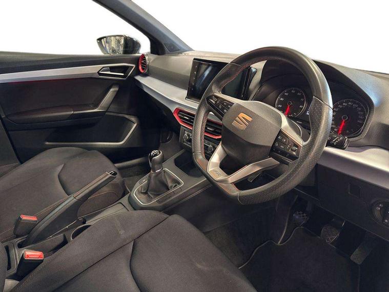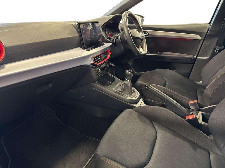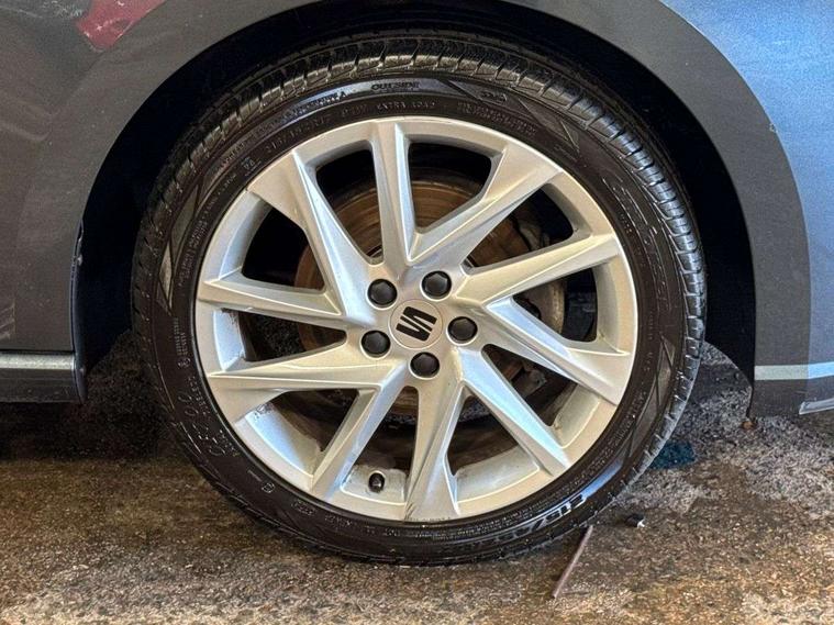 'Lights On' Reminder warning buzzer, 9.2" touchscreen navigation system with type C USB socket, Voice control and DAB/AM/FM radio, Auto start and stop system, Bluetooth audio streaming with handsfree system, Digital clock, Full link smartphone integration with mirror link, wireless apple carplay, Google android auto + USB Type C cable for apple and android devices, Lane assist, Low fuel warning light, Outside temperature gauge, Power Steering, Seat connect with safety, service, remote and online, SEAT drive profiles and ECO function, SEAT logo boot release, Speed limiter, Trip computer, Sports suspension, Auxiliary input socket, Radio/MP3 player, SD card slot, Steering wheel mounted controls, Anti theft roof antenna, Auto dimming rear view mirror, Automatic rain sensing wipers, Black door mirrors, Body colour bumpers, Body colour door handles, Brilliant black window surrounds, Dark tinted rear windows, Electric adjustable/heated/folding door mirrors, Electric front windows, Electric headlight adjustment, Electric rear windows, Front/rear fog lights, FULL LED automatic headlights with dynamic headlight range control, coming and leaving home, LED daytime running lights, LED tail lights, Rear roof spoiler with FR twin exhausts, 60/40 split folding rear seat, Ambient interior lighting, Chrome detailing and black headlining, Cloth upholstery, Dual zone climate control with combination filter, Front courtesy lights, Front cupholders x 2, Front reading lights, Gear shift indicator, Glovebox, Height adjustable front and rear headrests (five), Height adjustable front seats, Height/reach adjust steering wheel, Illuminated air vent surrounds, Illuminated boot, Instrument lighting with brightness control, Isofix, Leather multifunction flat bottomed sports steering wheel, Passenger sunvisor, Sports seats, Sunvisors with mirror and driver side card holder, 3 point seatbelts on all 3 rear seats, ABS, Active front headrests, Child locks on rear doors, Electronic stability control, Energy recovery system, Front assist forward collision warning and autonomous emergency braking, Front driver and passenger side airbags with curtain airbag and front passenger airbag deactivation, Hill hold control, Multi-Collision braking, Seat belt reminder for front and rear seats, Tiredness recognition system, Tyre pressure monitoring system, Electronic engine immobiliser, Locking wheel bolts, Perimeter alarm and interior monitoring with backup horn and tow away protection, Remote central locking + deadlocks, 17" Alloy wheels in Brilliant silver,