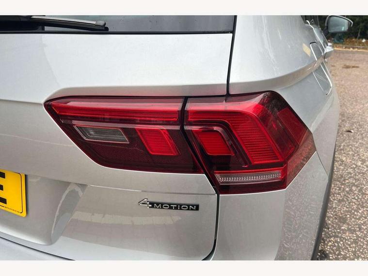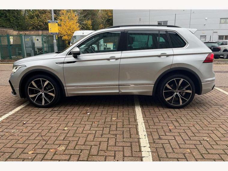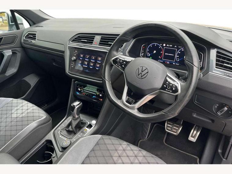 Adaptive cruise control ACC stop and go including speed limiter, App-Connect incl. App-Connect Wireless for Apple CarPlay and Android Auto, Bluetooth phone integration system, Digital Cockpit Pro - Active info display, Distance control assist, Driver alert system, Driver profile selection, Dynamic road sign display, eCall emergency call system, Electromechanical speed sensitive power steering, Engine start/stop button, Lane keeping system Lane Assist, Lights on warning, Multifunction front facing camera, Outside temperature display, Premium multifunction display with multi colour display, Remote control boot opening, Rev counter, Revision / skills operating concept travel assistant, Service interval indicator, Speed limit display, Start/stop system with regenerative braking, Trip computer, Warning sound and light for doors and tailgate open, All wheel drive - 4Motion, Battery regeneration during braking, Diesel particulate filter, Misfuel prevention device for diesel engine, Selective Catalytic Reduction, XDS electronic differential lock for improved traction and handling, 2 USB-C ports in the front, 1 USB-C charging socket on the center console in the rear, Diversity antenna for FM reception, Radio, SD card slot, Simultaneous pairing of 2 compatible mobile devices, SMS functionality - read, compose and send SMS messages using touch-screen display, Title and cover art display, Auto dimming interior rear view mirror, Automatic headlight control system, Black roof rails, Body colour door handles, Body coloured bumpers in R Line style, Body coloured door mirrors with integrated indicators, Chrome moldings on the side windows, Coming/leaving home lighting function, Dynamic headlight range control, Front and rear electric windows, Heated rear window, High level 3rd brake light, Laminated safety glass windshield, heat and sound insulating, LED rear number plate lights, License plate carrier in front and rear, Poor weather light and cornering light, Privacy glass for rear side windows and rear window, R Line body kit, R Line side sills, Rain sensor windscreen wipers, Rear exhaust tailpipe, Rear fog lamp, Rear spoiler in R style, Rear windscreen washer and wiper with interval delay, Side and rear windows in heat insulating glass, Third brake light, Trailer Stability Programme, Unique R Line badging, Windscreen wipers/ intermittent wipe + 4 position delay, 12V outlet in center console rear and in luggage compartment, 2 cup holders in front, 2 LED front reading lights, 2 LED rear reading lights, 3 rear headrests, 4 load lashing points, 40:20:40 split folding rear seats, Air Care Climatronic 3 zone automatic climate control with enhanced air filter and controls in the rear, Backrest release for left front seat, Black headlining, Brushed stainless steel pedals and footrest, Carpet mats in front and rear with decorative stitching in Gray, Climate control unit rear with touch function, Door and side trim panel in foam film, insert in leatherette, Front centre armrest, Front footwell illumination, Front seats head restraints (x-adjustment), Height adjustable front seats, Height/reach adjust steering wheel, Instrument lighting white adjustable panel illumination, Interior light with delay, Isofix Preparation 2 Rear child seats, Leather gear knob, Lockable cooled glovebox, Luggage compartment lighting, Luggage net, Rear bench seat asymetrically split folding, longitudinally movable and folding with load-through hatch and center armrest, Remote unlocking for rear seat backrest, Removable luggage cover, Safety optimised front head restraints, Sliding/reclining rear seats, Standard rear seat release, Storage compartment in driver's door, Storage compartment in passenger's door, Storage compartment in rear doors, Storage compartments in luggage area left and right, Storage tray on dashboard, Sun visors with illuminated vanity mirrors, Tool kit, Top front comfort seats, Variable boot floor, height adjustable and removable, Ambience pack - Tiguan R Line, Driver assistance pack plus - Tiguan DSG, 3 point seat belt for centre rear seats, 3 point seat belts with seat belt pretensioners for the outer rear seats, Active bonnet, Curtain airbags for front and rear passengers, Driver/Front Passenger airbags, Drivers knee airbag, Electronic parking brake with auto hold, Electronic Stability Control with driver steering recommendation, ABS, ASR, EDL, EDTC and trailer stabilization, Front assist with autonomous emergency braking (for Adaptive Cruise Control ACC up to 130 mph), Front disc brakes, Front passenger airbag deactivation, Front side airbags, Height adjustable front 3 point seatbelts + pretensioners, Hill hold control, Pedestrian monitoring system, Power assisted brakes, Proactive passenger protection system in combination with front assist, Rear disc brakes, Rigid safety cell with front and rear crumple zones, Two tone horn, Warning sound and light for front seat belts if unfastened, Anti theft alarm system with interior monitoring, backup horn and towing protection, Anti theft wheel bolts, Electronic engine immobiliser, 20" Misano black with diamond turned surface alloy wheels with Airstop tyres,