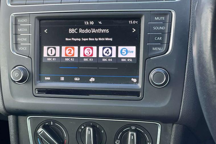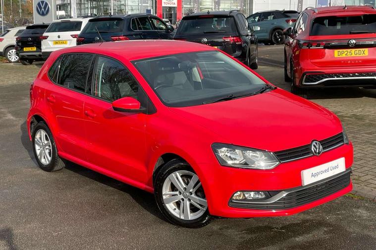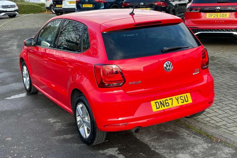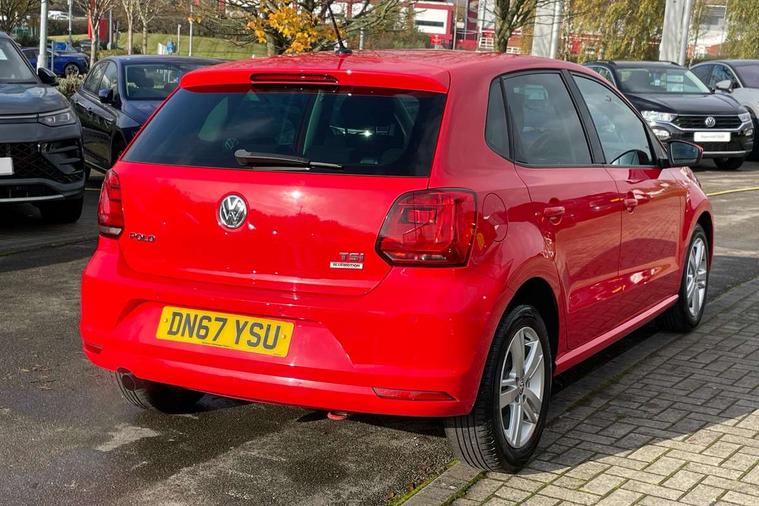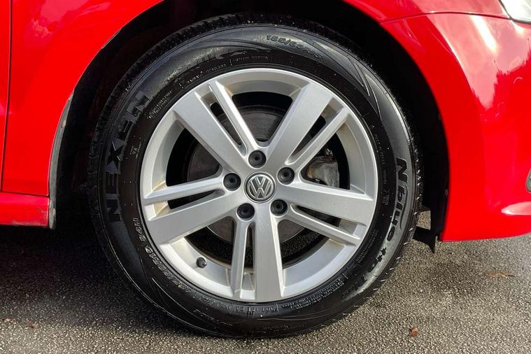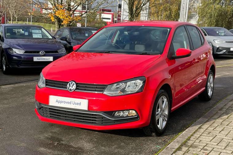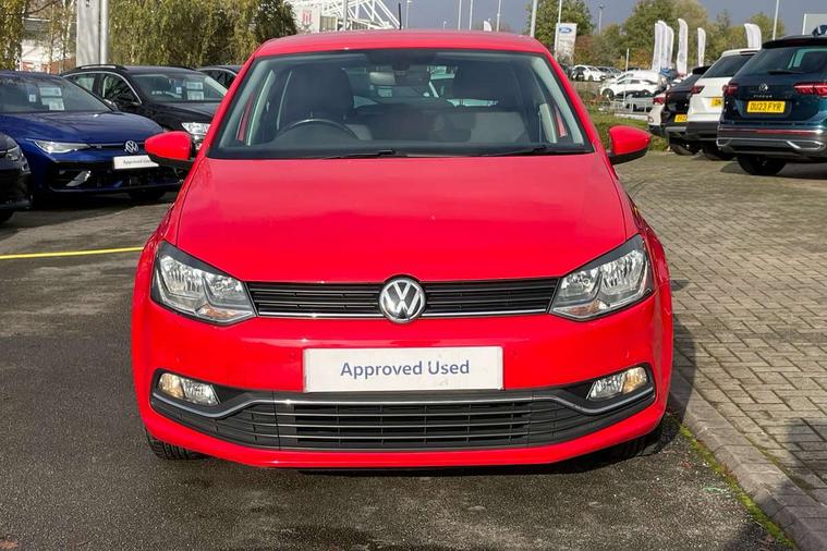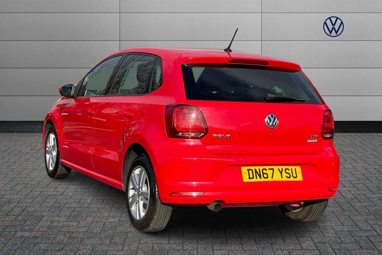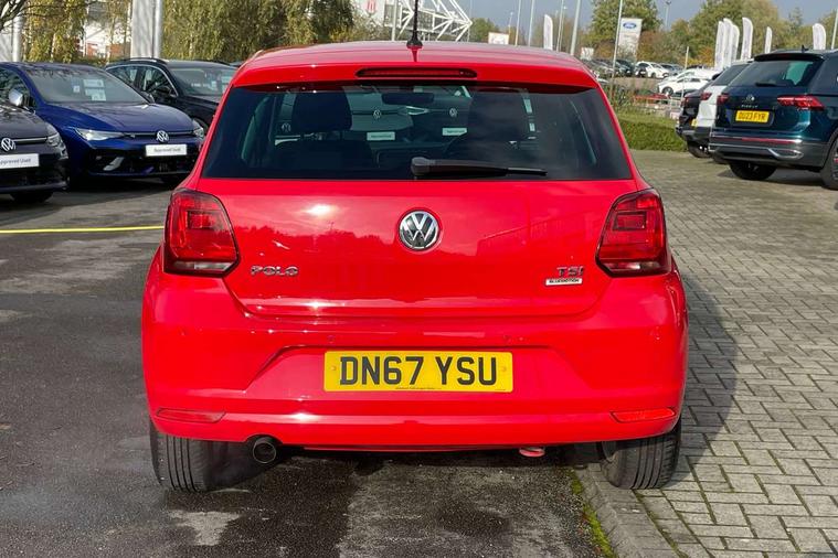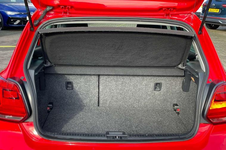 App-Connect, Bluetooth Telephone preparation, Driver alert system, Multi function display, Multifunction computer, PAS - speed related, Service interval indicator, Ultrasonic front and rear optical and audible parking sensors, Warning buzzer and light for front seatbelts unfastened, 6 speakers, Composition media system with radio, glovebox mounted CD, colour touch screen, SD card, aux-in, USB, multimedia interface, DAB Digital radio, Black grille with chrome surround, Body colour bumpers, Body colour door handles, Body colour door mirrors, Body coloured side sills, Chrome trimmed front air intake surrounds, Electric folding door mirrors, Electric front windows, Electric operated/heated door mirrors, Front fog lights with static cornering function, Front wash/wipe with interval delay, Heat insulated tinted glass 65% light absorbing from B pillar back, Heated rear window with auto timer, Rear electric windows, Rear windscreen washer and wiper with interval delay, 12V power socket in centre console, 2 bag hooks in luggage compartment, 2 cupholders, 3 rear head restraints, 3 spoke steering wheel, 4 grab handles, 60/40 split folding rear seat, Centre console storage, Chrome interior door handles, Driver and passenger sunvisors, Driver seat height adjust, Dust/pollen filter, Front door pockets, Front passenger seat height adjust, Front seat backrest storage nets, Front/rear reading lights, Glovebox, Height/reach adjustable steering column, Illuminated vanity mirror, Interior light with delay, Isofix Preparation 2 Rear child seats, Luggage compartment cover, removable, Luggage compartment lighting, Matt chrome gear lever gaiter surround, Multifunction leather steering wheel with leather gear knob/handbrake grip, Storage compartment in front doors, Storage compartment in rear doors, Sunglasses holder, Variable boot floor, Light and sight pack - Polo, 3 point height adj front seatbelts + pretensioners, 3x3 point rear seatbelts, ABS, Automatic post collision braking, Driver/front passenger airbag, Driver/Passenger whiplash optimised head restraints, ESC - Electronic Stability Control + traction control, ESP with EDL + ASR, Hill hold control, Hydraulic Brake Assist (HBA), Tyre pressure monitoring system, Alarm with remote central locking and interior protection, Electronic engine immobiliser, Air vents in Matt chrome, Matt chrome interior trim, 15" steel spare wheel,