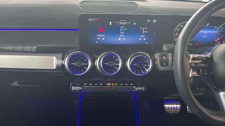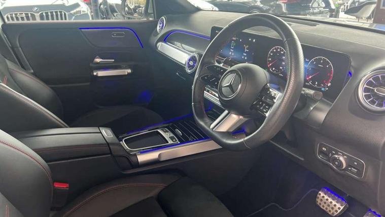 10.25 inch touchscreen central media display, 10.25" Digital instrument cluster display screen, 12 ultrasonic sensors in front and rear bumpers, 180 degree reversing camera with parking guidelines, Additional drive program "OFF-ROAD", Assisted parking: reversing backwards into perpendicular and parallel parking spaces, Attention assist - Monitors steering behaviour and long journey fatigue, Blind spot assist, Bluetooth connection, Brake pad wear indicator warning light, Car wash mode, Convenience opening and closing, Direct steering, DYNAMIC SELECT with a choice of driving modes (ECO, Comfort, Sport and Individual), ECO start/stop function, Engine start/stop button, Exit warning function, Fluid level warning indicator for fuel, oil, coolant and washer fluid, Hard disk navigation, Hey Mercedes Voice activation, Lamp failure indicator, Lane keep assist, MBUX augmented reality for navigation, MBUX navigation premium, Mercedes me connect including emergency call system, accident recovery, breakdown and maintenance management, Mercedes me remote services, Outside temperature gauge, Owners manual and service booklet in English, Pre-installation of private car share, Preinstallation for parking damage notification, Radio aerial integrated into front and rear windshields, Remote boot closing, Service indicator (ASSYST), Smartphone integration with Apple CarPlay and Android auto, Speed limit assist, Tailgate, Trip computer in multifunction display with current consumption indicator, Ultrasound sensors - positioned in the handle of the tailgate, Wireless charging, Comfort suspension with ride height lowering, Rear axle multi-link, 1 USB-C port in the oddments compartment (Charge + Data transfer), 2 USB-C ports for the rear on the centre armrest (Charge only), 2 USB-C ports under the front centre armrest (Charge + Data transfer), DAB digital radio tuner, MBUX multimedia system, Mercedes Benz sound system (225 W) with 10 speakers, 1 central speaker, speakers on doors, a tweeter on door, one sub woofer + boost amplifier, Pre installation for Mercedes Benz Link, Adaptive brake lights, Adaptive high beam assist, AMG front apron with front splitter in the colour of the vehicle with chrome trim element, AMG rear apron with visible tailpipe trim and chrome trim element, AMG specific/dual flow exhaust pipes in chrome (non-functional), Auto dimming rear view mirror, Beltline trim and window line trim strip in high gloss aluminium, Black grained side sill trim with chrome inlay, Body coloured door handles, Electric adjustable and heated door mirrors with integrated LED side indicators, Electric folding door mirrors, Front and rear electric windows, Headlamp assist automatic headlamp activation, Heat insulating dark-tinted glass starting from B-pillar, Heated glass rear windscreen + timer control, High level LED third brake light, Illuminated door sill panels with Mercedes-Benz lettering, Interior mirror with black reading lamps and frameless, LED high performance headlamps with integrated LED daytime running lights, LED tail lamp, Polished aluminium roof rails, Radiator grille as a diamond grille with chrome pins and central Mercedes star, Rain sensor windscreen wipers, Rear fog lamp, Rear side wing doors, Rear wiper, Single louvre in matt grey with chrome inserts and black highlights, Two visible tailpipe trim elements exhaust, Ultrasonic sensors - positioned in the front and rear bumpers, Wheel arch liners in the colour of the vehicle, 12V socket in the oddments compartment, 3 seat bench in 2nd row, 3 twin spoke flattened multifunction steering wheel in nappa leather - horizontal twin spoke in high gloss black, vertical twin spoke in silver chrome, 4 way adjustable lumbar support, 40:20:40 split folding rear seats, Air conditioning - Two zone thermotronic luxury automatic climate control with display, Air vents with silver chrome surrounds, AMG floor mats, AMG sports pedals with brushed stainless steel surfaces and black rubber studs, Automatic child seat recognition sensor, Black roof lining, Door handles with chrome inserts, Fluorescent jacket, Front and rear headrests, Front centre armrest with stowage, Galvanised steering wheel gearshift paddles in silver chrome, Handle recess lighting, Heated front seats, Height adjustable head restraints, Height/reach adjustable steering column, Interior lighting - 64 colour Ambient lighting, Luggage net on driver/front passenger seat backrest, Single front passenger seat, Sports seats, Stowage compartment with retractable cover, Sun visors with illuminated vanity mirrors, Third row of seats for two people on rear seat, Twin front cup holders, Two outer rear seat isofix and top tether child seat fixing points, Easy pack tailgate, Interior lighting with light and sight pack - GLB, Seat comfort package - GLB, 3 rear 3 point seatbelts, Active bonnet pedestrain safety measure which detects an impact and raises bonnet by 65mm, Active brake assist includes forward collision warning system with autonomous braking, Adaptive brake assist with hold function and hill start assist, Airbags - kneebag for driver, Anti-lock braking system (ABS) with brake assist, Black seatbelts, Bonnet with power domes, Childproof locks manually operated for rear doors and electrically operated for rear power windows, Crash responsive emergency lighting, Curve dynamic assist, Downhill speed regulation (DSR), Driver and front passenger head and sidebags, Driver and front passenger windowbags, Dual stage driver and front passenger airbags, Electric parking brake, Electronic stability programme with acceleration skid control, Front and rear seatbelt reminder, Front brake callipers with Mercedes Benz lettering, Front passenger seat occupancy sensor, Perforated front brake discs, Tyre pressure monitoring system, Warning triangle and first aid kit, Guard 360 degree vehicle protection - Anti theft alarm system, tow away protection with visual, acoustic warning and alarm, Interior monitoring system, Keyle