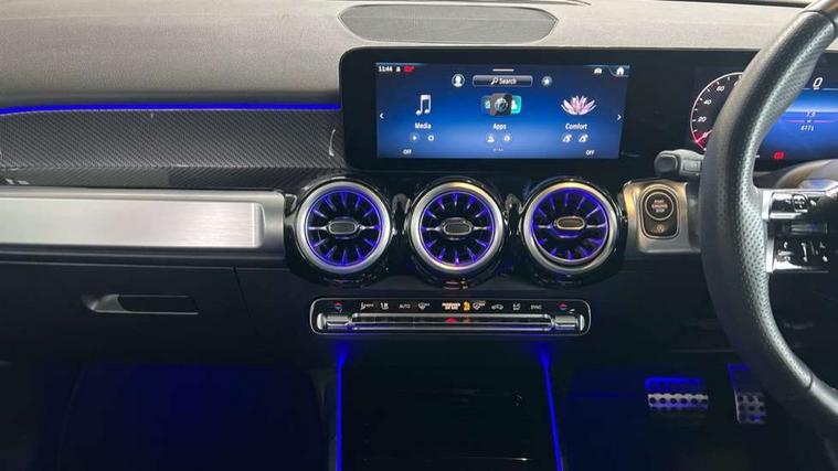 10.25 inch touchscreen central media display, 10.25" Digital instrument cluster display screen, 12 ultrasonic sensors in front and rear bumpers, 180 degree reversing camera with parking guidelines, Additional drive program "OFF-ROAD", Assisted parking: reversing backwards into perpendicular and parallel parking spaces, Attention assist - Monitors steering behaviour and long journey fatigue, Blind spot assist, Bluetooth connection, Brake pad wear indicator warning light, Car wash mode, Convenience opening and closing, Direct steering, DYNAMIC SELECT with a choice of driving modes (ECO, Comfort, Sport and Individual), ECO start/stop function, Engine start/stop button, Exit warning function, Fluid level warning indicator for fuel, oil, coolant and washer fluid, Hard disk navigation, Hey Mercedes Voice activation, Lamp failure indicator, Lane keep assist, MBUX augmented reality for navigation, MBUX navigation premium, Mercedes me connect including emergency call system, accident recovery, breakdown and maintenance management, Mercedes me remote services, Outside temperature gauge, Owners manual and service booklet in English, Pre-installation of private car share, Preinstallation for parking damage notification, Radio aerial integrated into front and rear windshields, Remote boot closing, Service indicator (ASSYST), Smartphone integration with Apple CarPlay and Android auto, Speed limit assist, Tailgate, Trip computer in multifunction display with current consumption indicator, Ultrasound sensors - positioned in the handle of the tailgate, Wireless charging, Comfort suspension with ride height lowering, Rear axle multi-link, 1 USB-C port in the oddments compartment (Charge + Data transfer), 2 USB-C ports for the rear on the centre armrest (Charge only), 2 USB-C ports under the front centre armrest (Charge + Data transfer), DAB digital radio tuner, MBUX multimedia system, Mercedes Benz sound system (225 W) with 10 speakers, 1 central speaker, speakers on doors, a tweeter on door, one sub woofer + boost amplifier, Pre installation for Mercedes Benz Link, Adaptive brake lights, Adaptive high beam assist, AMG front apron with front splitter in the colour of the vehicle with chrome trim element, AMG rear apron with visible tailpipe trim and chrome trim element, AMG specific/dual flow exhaust pipes in chrome (non-functional), Auto dimming rear view mirror, Beltline trim and window line trim strip in high gloss aluminium, Black grained side sill trim with chrome inlay, Body coloured door handles, Electric adjustable and heated door mirrors with integrated LED side indicators, Electric folding door mirrors, Front and rear electric windows, Headlamp assist automatic headlamp activation, Heat insulating dark-tinted glass starting from B-pillar, Heated glass rear windscreen + timer control, High level LED third brake light, Illuminated door sill panels with Mercedes-Benz lettering, Interior mirror with black reading lamps and frameless, LED high performance headlamps with integrated LED daytime running lights, LED tail lamp, Polished aluminium roof rails, Radiator grille as a diamond grille with chrome pins and central Mercedes star, Rain sensor windscreen wipers, Rear fog lamp, Rear side wing doors, Rear wiper, Single louvre in matt grey with chrome inserts and black highlights, Two visible tailpipe trim elements exhaust, Ultrasonic sensors - positioned in the front and rear bumpers, Wheel arch liners in the colour of the vehicle, 12V socket in the oddments compartment, 3 seat bench in 2nd row, 3 twin spoke flattened multifunction steering wheel in nappa leather - horizontal twin spoke in high gloss black, vertical twin spoke in silver chrome, 4 way adjustable lumbar support, 40:20:40 split folding rear seats, Air conditioning - Two zone thermotronic luxury automatic climate control with display, Air vents with silver chrome surrounds, AMG floor mats, AMG sports pedals with brushed stainless steel surfaces and black rubber studs, Automatic child seat recognition sensor, Black roof lining, Door handles with chrome inserts, Fluorescent jacket, Front and rear headrests, Front centre armrest with stowage, Galvanised steering wheel gearshift paddles in silver chrome, Handle recess lighting, Heated front seats, Height adjustable head restraints, Height/reach adjustable steering column, Interior lighting - 64 colour Ambient lighting, Luggage net on driver/front passenger seat backrest, Single front passenger seat, Sports seats, Stowage compartment with retractable cover, Sun visors with illuminated vanity mirrors, Third row of seats for two people on rear seat, Twin front cup holders, Two outer rear seat isofix and top tether child seat fixing points, Easy pack tailgate, Interior lighting with light and sight pack - GLB, Seat comfort package - GLB, 3 rear 3 point seatbelts, Active bonnet pedestrain safety measure which detects an impact and raises bonnet by 65mm, Active brake assist includes forward collision warning system with autonomous braking, Adaptive brake assist with hold function and hill start assist, Airbags - kneebag for driver, Anti-lock braking system (ABS) with brake assist, Black seatbelts, Bonnet with power domes, Childproof locks manually operated for rear doors and electrically operated for rear power windows, Crash responsive emergency lighting, Curve dynamic assist, Downhill speed regulation (DSR), Driver and front passenger head and sidebags, Driver and front passenger windowbags, Dual stage driver and front passenger airbags, Electric parking brake, Electronic stability programme with acceleration skid control, Front and rear seatbelt reminder, Front brake callipers with Mercedes Benz lettering, Front passenger seat occupancy sensor, Perforated front brake discs, Tyre pressure monitoring system, Warning triangle and first aid kit, Guard 360 degree vehicle protection - Anti theft alarm system, tow away protection with visual, acoustic warning and alarm, Interior monitoring system, Keyle