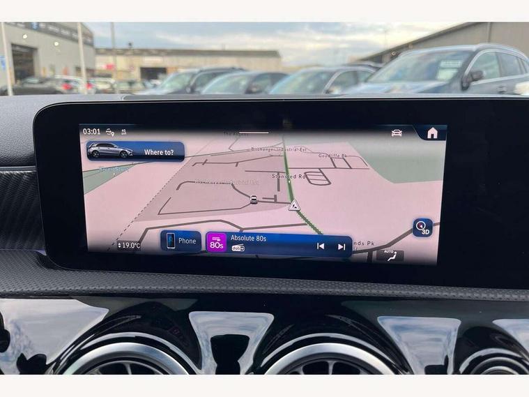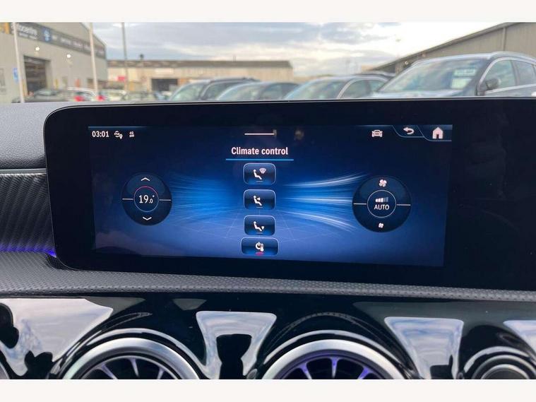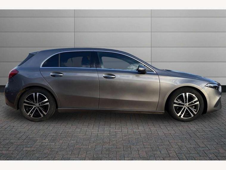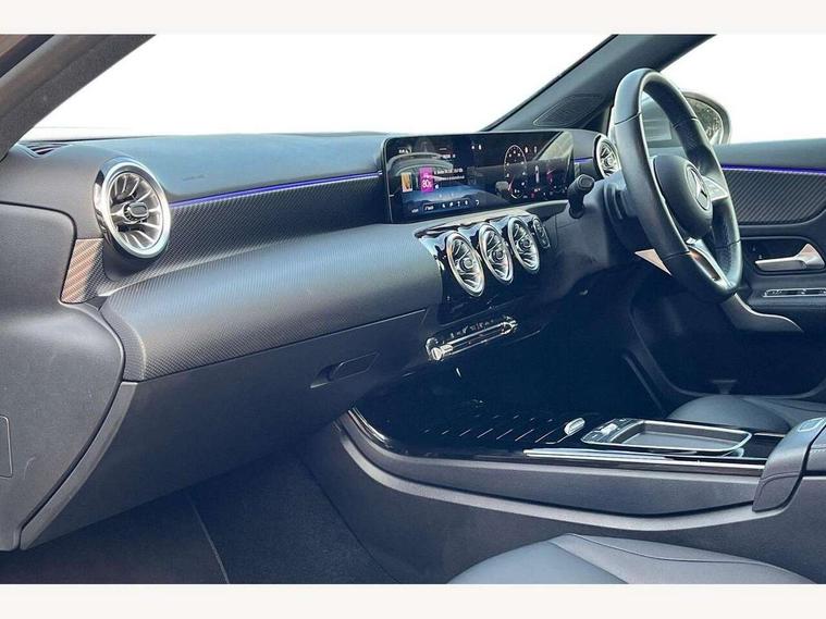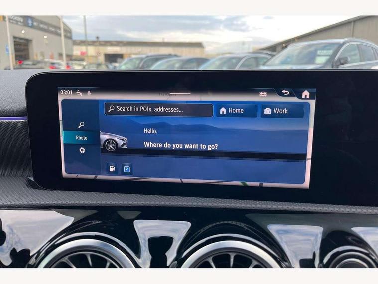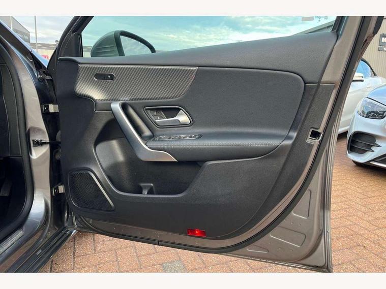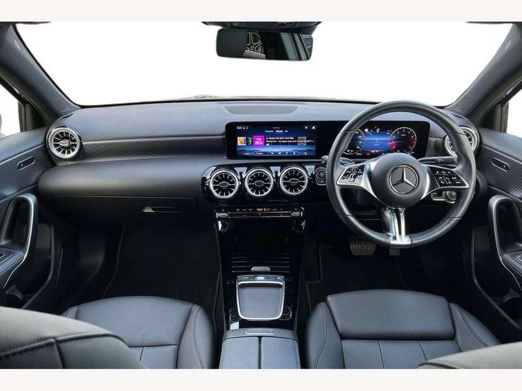 10.25 inch touchscreen central media display, 10.25" Digital instrument cluster display screen, Attention assist, Brake pad wear indicator warning light, Car wash mode, Cruise control + speed limiter, Direct steering, Direction indicators with lane change function, Dual bluetooth interfaces, DYNAMIC SELECT with a choice of driving modes (ECO, Comfort, Sport and Individual), Easy pack tailgate hands-free access, ECO start/stop function, Engine start/stop button, Fluid level warning indicator for fuel, oil, coolant and washer fluid, Hard-disk navigation, Hey Mercedes Voice activation, Lamp failure indicator, Lane keeping system, Mercedes me connect including emergency call system, accident recovery, breakdown and maintenance management, Mercedes me remote services, Outside temperature gauge, Owners manual in English, Pre-installation of private car share, Preinstallation for Mercedes Benz link, Remote boot closing, Service indicator (ASSYST), Smartphone integration with Apple CarPlay and Android auto, Speed limit assist, Speed sensitive power steering, Tailgate, Trip computer in multifunction display with current consumption indicator, Wireless charging, Lowered comfort suspension, DAB Digital radio, MBUX multimedia system, Mercedes Benz sound system (100 W) with 6 speakers, 4 Electric Front and Rear windows, Adaptive brake lights, Body colour bumpers, Body colour door handles with chrome inserts, Body colour side skirt, Body coloured door mirrors, Chrome beltline strips, Diamond radiator grille with pins in fine star pattern, Electric adjustable and heated door mirrors with integrated LED side indicators, Exhaust system with 2 visible tailpipe trim elements and rear apron, Headlamp assist automatic headlamp activation, Heat insulating dark tinted rear and rear side windows, Heated glass rear windscreen + timer control, LED High level third brake light, LED High Performance headlamps including integral LED daytime running lamps and adaptive highbeam assist, LED tail lamp, Privacy glass, Radio aerial, Rain sensing windscreen wipers with two sensitivity settings, Rear fog lights, Rear side wing doors, Rear windscreen wiper, Window line trim strip in chrome, 3 seat bench in 2nd row, 3 spoke ARTICO man-made leather multifunction sports steering wheel, 4 way lumbar support, 40:20:40 split folding rear seats, Air conditioning - One zone THERMATIC automatic climate control with automatically controlled air distribution, Artico man-made leather upholstery, Automatic child seat recognition sensor, Black air vents with surround in silver chrome, Black roof lining, Front centre armrest with stowage, Front comfort seats with adjustable head restraints, Front door sills with Mercedes Benz lettering, Front seat backs luggage nets, Gearshift paddles on steering wheel, Heated front seats, Height/reach adjustable steering column, Interior lighting - 64 colour Ambient lighting, Interior mirror with reading lamps in black and frameless, Rear armrest with 2 cupholders, Rear head restraints, Seat occupancy sensor for front passenger seat, Single front passenger seat, Stowage compartment in centre console with retractable cover, Sunvisors with illuminated vanity mirrors, Twin front cupholders, Velour floor mats, Light and sight pack - A Class, Mirror package - A Class, Parking pack - A Class, Seat comfort pack - A Class, USB pack plus - A Class, 3 rear 3 point seatbelts, ABS with Brake Assist, Active bonnet, Active brake assist includes forward collision warning system with autonomous braking, Adaptive brake assist with hold function and hill start assist, Black seatbelts, Bonnet with power domes, Childproof locks manually operated for rear doors and electrically operated for rear power windows, Crash responsive emergency lighting, Driver and passenger head and side airbags, Drivers knee airbag, Dual stage driver/passenger airbags, Electronic parking brake, ESP curve dynamic assist, ESP with ASR, Front and rear seatbelt reminder, ISOFIX and top tether child seat fixing points in two outer rear seats, Tyre pressure monitoring system, Warning triangle and first aid kit, Window airbags, Alarm system/interior protection/immobiliser, Guard 360 degree vehicle protection, Keyless entry lock/unlock, Keyless Go, Remote central locking and crash sensor with emergency opening function, Dark carbon fibre interior trim, 17" 5 spoke light alloy wheels, aerodynamically optimised, painted in black with high sheen finish, Summer tyres, Tirefit sealant kit,