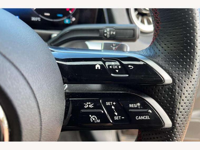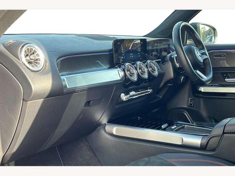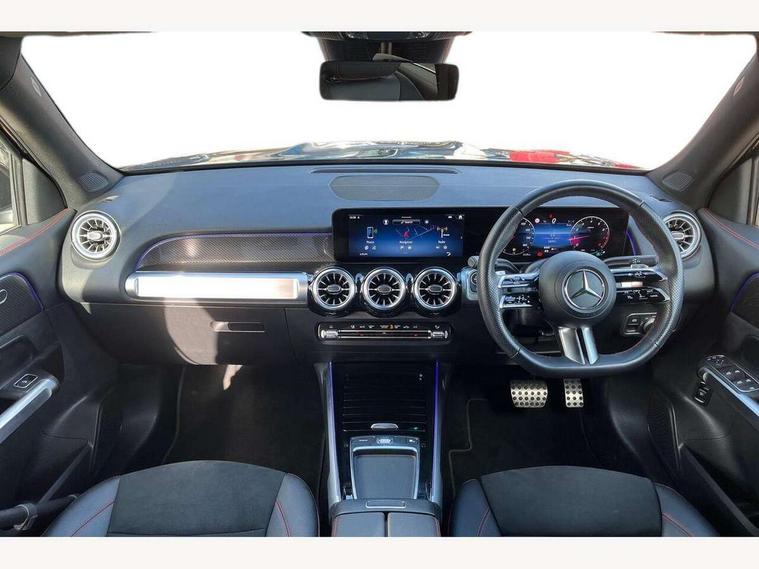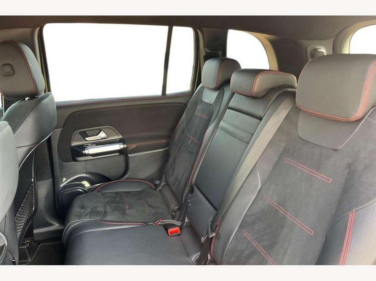 10.25 inch touchscreen central media display, 10.25" Digital instrument cluster display screen, 12 ultrasonic sensors in front and rear bumpers, 180 degree reversing camera with parking guidelines, Assisted parking: reversing backwards into perpendicular and parallel parking spaces, Attention assist - Monitors steering behaviour and long journey fatigue, Bluetooth connection, Brake pad wear indicator warning light, Car wash mode, Convenience opening and closing, Direct steering, DYNAMIC SELECT with a choice of driving modes (ECO, Comfort, Sport and Individual), ECO start/stop function, Engine start/stop button, Fluid level warning indicator for fuel, oil, coolant and washer fluid, Hard disk navigation, Hey Mercedes Voice activation, Lamp failure indicator, Lane keep assist, MBUX navigation premium, Mercedes me connect including emergency call system, accident recovery, breakdown and maintenance management, Mercedes me remote services, Outside temperature gauge, Owners manual and service booklet in English, Pre-installation of private car share, Preinstallation for parking damage notification, Radio aerial integrated into front and rear windshields, Remote boot closing, Service indicator (ASSYST), Smartphone integration with Apple CarPlay and Android auto, Speed limit assist, Tailgate, Trip computer in multifunction display with current consumption indicator, Ultrasound sensors - positioned in the handle of the tailgate, Wireless charging, Comfort suspension with ride height lowering, Rear axle multi-link, 1 USB-C port in the oddments compartment (Charge + Data transfer), 2 USB-C ports for the rear on the centre armrest (Charge only), 2 USB-C ports under the front centre armrest (Charge + Data transfer), DAB digital radio tuner, MBUX multimedia system, Mercedes Benz sound system (100 W) with 6 speakers, Pre installation for Mercedes Benz Link, Adaptive brake lights, Adaptive high beam assist, AMG front apron with front splitter in the colour of the vehicle with chrome trim element, AMG rear apron with visible tailpipe trim and chrome trim element, AMG specific/dual flow exhaust pipes in chrome (non-functional), Auto dimming rear view mirror, Beltline trim and window line trim strip in high gloss aluminium, Black grained side sill trim with chrome inlay, Body coloured door handles, Electric adjustable and heated door mirrors with integrated LED side indicators, Electric folding door mirrors, Front and rear electric windows, Headlamp assist automatic headlamp activation, Heat insulating dark-tinted glass starting from B-pillar, Heated glass rear windscreen + timer control, High level LED third brake light, Interior mirror with black reading lamps and frameless, LED high performance headlamps with integrated LED daytime running lights, LED tail lamp, Polished aluminium roof rails, Radiator grille as a diamond grille with chrome pins and central Mercedes star, Rain sensor windscreen wipers, Rear fog lamp, Rear side wing doors, Rear wiper, Single louvre in matt grey with chrome inserts and black highlights, Two visible tailpipe trim elements exhaust, Ultrasonic sensors - positioned in the front and rear bumpers, Wheel arch liners in the colour of the vehicle, 12V socket in the oddments compartment, 3 seat bench in 2nd row, 3 twin spoke flattened multifunction steering wheel in nappa leather - horizontal twin spoke in high gloss black, vertical twin spoke in silver chrome, 4 way adjustable lumbar support, 40:20:40 split folding rear seats, Air vents with silver chrome surrounds, AMG floor mats, AMG sports pedals with brushed stainless steel surfaces and black rubber studs, Automatic child seat recognition sensor, Black roof lining, Door handles with chrome inserts, Fluorescent jacket, Front and rear headrests, Front centre armrest with stowage, Galvanised steering wheel gearshift paddles in silver chrome, Handle recess lighting, Heated front seats, Height adjustable head restraints, Height/reach adjustable steering column, Interior lighting - 64 colour Ambient lighting, Luggage net on driver/front passenger seat backrest, Single front passenger seat, Sports seats, Stowage compartment with retractable cover, Sun visors with illuminated vanity mirrors, THERMATIC automatic climate control, Third row of seats for two people on rear seat, Twin front cup holders, Two outer rear seat isofix and top tether child seat fixing points, Easy pack tailgate, Interior lighting with light and sight pack - GLB, Seat comfort package - GLB, 3 rear 3 point seatbelts, Active bonnet pedestrain safety measure which detects an impact and raises bonnet by 65mm, Active brake assist includes forward collision warning system with autonomous braking, Adaptive brake assist with hold function and hill start assist, Airbags - kneebag for driver, Anti-lock braking system (ABS) with brake assist, Black seatbelts, Bonnet with power domes, Childproof locks manually operated for rear doors and electrically operated for rear power windows, Crash responsive emergency lighting, Curve dynamic assist, Driver and front passenger head and sidebags, Driver and front passenger windowbags, Dual stage driver and front passenger airbags, Electric parking brake, Electronic stability programme with acceleration skid control, Front and rear seatbelt reminder, Front brake callipers with Mercedes Benz lettering, Front passenger seat occupancy sensor, Perforated front brake discs, Tyre pressure monitoring system, Warning triangle and first aid kit, Guard 360 degree vehicle protection - Anti theft alarm system, tow away protection with visual, acoustic warning and alarm, Interior monitoring system, Keyless Go Access and drive authorisation system, KEYLESS-GO starting function, Remote central locking and crash sensor with emergency opening function, Thatcham category 1 alarm system with immobiliser and interior protection, Vehicle key with KEYLESS GO functionality, Carbon structure trim, 19" AMG 5 twin spoke light alloy wheels aerodynamically optimise