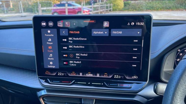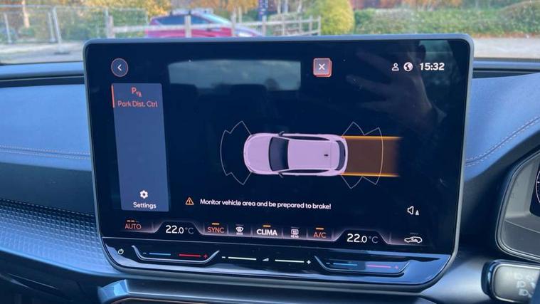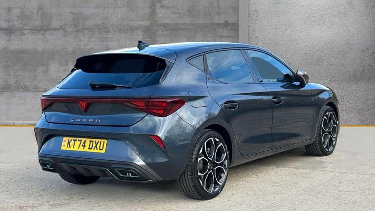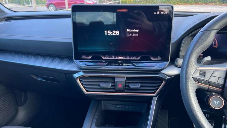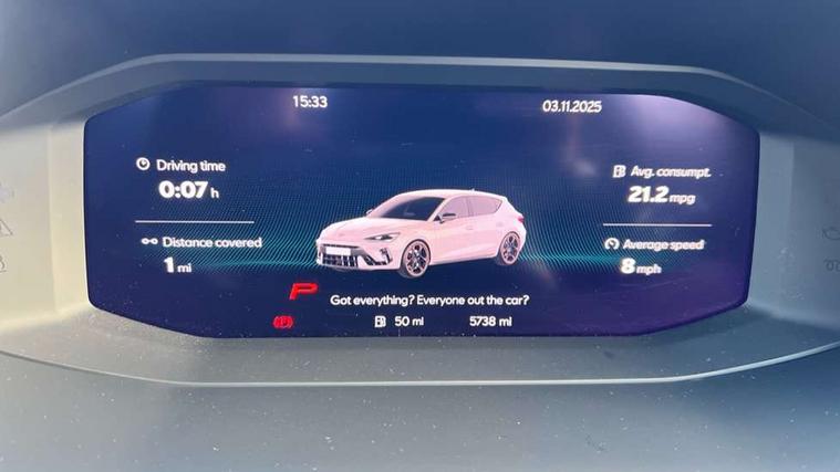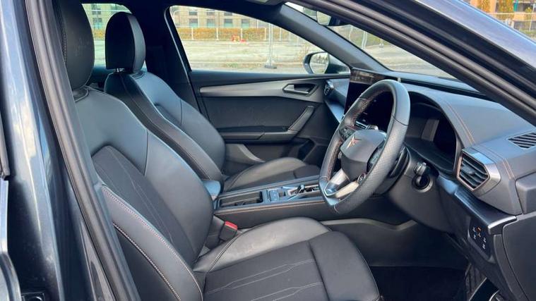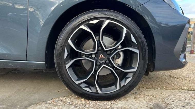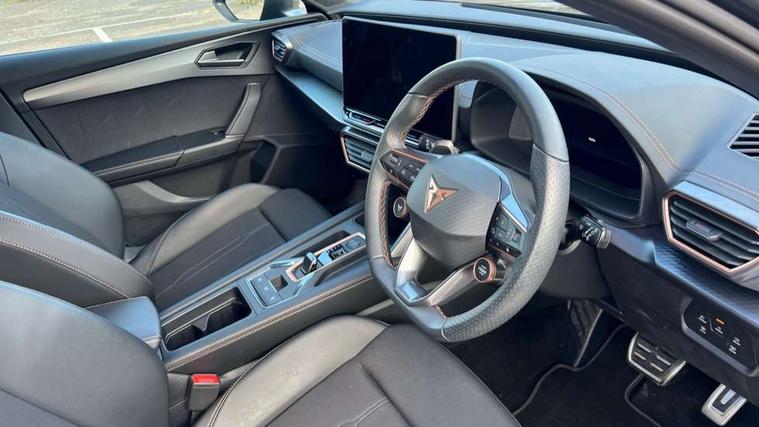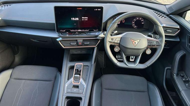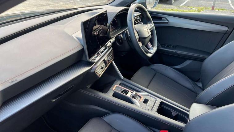 Adaptive cruise control with follow-to-stop and speed limiter, CUPRA drive profile selection with (Comfort/Sport/Individual), throttle response and gearshift mode, Digital cockpit, Dynamic road sign display, E-call, Four x USB Type C ports (2 in front and 2 in rear), Front and rear parking sensors, Front assist with forward collision warning braking reaction to vehicles, pedestrians and cyclists, Full link smartphone integration with Mirror Link, wireless Apple CarPlay and wired Google Android Auto, Lane assist, Lockable tailgate, PAS, RPM, trip computer, outside temp gauge, instrument light brightness, low fuel warning light, lights on reminder, gearshift indicator, Service interval indicator, Start/stop system with regenerative braking, Wireless phone charger, 7 speakers, Auxiliary input socket, Auto dimming rear view mirror, Body colour door handles, Body coloured bumpers, Cupra sports bumpers, Dark tinted rear windows, Electric front/rear windows, Electrically adjustable, heated and folding door mirrors, High beam assist, LED front fog lamps with cornering function, LED headlights with dynamic turn signals, tail lights, rear fog lights with rear coast to coast lighting, LED rear fog lamp, Rain sensing wipers, Rear side wing doors, Rear wash/wipe, Separate daytime running light with automatic headlight control and coming home feature, Third brake light, Welcome light with logo projector in door mirrors, 12v power supply in centre console, 3 seat bench in 2nd row, 5 headrests, 60/40 split rear bench seat with armrest, Ambient lighting with glovebox, footwell and single monocolour, Black headlining, Cloth/PVC upholstery, Cupra sports pedals, CUPRA Supersports, heated steering wheel with satellite buttons, Driver and passenger seat with manual height and lumbar adjustment, Folding boot cover, Front and rear reading lights X 4, Front centre armrest, Height/reach adjust steering wheel, Illuminated interior front door sills, ISOFIX points in outer rear seats with top tether anchorage points, Single front passenger seat, Storage pockets on rear of front seats, Sunvisors with illuminated mirror, Three zone climate control, Media system plus with 12.9" display + navigation pack - Leon Cupra, 3 point seatbelts on all rear seats, ABS, Brake control system - ESC and brake booster, Child proof door locks, Cupra black brake calipers, Driver and front passenger airbags with front passenger airbag de-activation, front side and curtain airbags, Electronic parking brake, Hill hold control, Rear disc brakes, Seat belt reminder for front and rear seats, Tiredness recognition system, Tyre pressure monitoring system, Anti theft alarm system with interior monitoring in cab, backup horn and towing protection, Central locking system Keyless Go, Locking wheel bolts, Chrome and copper interior detailing, 18" Windstorm machined sport black matt and silver alloy wheel with 92Y XL tyres, Tool kit,