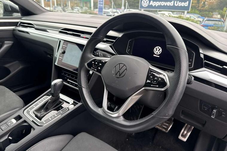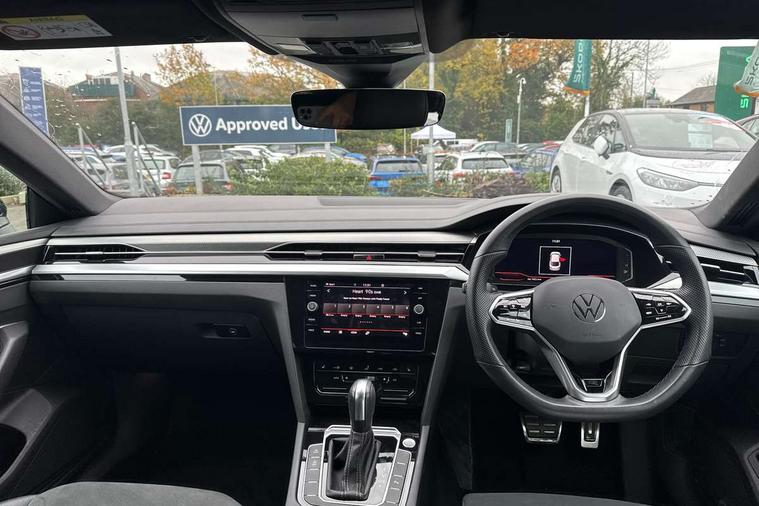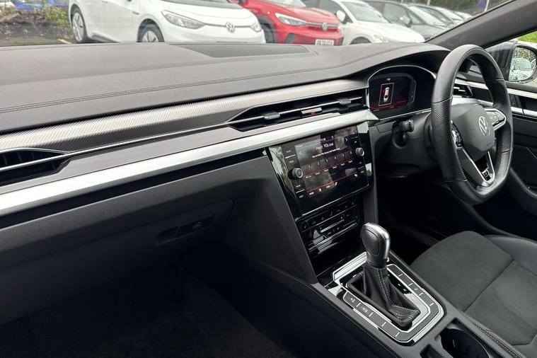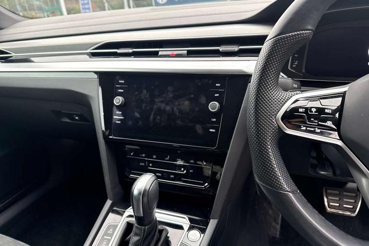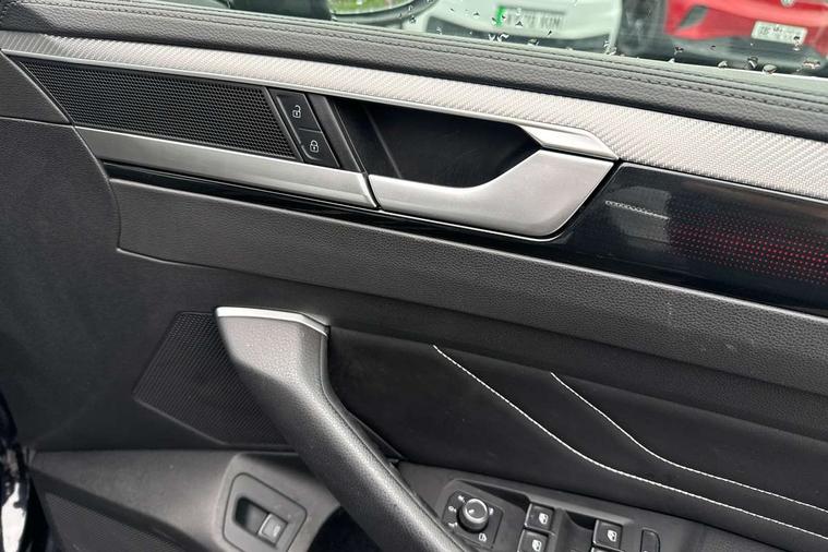 Adaptive cruise control (ACC) with speed limiter, front assist (reacting vehicles pedestrian and cyclists) and follow to stop, App connect including wireless Apple CarPlay, Camera for warning system, Digital cockpit with 10.25" high resolution TFT display screen with customisable menus and information, Driver alert system with fatigue detection, Driver profile selection including ECO function, Dynamic road sign display, eCall - Emergency call service for SOS calls to emergency response, Emergency assist, Hands free boot opening, Press and drive key, Progressive steering, Speedo and rev counter, electronic odometer, trip, service interval display and exterior temperature gauge, Travel assist - Lane keeping assist and traffic jam assist, Voice activation for telephone and navigation, Start/stop function with battery regeneration, Premium USB cable in choice of either Apple or Android smartphone compatibility, Auto dimming interior rear view mirror, Automatic headlights, Body colour door handles, Body colour side skirt, Body coloured top and matt black lower door mirrors with integrated indicators, Chrome plated radiator grille inserts and light switch surrounds, Chrome side window surrounds, Dynamic headlight range control, Electric folding door mirror, adjustable, heated with front passenger exterior mirror lowering function, Front and rear electric windows, Front and rear stainless steel door sill protection, Front windscreen washers and wipers with 4x interval delay, Heat insulating side and rear windows, Heated rear windscreen, Heated windscreen washer jets, High level 3rd brake light, LED rear combination lamp with dynamic indicators, LED rear number plate lights, Panoramic sunroof with tilting and sliding including integrated roller blind, R Line design body coloured bumpers, Rain sensor, Rear fog lamp on one side and reversing lamp on both sides, Rear side wing doors, Rear tinted glass from B pillar backwards, approx 65% tinted, Rear wash/wipe, Tailpipes behind rear bumper, 12V socket in front centre console, 12V socket on rear of front centre armrest, 3 rear head restraints, 3 seat bench in 2nd row, 30 colours options interior ambient lighting, 60:40 split folding rear seat backrests with centre armrest, Air care climatronic 3 Zone electronic air conditioning with automatic air recirculation, Black roof lining, Chrome trim on upper and lower air vents extending across cockpit, Driver and front passenger sunvisor with vanity mirror, Front + rear carpet mats, Front cupholders x 2, Front footwell illumination, Front sports comfort seats, Glovebox, Heated front seats, Height/reach adjust steering wheel, Isofix child seat preparation easy fit for two outer rear seats, Luggage compartment lighting, Removable luggage compartment cover, Single front passenger seat, Split folding front seat backrest with front centre armrest, Stainless steel pedals, Two LED front reading light, 3 rear three point seatbelts, ABS+EBD+Brake assist, Child locks on rear doors, Driver airbag and front passenger airbags with deactivation switch including driver knee airbags, Electronic parking brake, Electronic stability control (ESC) and Electromechanical brake booster, Front disc brakes, Front side airbags with curtain airbags, Hill start assist, Pro active occupant protection to detect critical situations with elevated accident potential from the front, Rear disc brakes, Three point height adjust front seatbelts + pretensioners, Two tone horn, Tyre pressure loss indicator, Warning buzzer for seatbelts if unfastened, Warning triangle, Alarm with interior protection with deactivation via infotainment system, Electronic engine immobiliser, Keyless entry system including start/stop button on centre console, Aluminium decorative inserts, Chrome trim on lower doors in front and rear, Leatherette insert on door and side trim panel in foam film, Piano black decorative inserts in centre console,