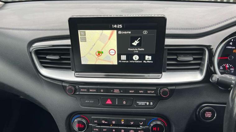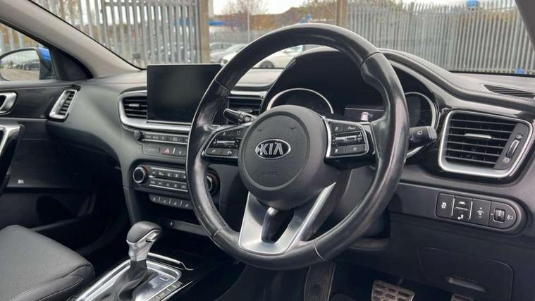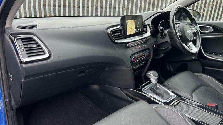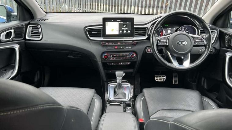 4.2" supervision colour cluster display, 8" touchscreen satellite navigation with European mapping and traffic messaging channel, Apple car play/Android Auto, Blind spot collision warning, Bluetooth with Voice Recognition & Music Streaming, Drive mode selector, Driver attention warning, Emergency stop signalling system, Kia connected services featuring TomTom live, Lane Following Assist (LFA), Lane keep assist, Motor driven power steering, Outside temperature gauge, Reversing camera with dynamic guide lines, Service interval indicator, Smart cruise control with stop and go functionality, Smart park assist system (SPAS) with parallel/perpendicular/reverse with front/rear parking sensors, Speed limit information function (SLIF), Trip computer, Wireless Mobile Phone Charger, Intelligent Stop and Go, DAB Radio with MP3, Illuminated USB & aux ports, JBL Premium sound system with 8 speakers, Steering wheel mounted controls, USB & AUX Ports for Connection of a Media Device, USB Fast Charger in Front Centre Console, All-round Electric Windows with Auto Up & Down Function, Auto dimming rear view mirror, Automatic defog system, Automatic headlights, Body colour bumpers, Body colour door mirrors, Body colour exterior door handles, Chrome window surround, Electric adjustable/heated/folding door mirrors with LED Indicators and Kerbside Lights, Front fog lights, Front wiper de-icer, Heated rear window with timer, High beam assist, High gloss black radiator grille, Illuminated front door handles, LED Bi-Function Headlights with Cornering Lights, LED daytime running lights, LED High-mounted Brake Light, LED rear lights, Metallic paint, Privacy glass (rear side windows and rear screen), Rain sensing front wipers, Rear spoiler, Rear wash/wipe, Tinted glass, Wide panoramic sunroof with tilt/slide function and automatic electric roll blinds, Wide view drivers door mirror, Windscreen Washer Level Warning, 10 way power adjustable drivers seat with memory function, 12V socket in luggage compartment, 3 x passenger assist grips, 60/40 split folding rear seat, All-round height adjustable headrests, Centre Console with Storage Box and Sliding Armrest, Cupholders in rear armrest, Dash illumination dimmer switch, Driver & Front Passenger Sunvisors with Vanity Mirror Illumination & Ticket Holder, Driver + front passenger electric lumbar support, Driver's seat height adjuster, Dual Height Luggage Area Floor, Dual zone automatic air conditioning, Faux leather door trim, Footwell ambient lighting, Front and rear door storage, Front cabin LED map light with sunglasses case, Front Passenger Seat Height Adjuster, Front seat and rear pockets, Headlining in Light grey, Heated front seats, Heated outer rear seats, Heated steering wheel, Interior door lock/unlock function, ISOFIX Child seat top tethers and anchor fixings, Leather handbrake, Leather steering wheel and gearshift, Leather upholstery, Luggage area light, Luggage area parcel shelf, Luggage hooks, Premium centre console with sliding cupholder cover, Rear Air Ventilation, Rear centre armrest, Rear coat hooks, Satin chrome interior door handles, Stainless steel pedals, Tilt/telescopic adjustable steering wheel, Ventilated front seats, Advanced Driver Assistance Pack - Ceed DCT, ABS with Electronic Brakeforce Distribution (EBD) and Brake Assist System (BAS), All round 3-point seatbelts, Dual front side airbags, Dual horn, Electronic stability control (ESC) and vehicle stability management (VSM), Front passenger airbag deactivation, Height adjustable front seatbelts, Hill start assist control (HAC), Impact sensing auto door unlocking, Rear door child safety locks, Seatbelt reminder warning, Traction control, Twin curtain airbags, Twin front airbags, Tyre pressure monitoring system, Alarm system, Engine Immobiliser & Deadlocks, Engine Start/Stop Button with Smart Entry System, Locking wheel nuts, Speed sensitive auto door locking, Black high gloss front console tray garnish & door trim, Satin Chrome Fascia Trim, 17" Alloy wheels, Temporary spare wheel,